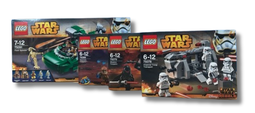 Another lot from Best Model Toys, these four LEGO Star Wars sets are expected to fetch £80 – £120. The lot includes 75078 Imperial Troop Transport, 75079 Shadow Troopers, 75089 Geonosis Troopers and 75091 Flash Speeder.