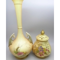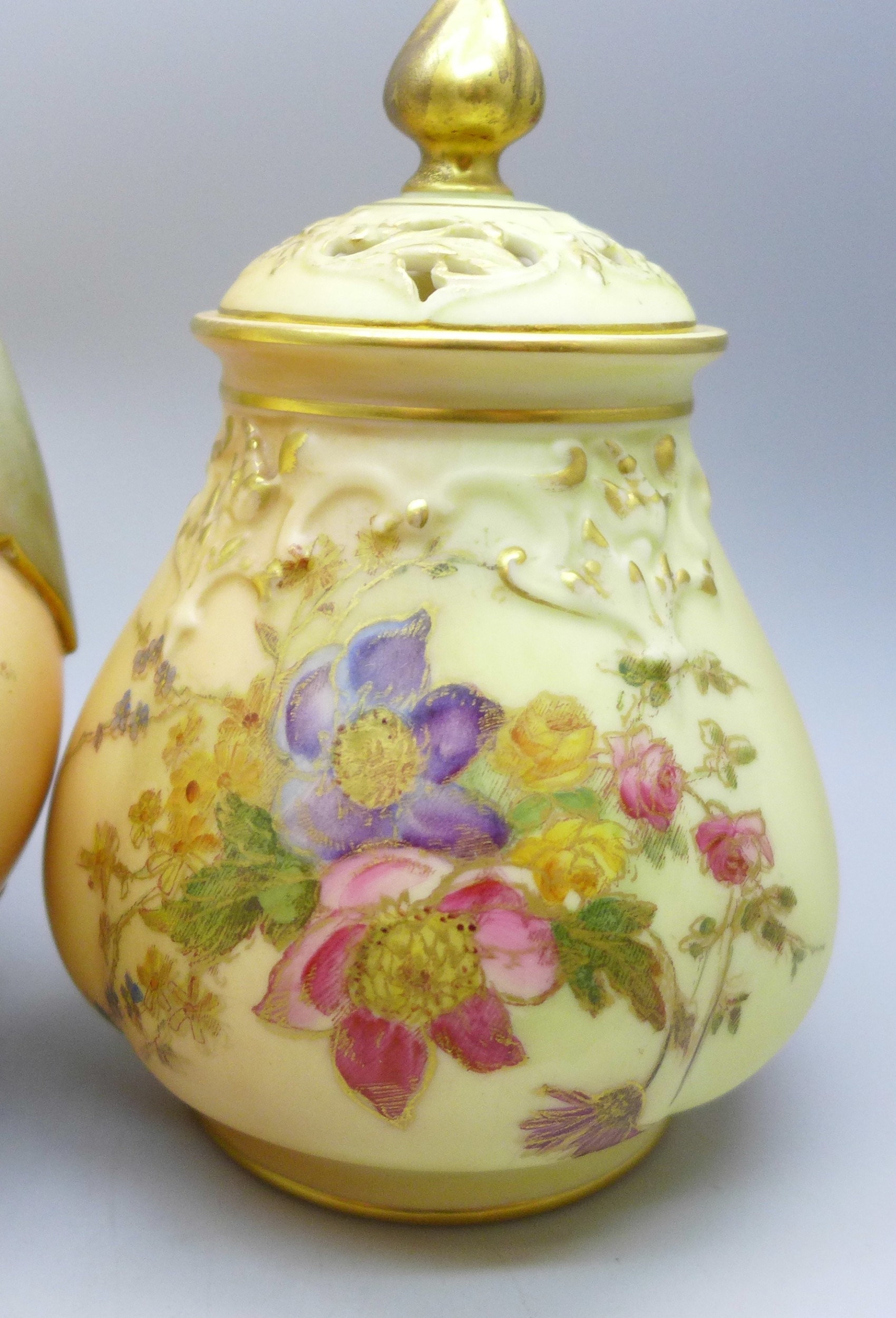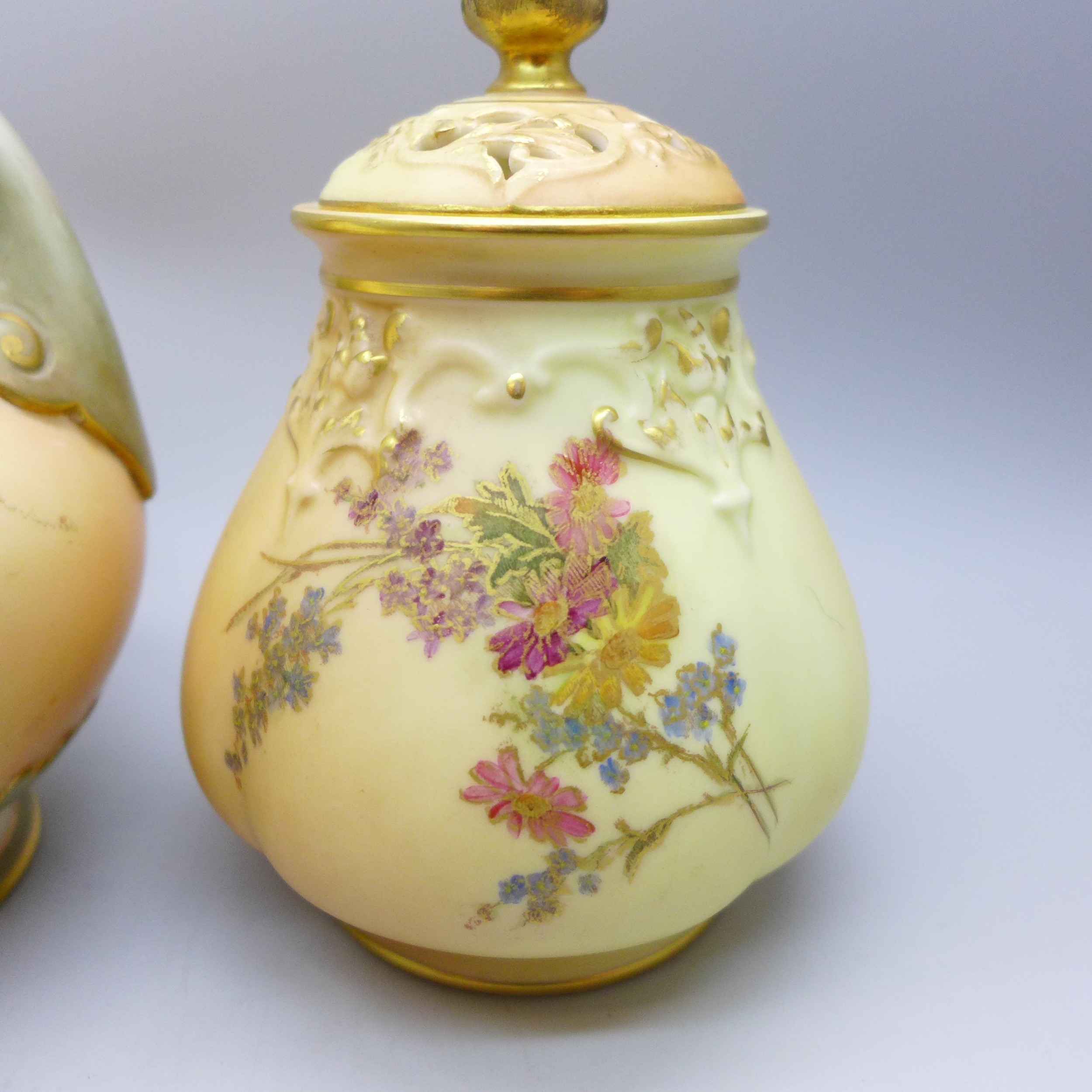 A Royal Worcester blush ivory vase dated 1900, 25cm together with a Royal Worcester pot pourri with lid, dated 1913