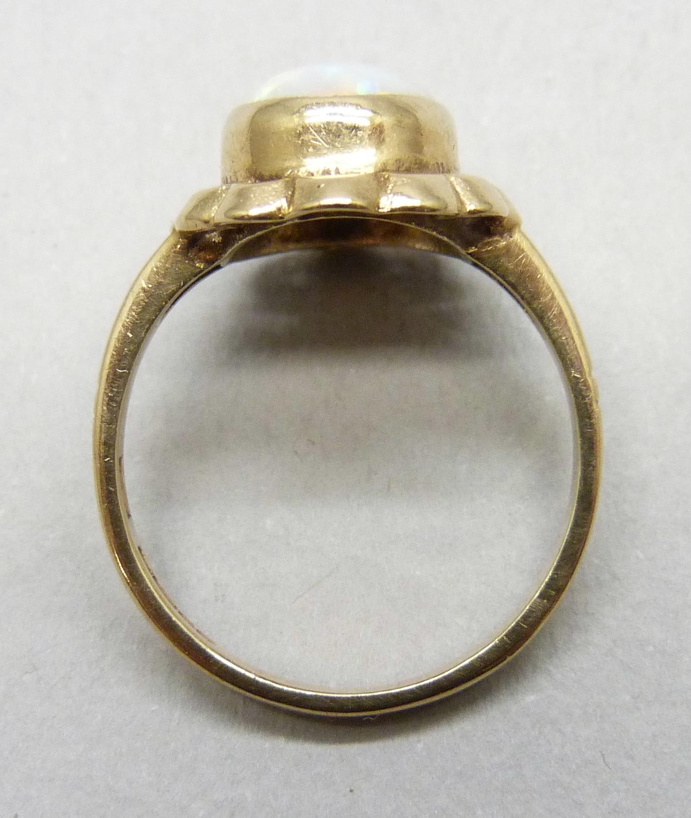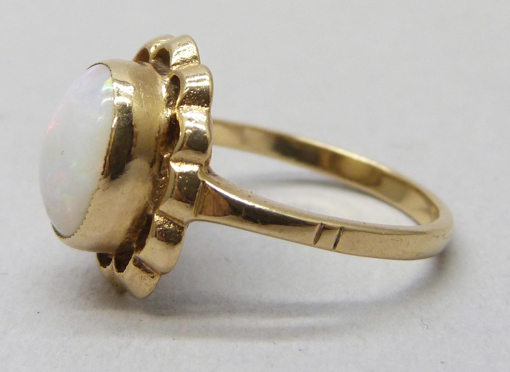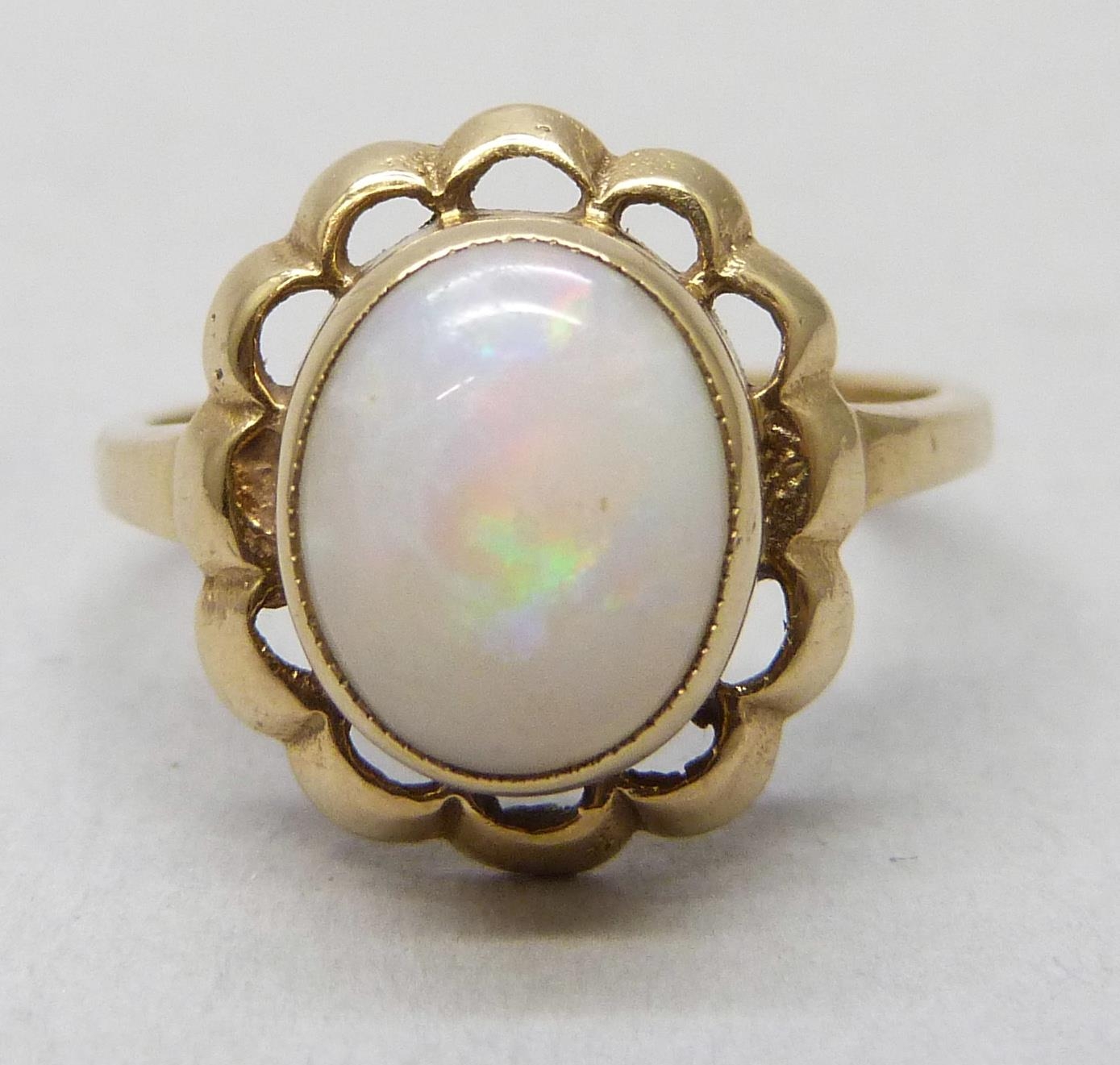 A 9ct gold and opal ring, 3.2g, O