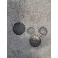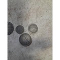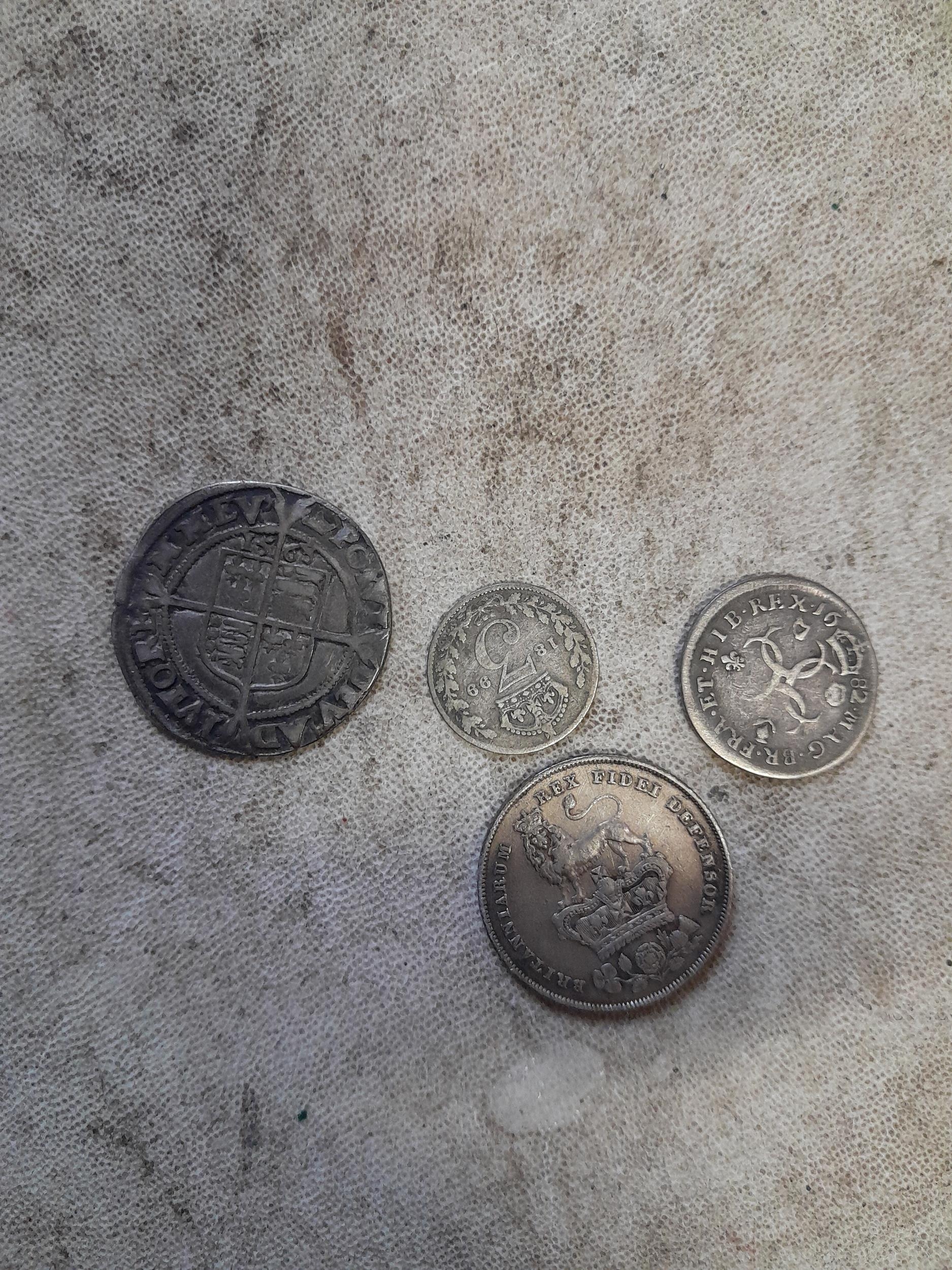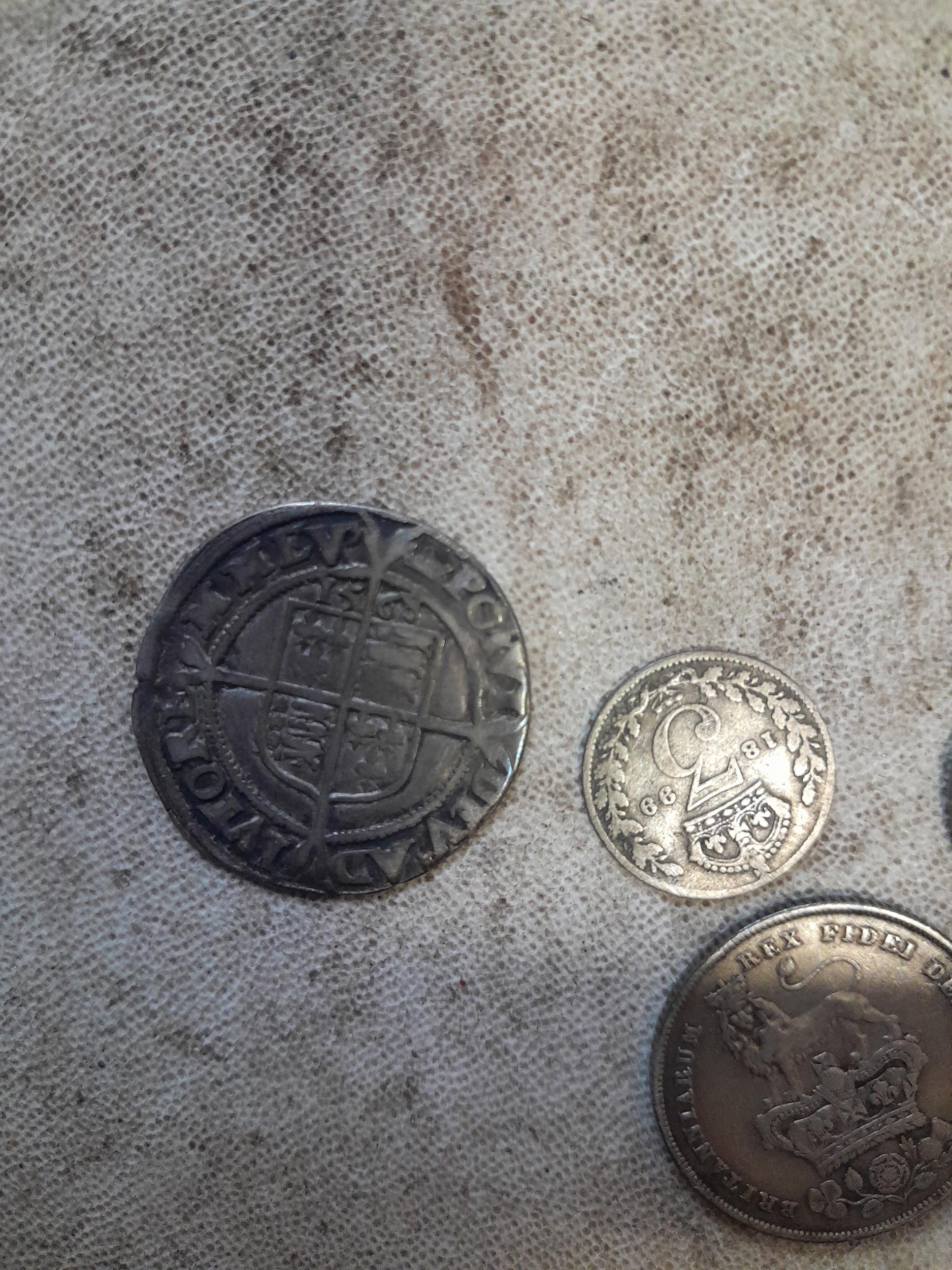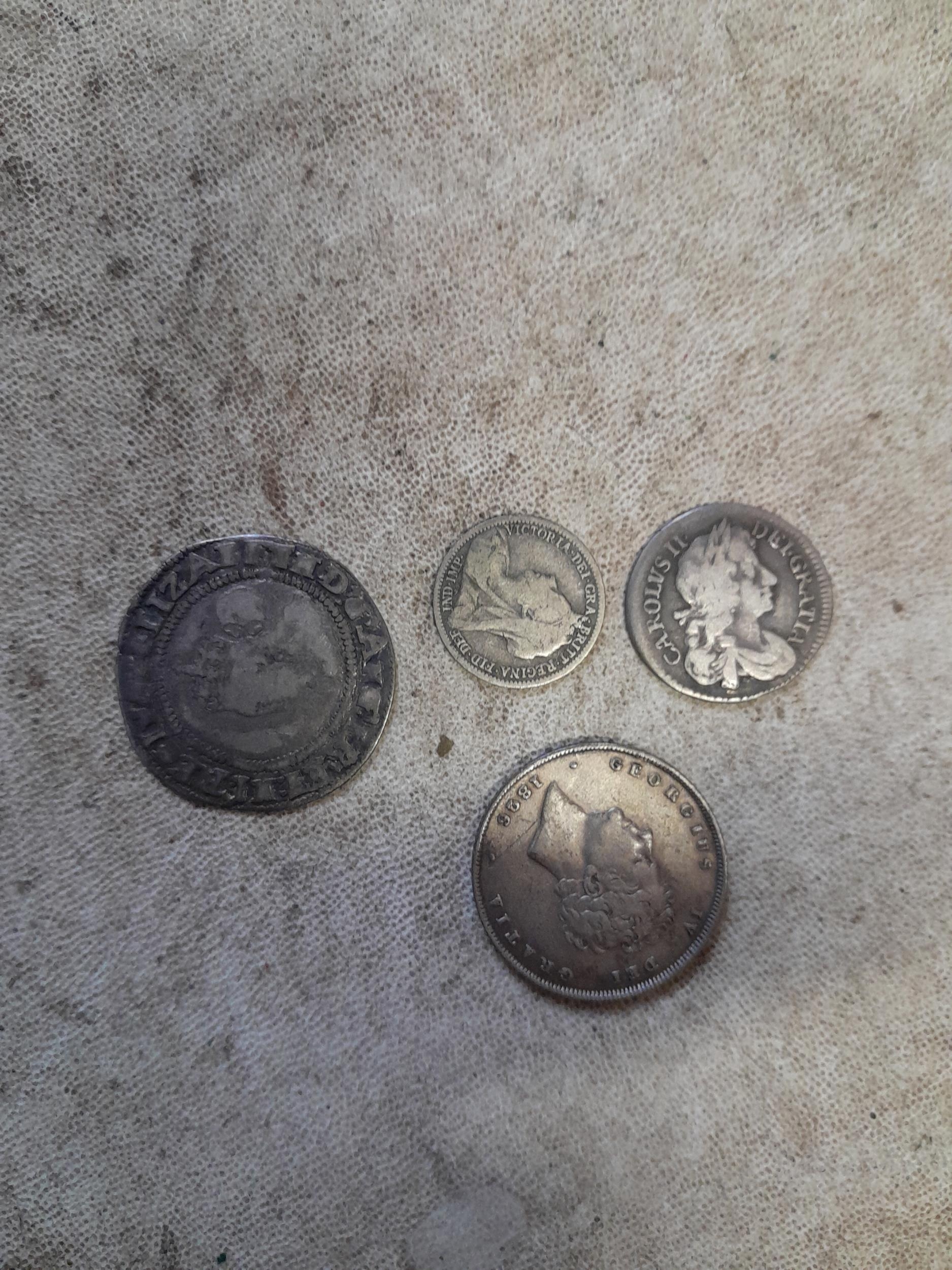 Mixed era silver coins : 1899 Three Pence, 1826 1568, hammered 1568 Elizabeth I Six pence, George IV Shilling 1826, Charles II Maundy Four Pence