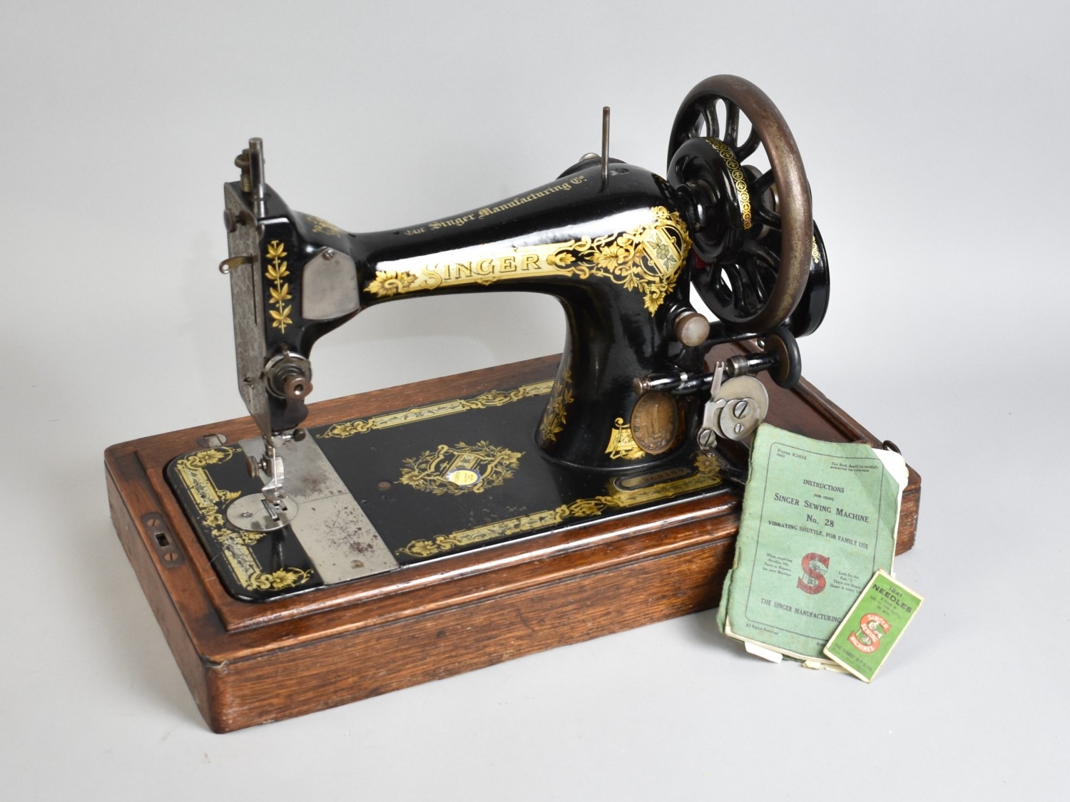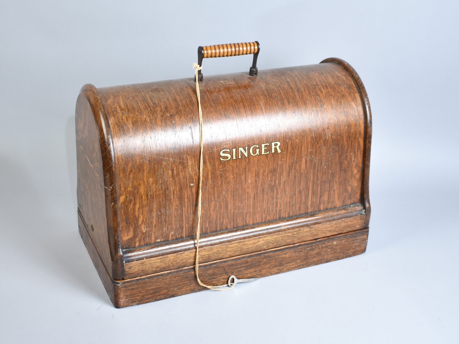 A Vintage Oak Cased Manual Singer Sewing Machine