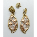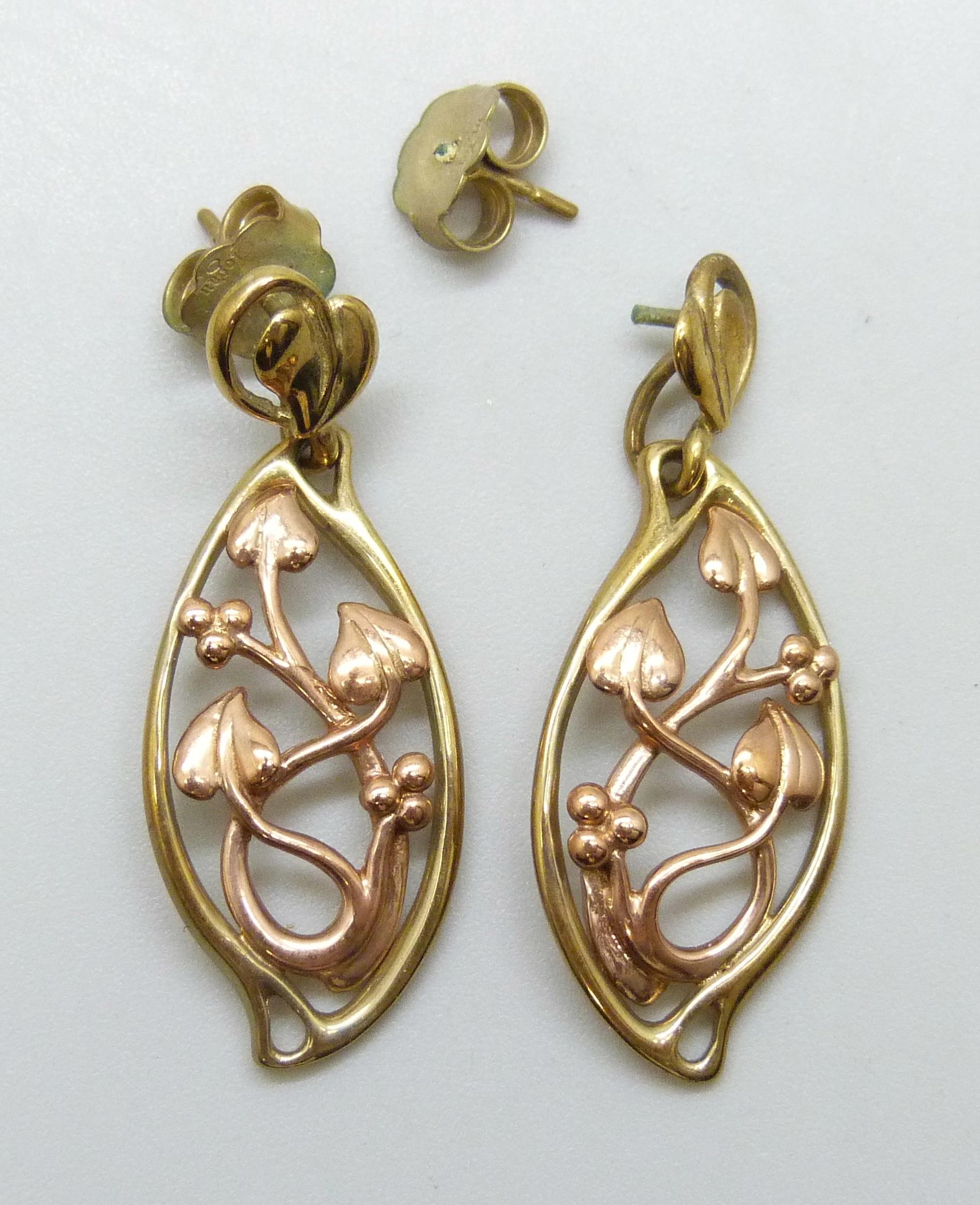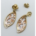A pair of Clogau Welsh 9ct gold Art Nouveau style earrings, one stem a/f, 4.8g, 3.6cm, boxed