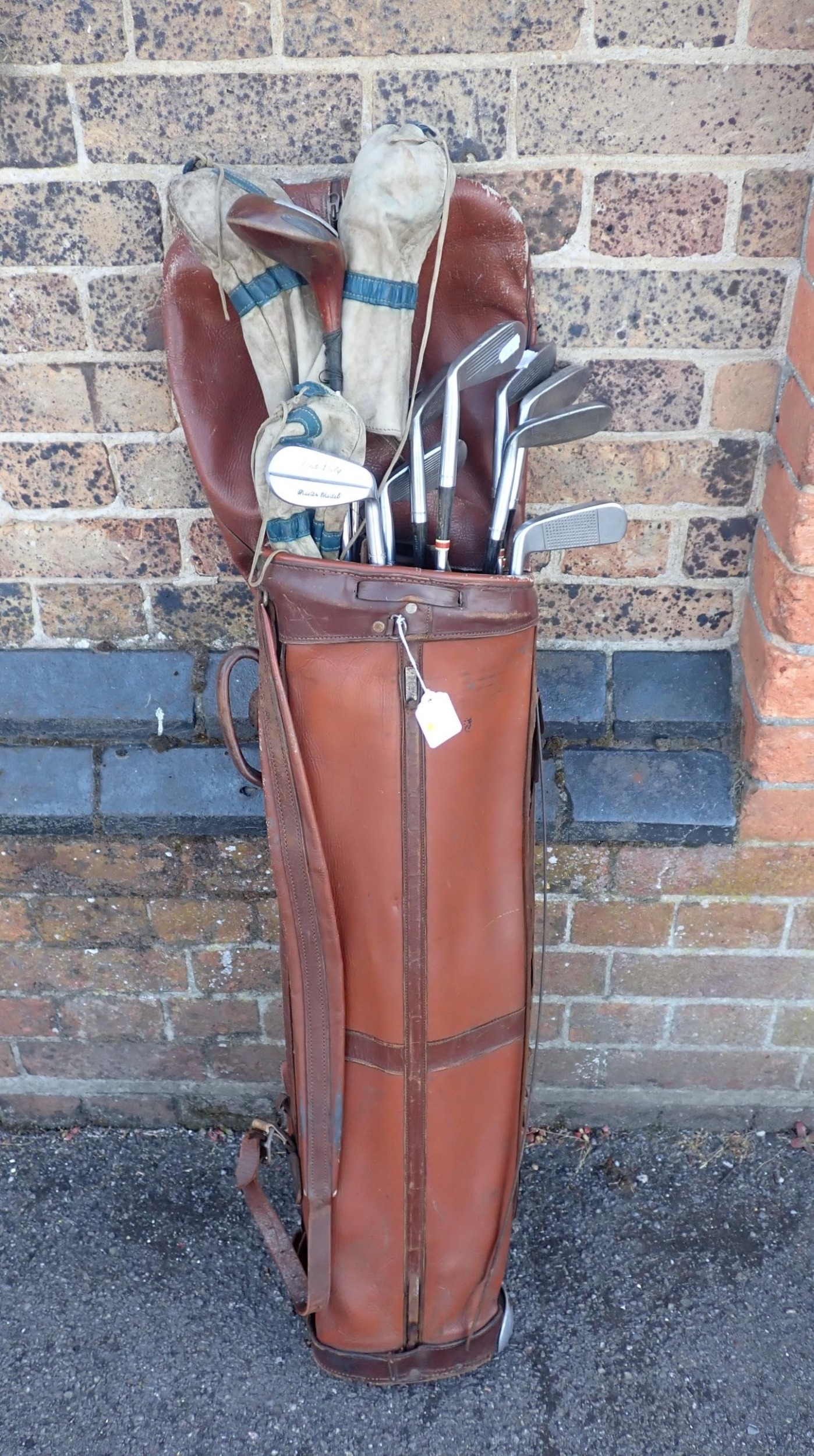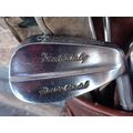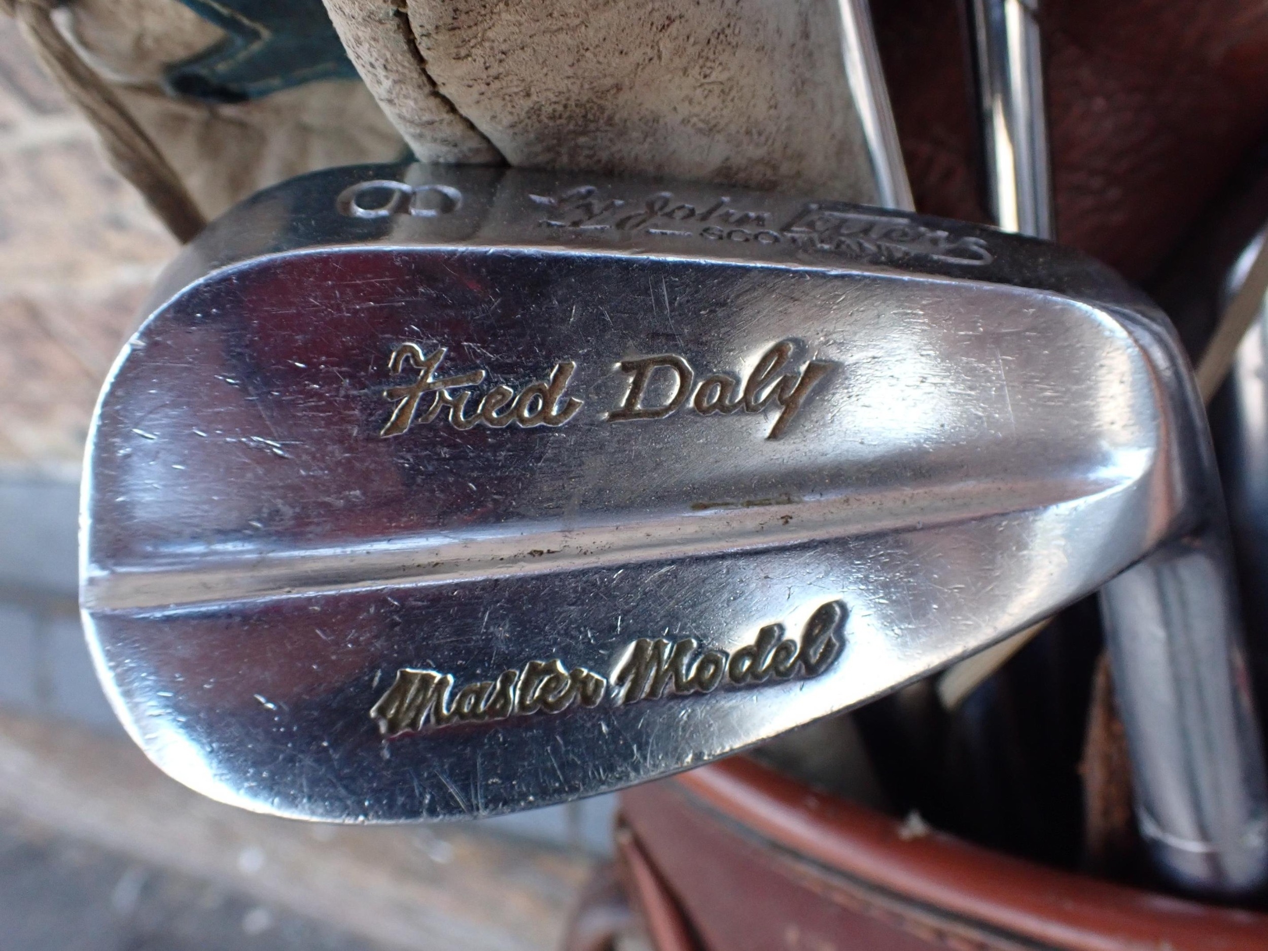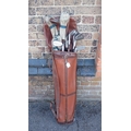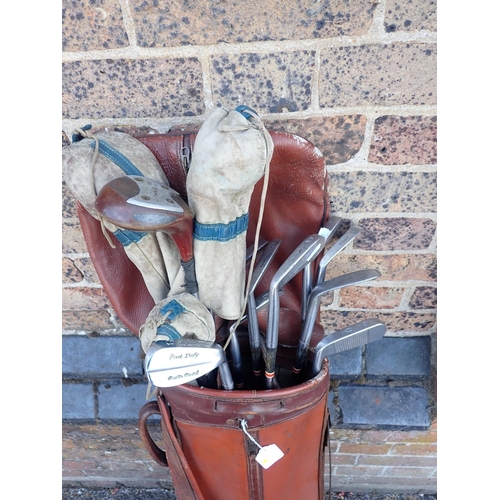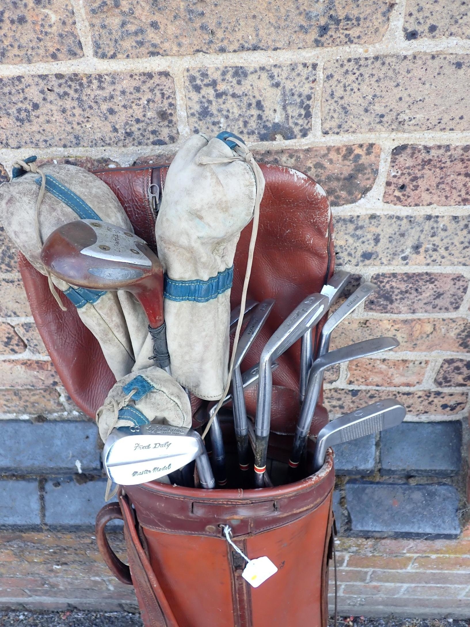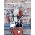 A SET OF VINTAGE JOHN LETTERS 'FRED DALY' GOLF CLUBSand three various woods, in an old leather golf bag