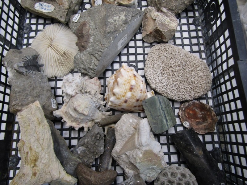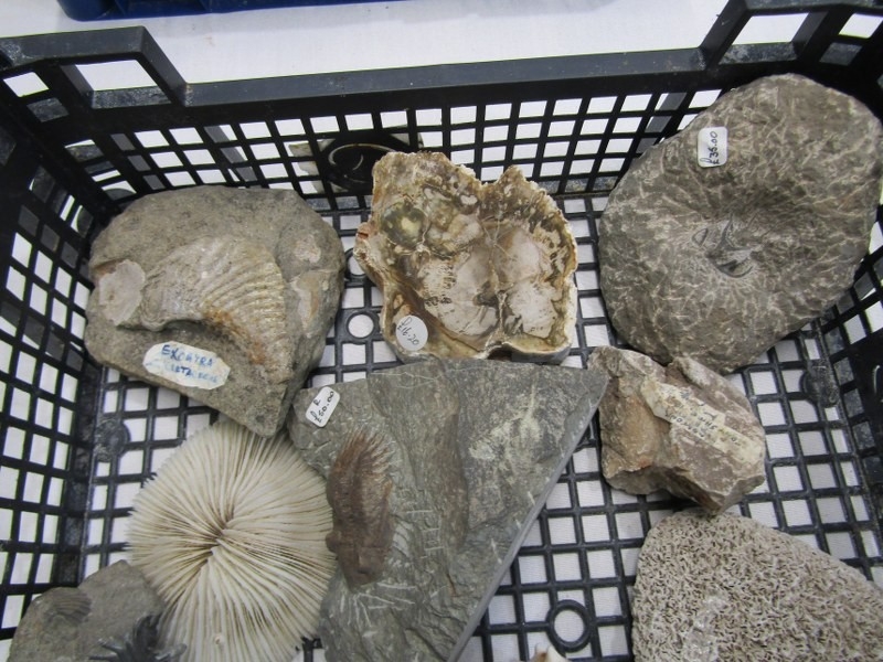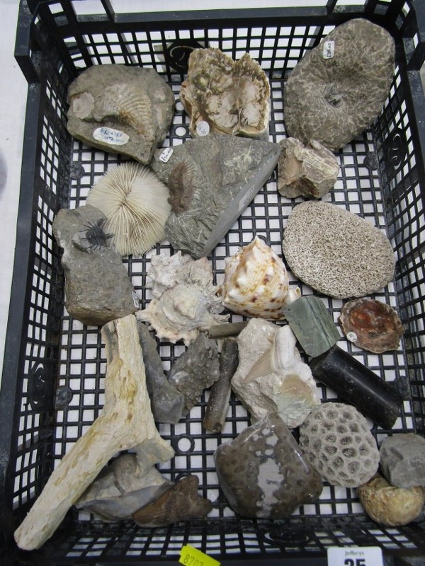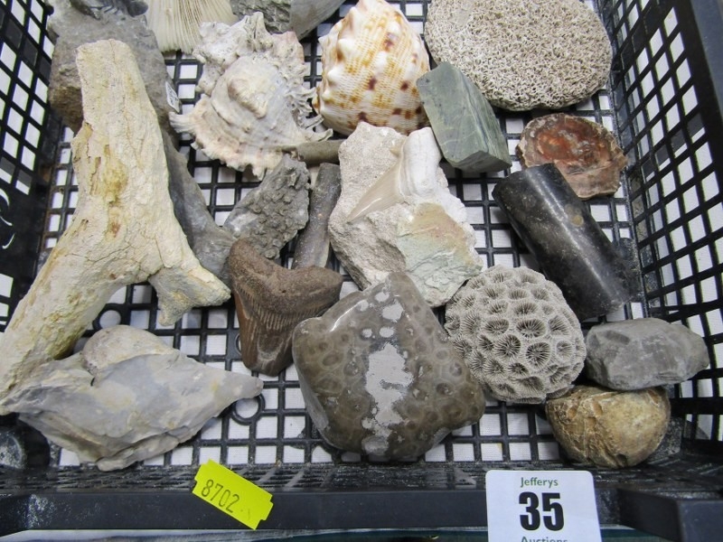 FOSSILS, selection of sea shell fossils, also fossilised horn, sea shells, etc