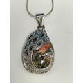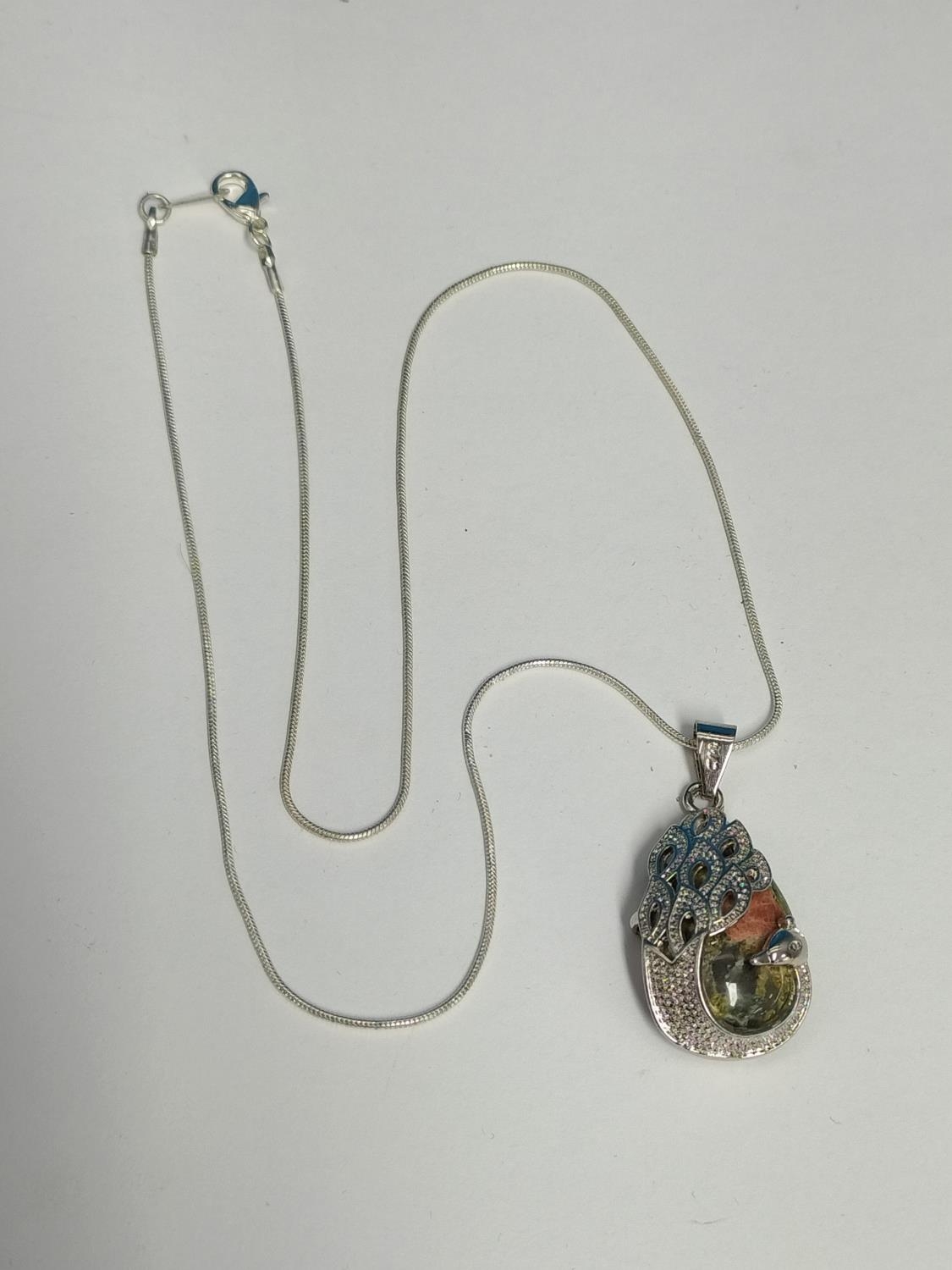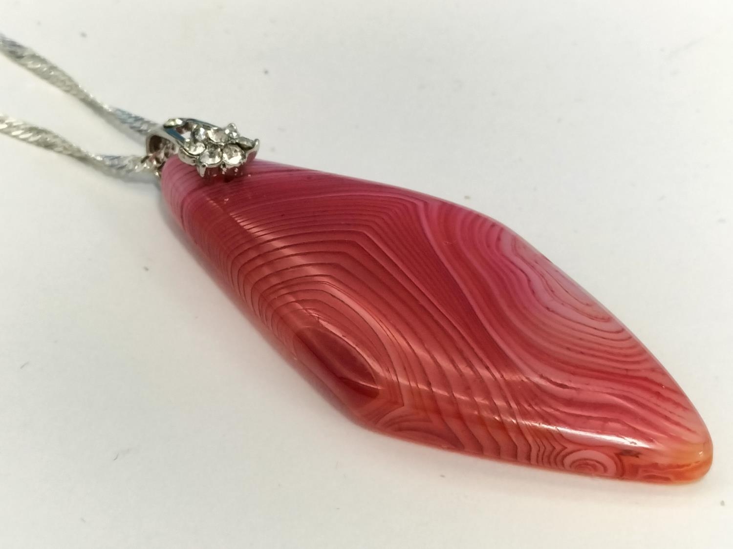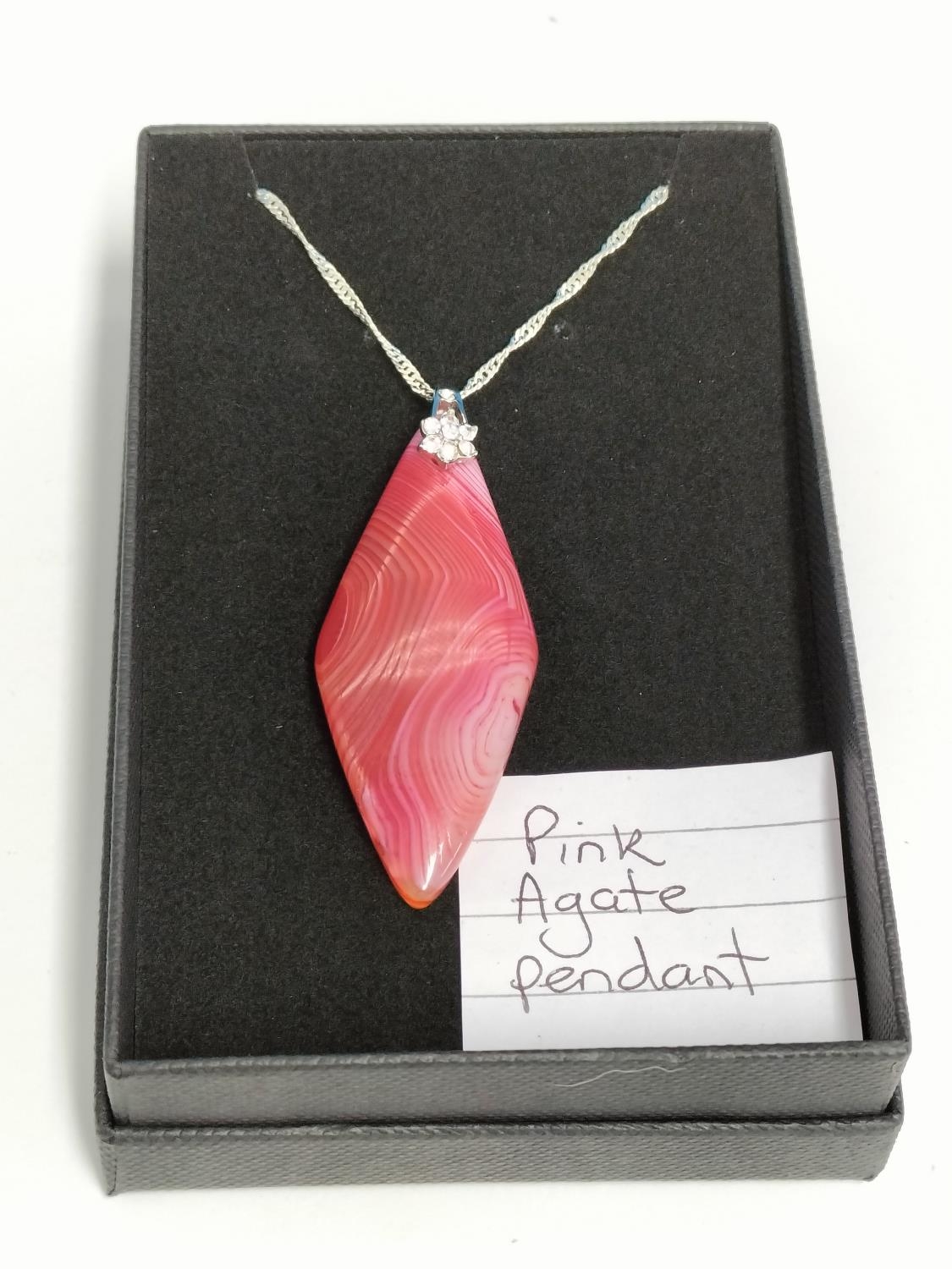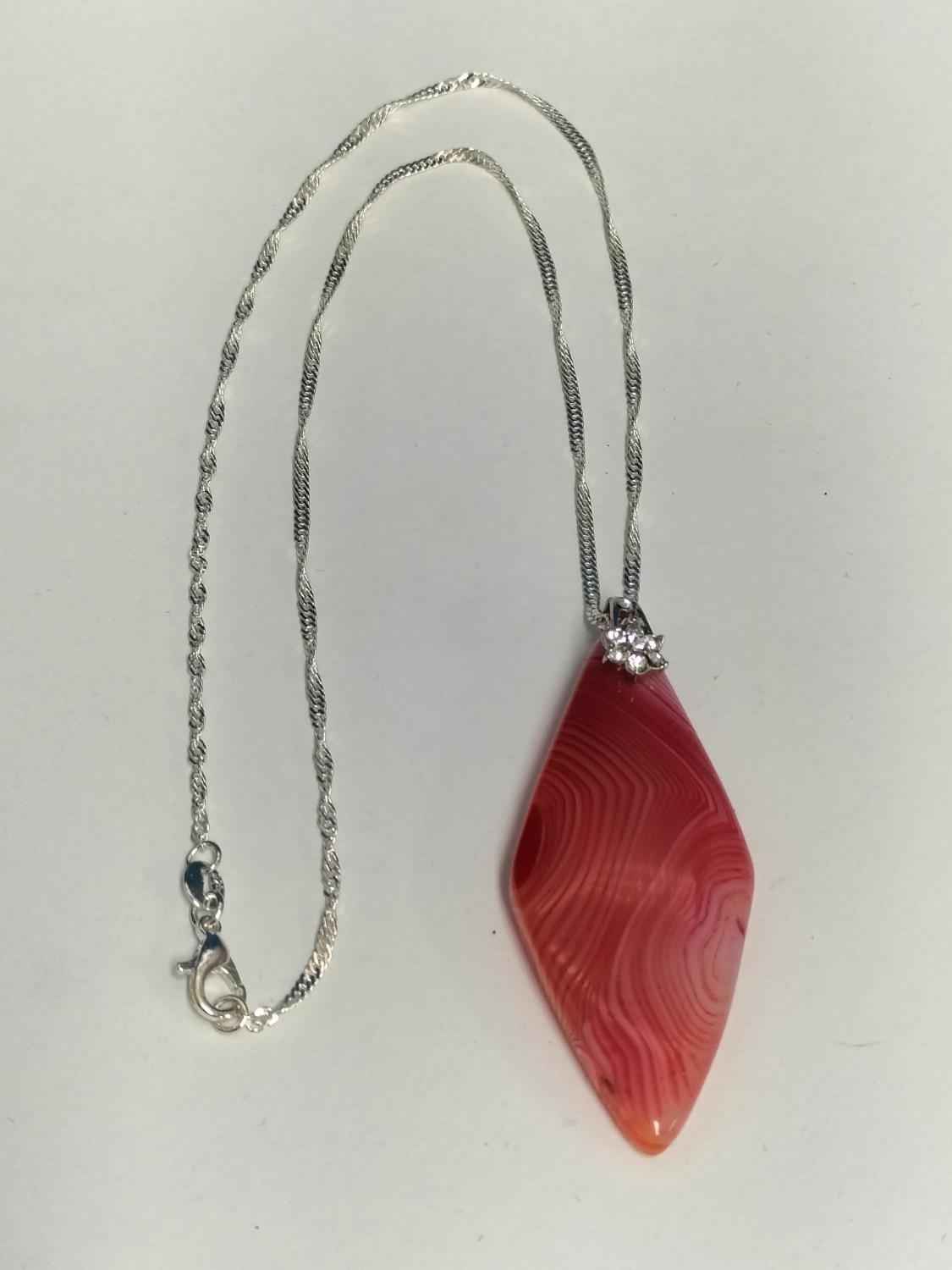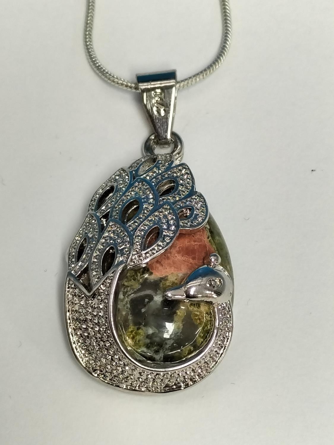 2 x Boxed 18" Chain with Pendants, Pink Agate and Peacock Un...