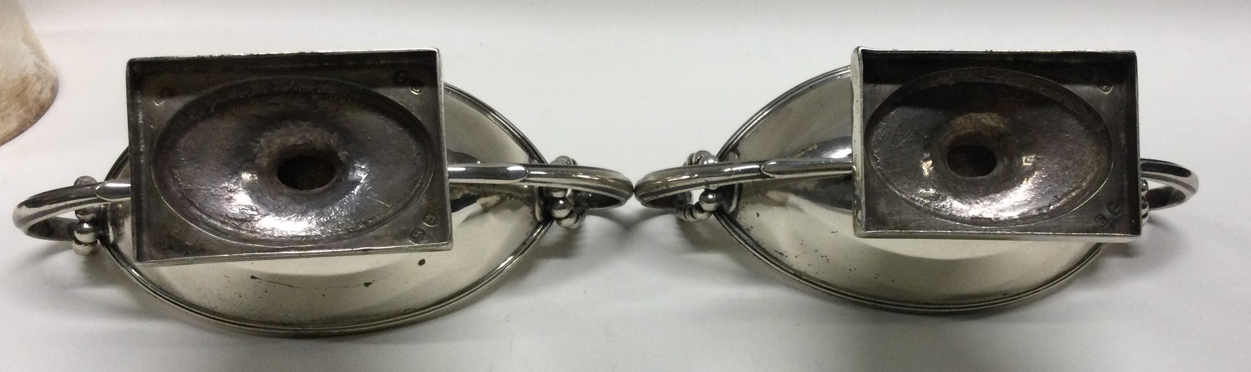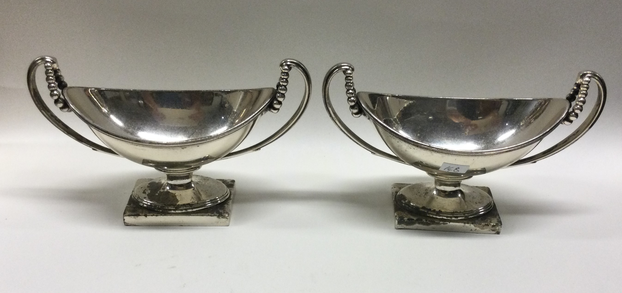 A pair of heavy George III silver salts with beaded decoration. London 1778. By Peter Podio. Approx. 279 grams. Est. £250 - £300.