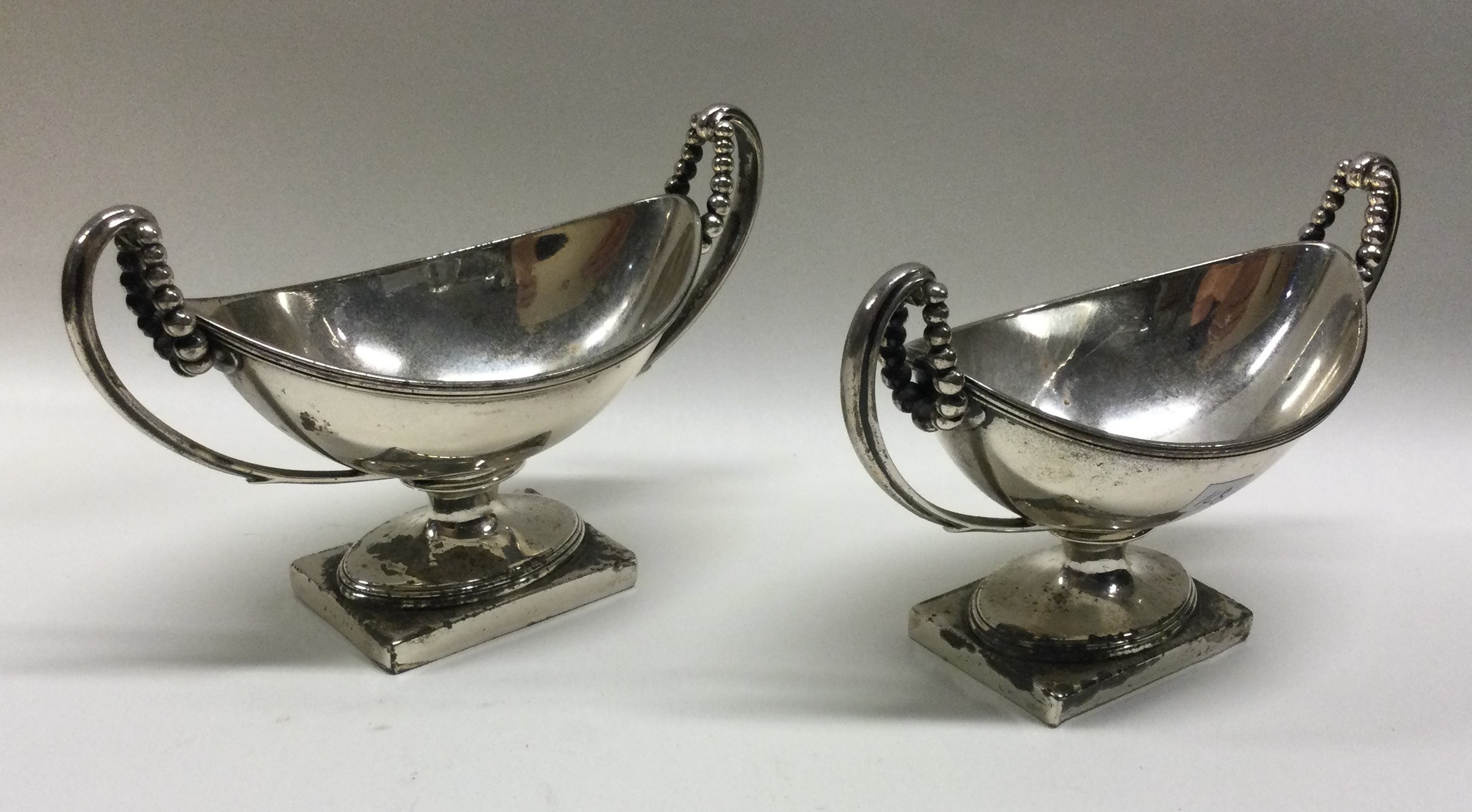 A pair of heavy George III silver salts with beaded decorati...