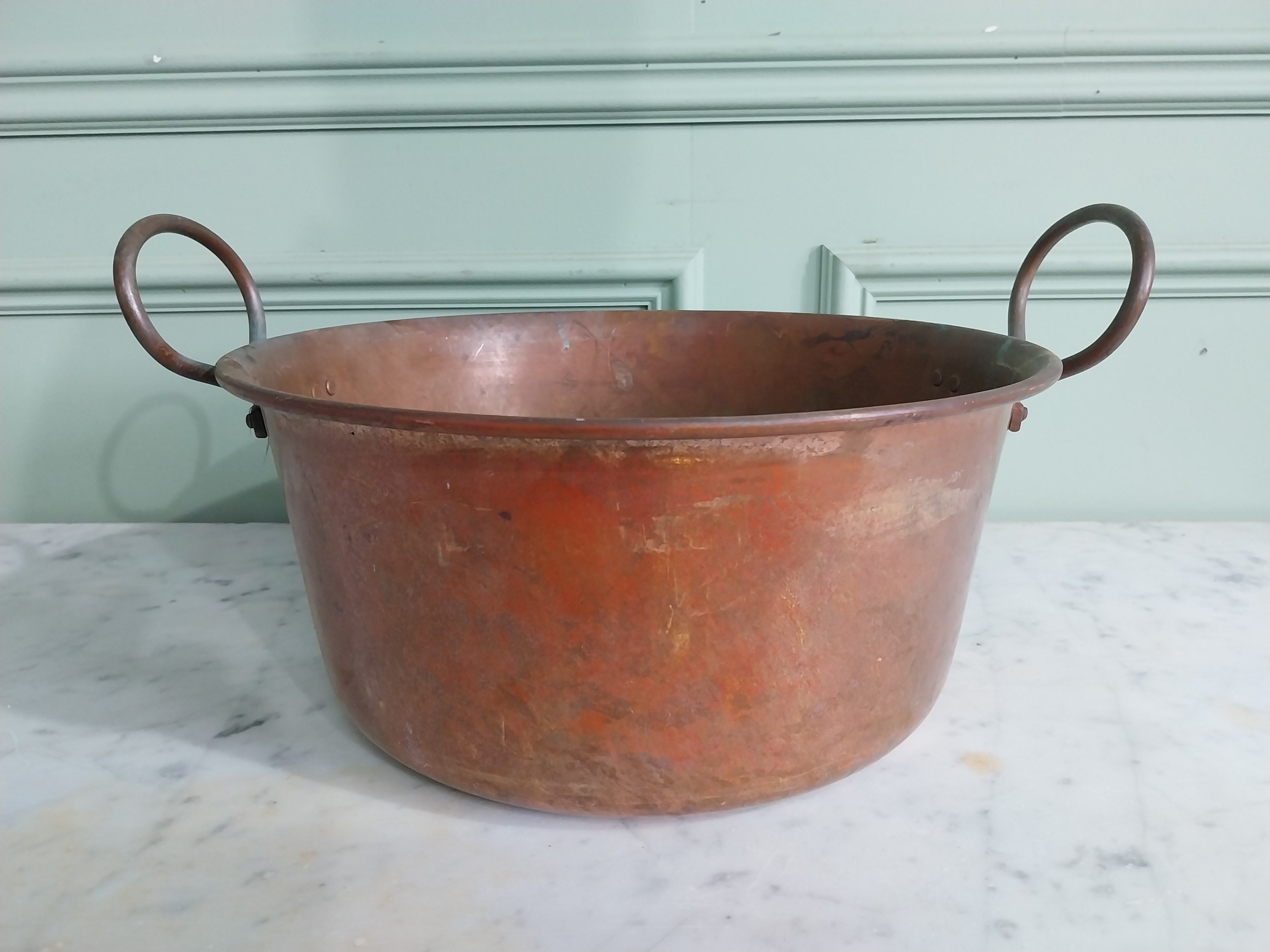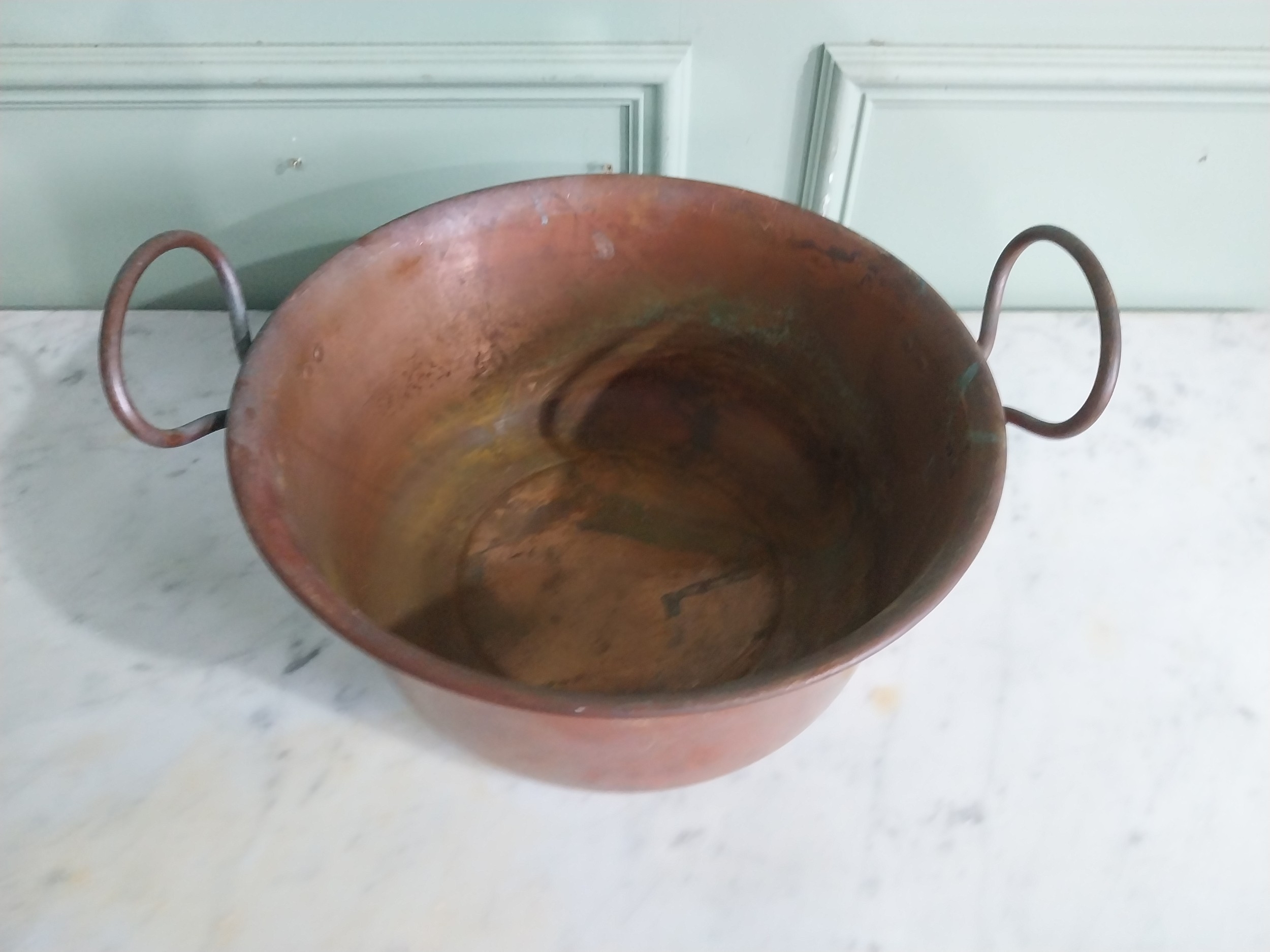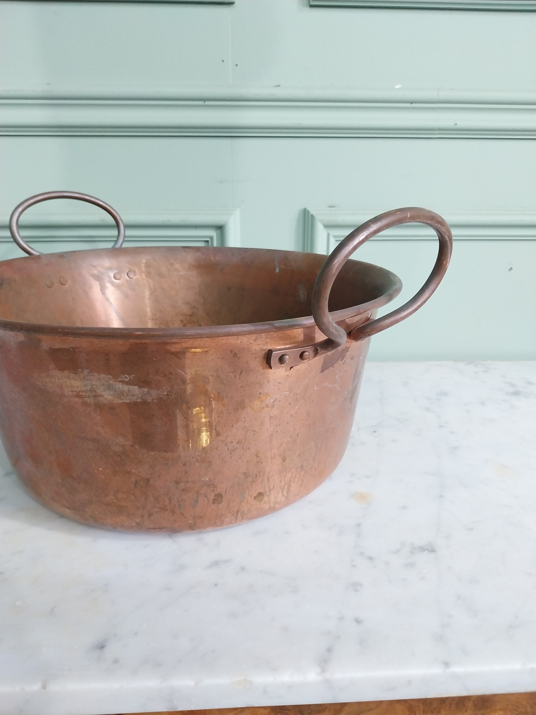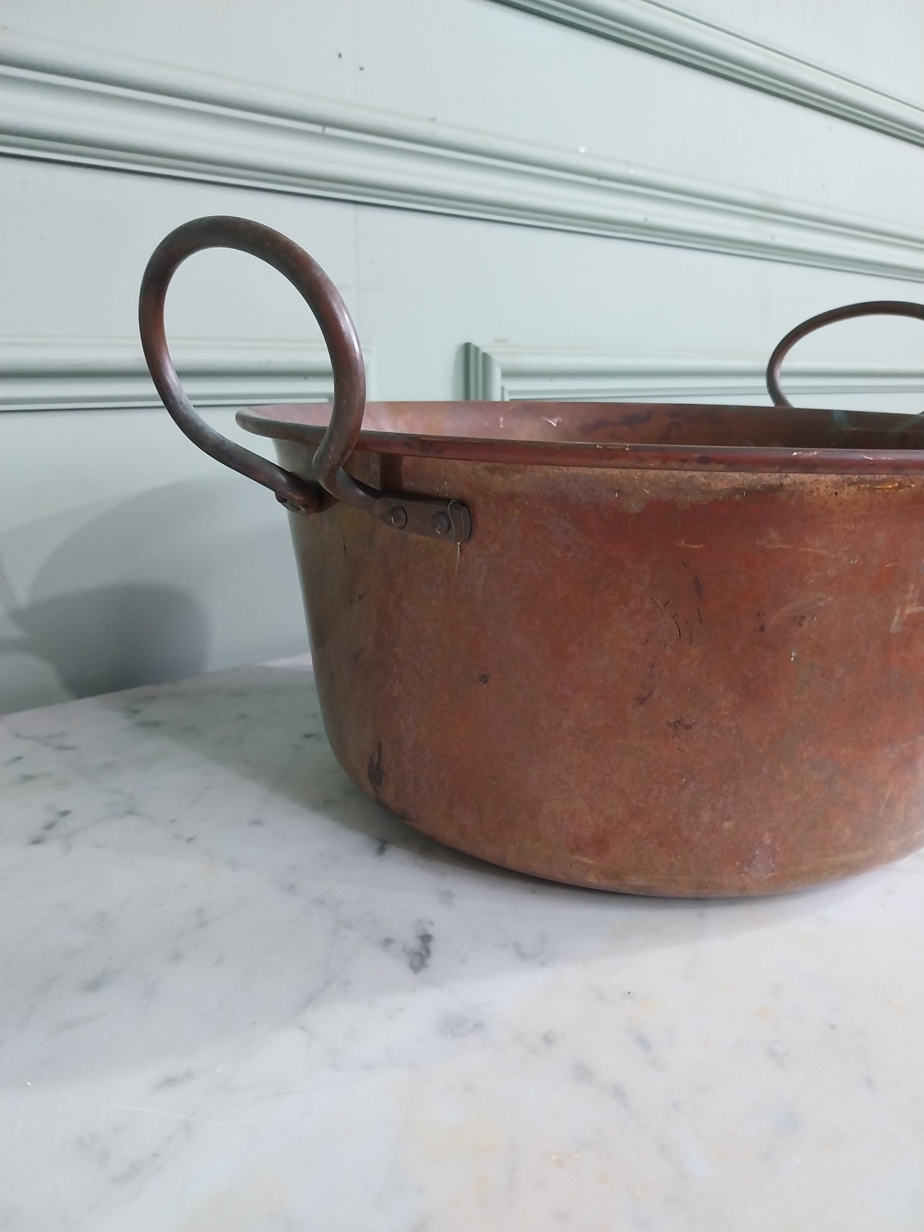 Early 20th C. copper preserving pan with handles. {22 cm H x 34 cm W x 40 cm D}.