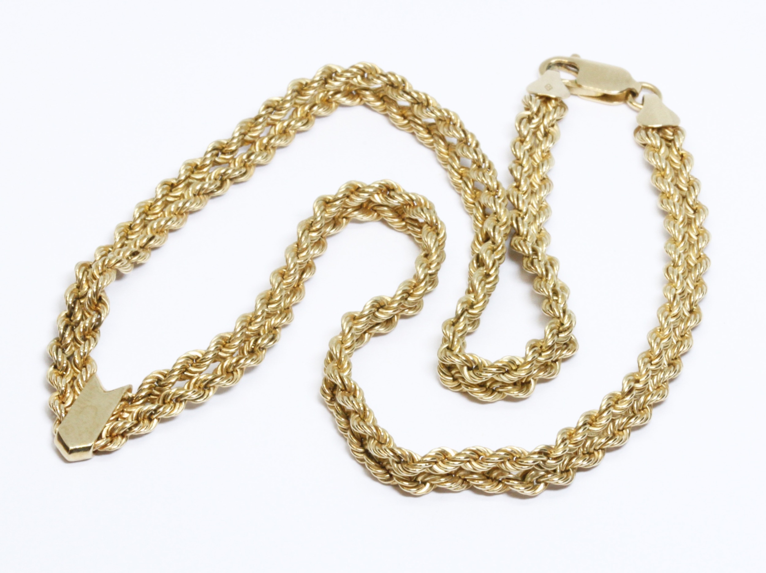 A 9ct gold double rope twist choker necklace, convention marks, length 42cm, weight 10g.
