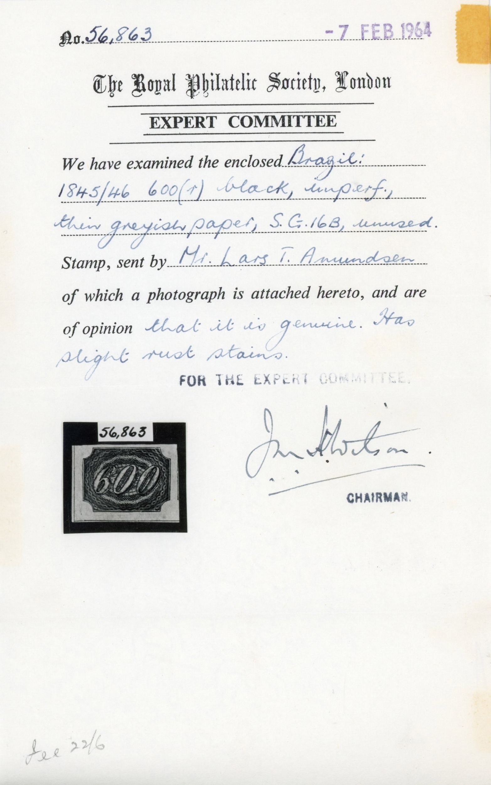 Brazil 1845-46 Slanting Figures 600r. fine unused