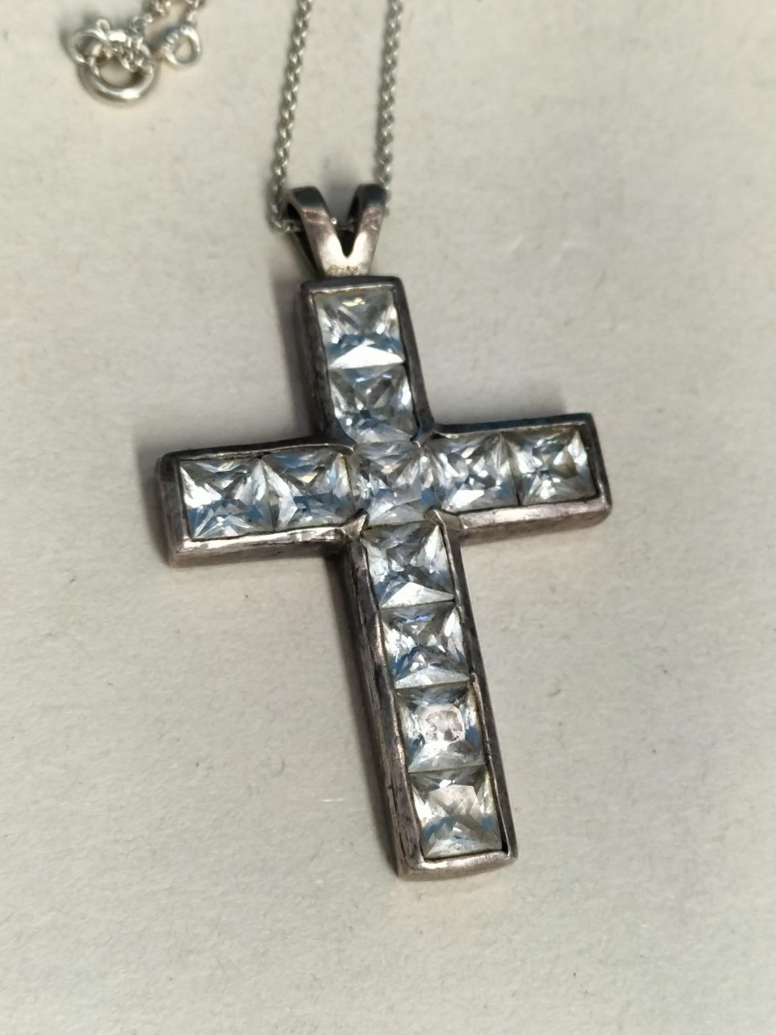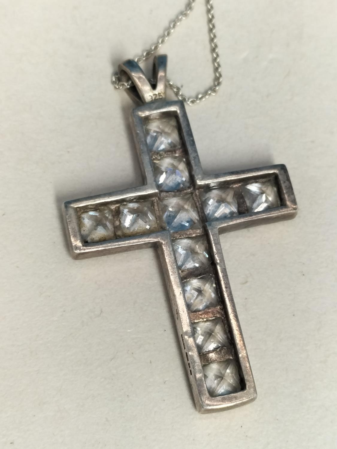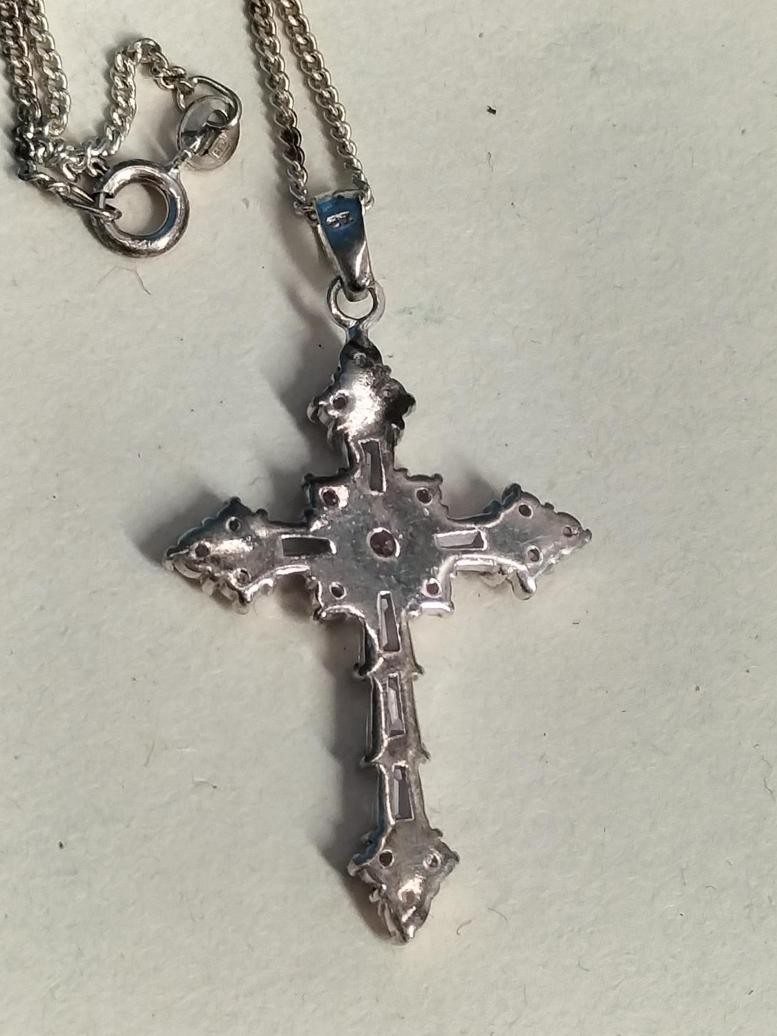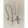 Silver 16" Chains (2) with 925 Silver Stone Set Cross Pendants (2).