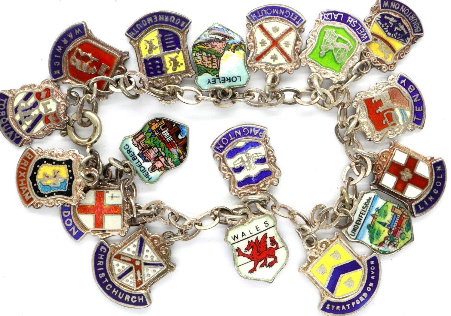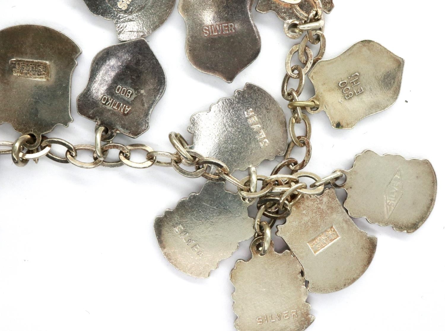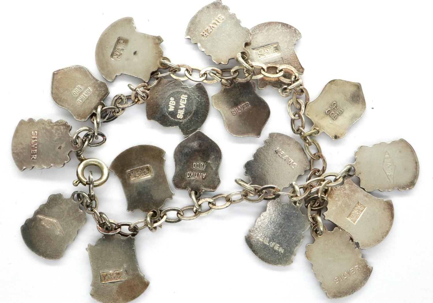 925 silver charm bracelet with seventeen charms, L: 18 cm. P...