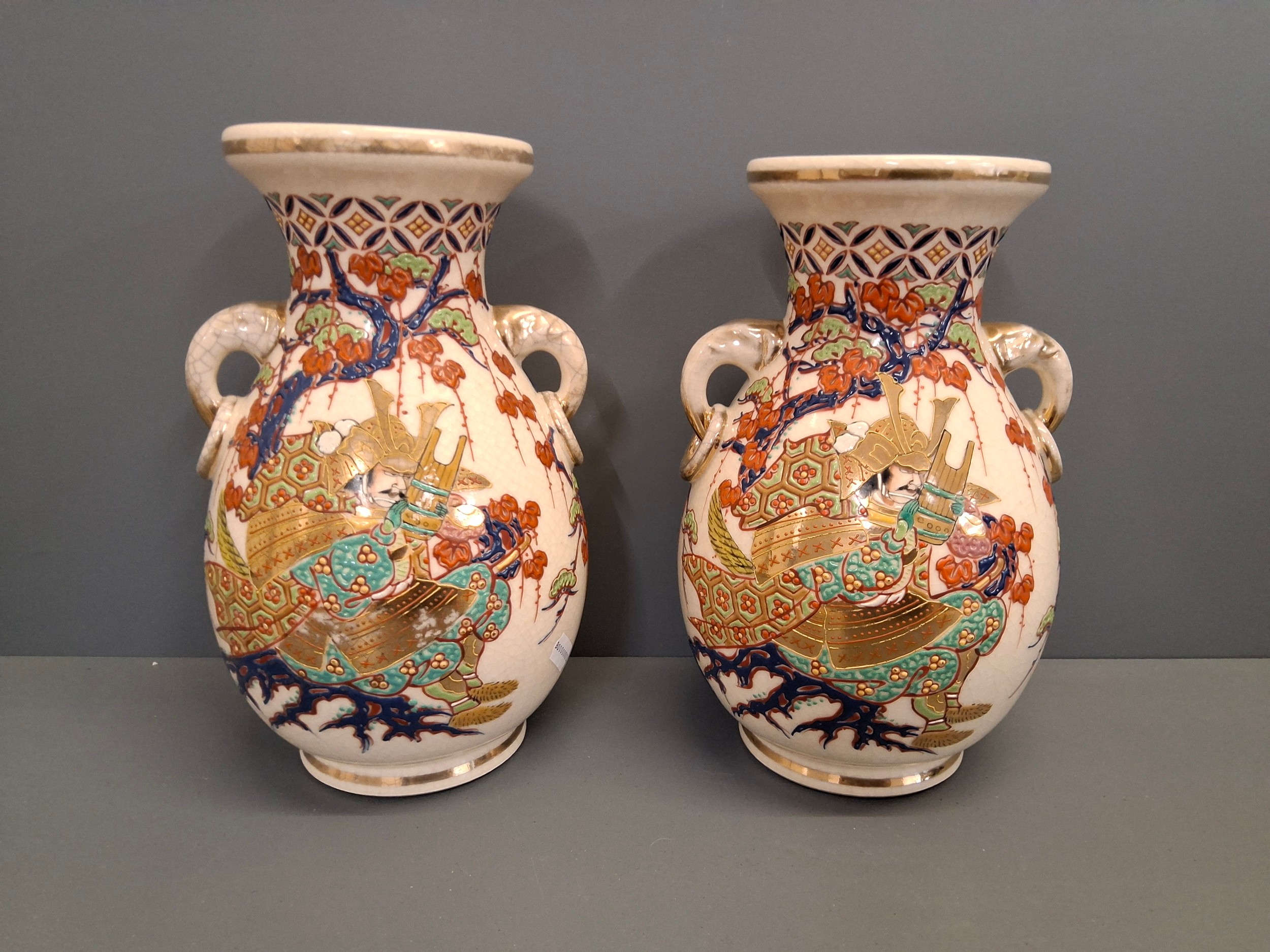 Pair of antique Satsuma ware vases.Approx measurements.Height 25cm