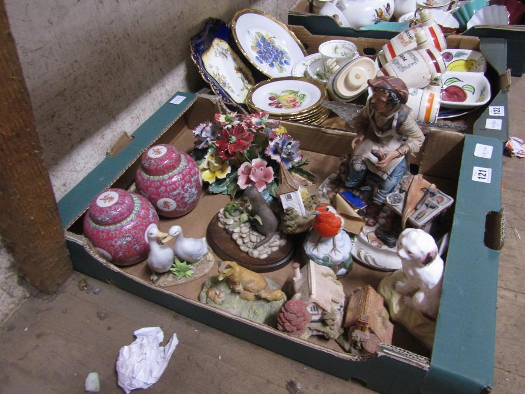 BOX OF MIXED CERAMICS - ORIENTAL, CAPODIMONTE ETC