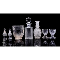 A small collection of early 19th Century deceptive bowl drinking glasses, raised variously on bladed knop and plain stems, height 12cm-9.5cm. (8)