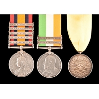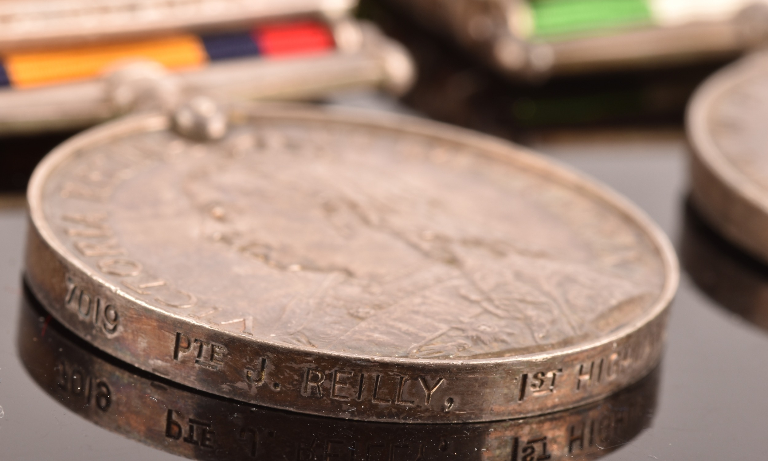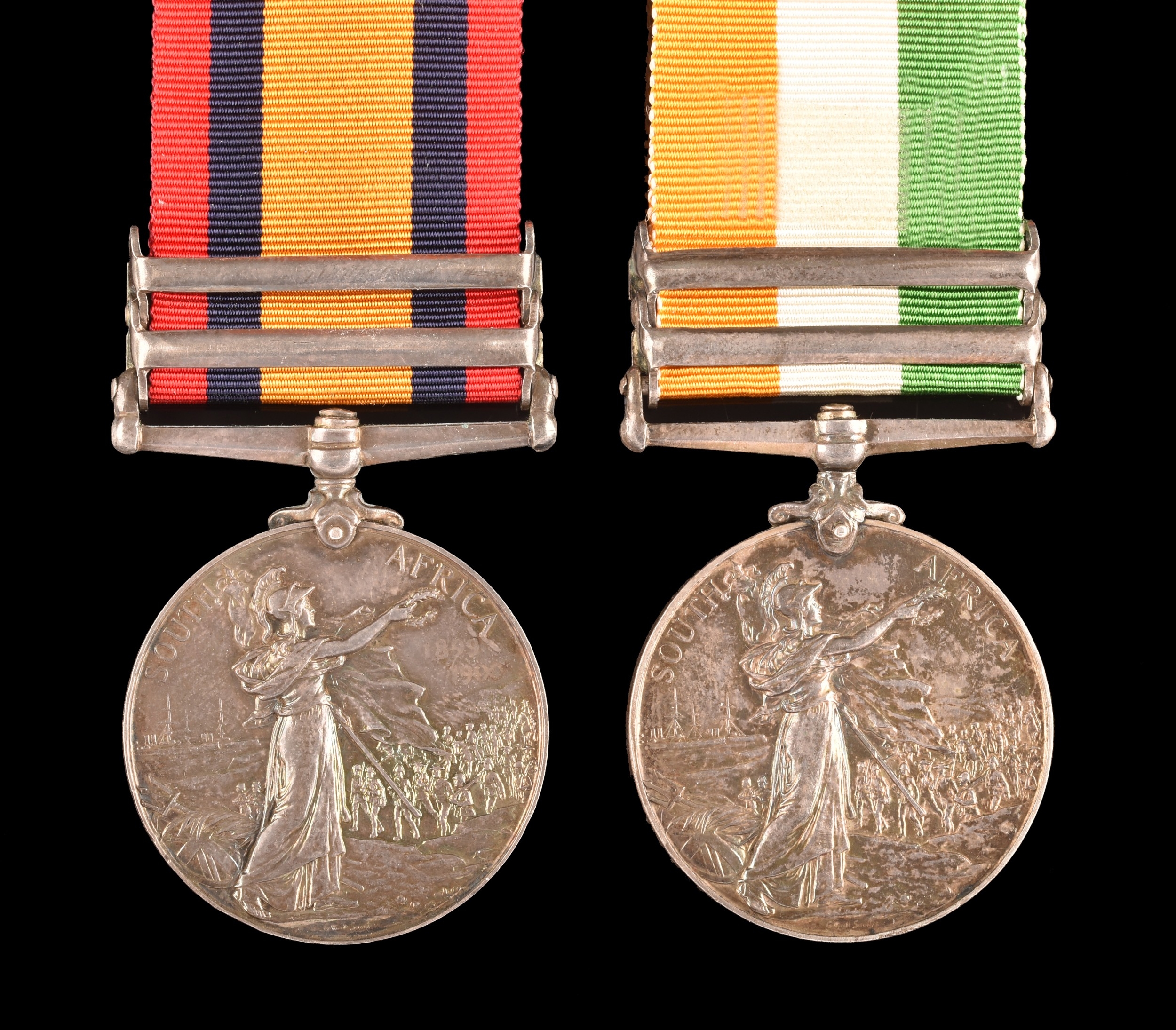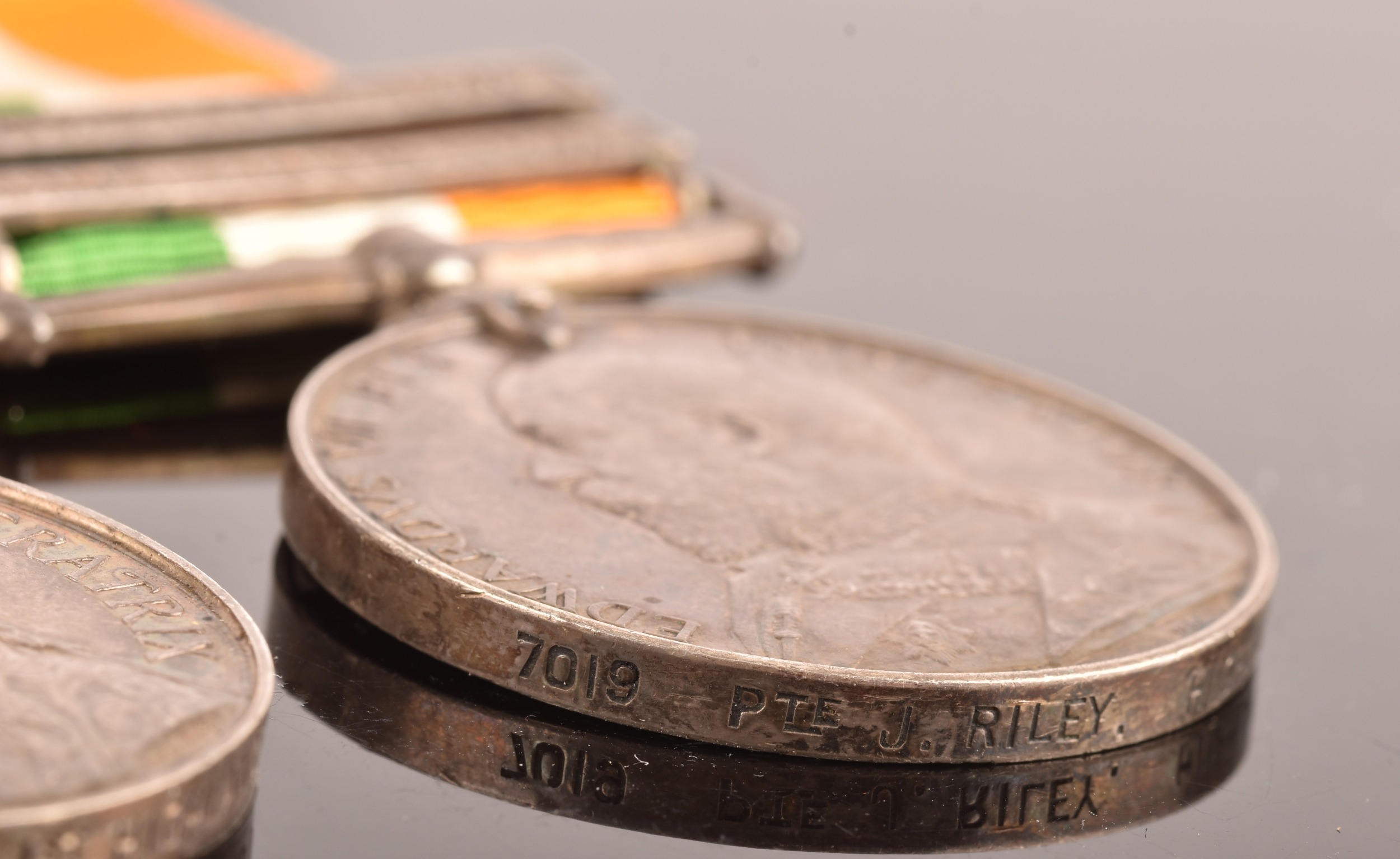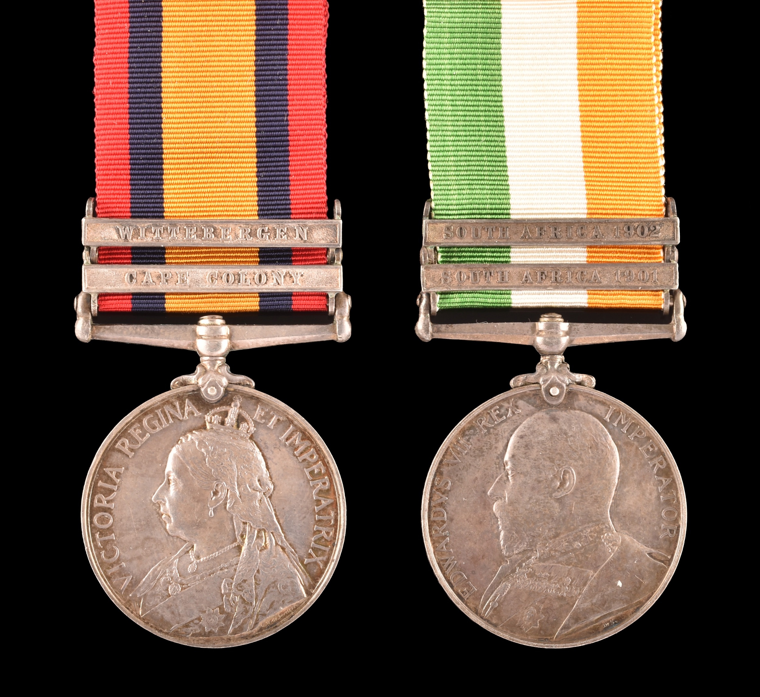 A Boer War medal pair awarded to: 7019 Private. J. Riley, Highland Light Infantry. Comprising: a QSA Queen’s South Africa medal with 2 clasps Cape Colony, Wittebergen (7019 Pte. J. Reilly, 1st Highland Lt. Infy.); and a KSA King's South Africa medal with 2 clasps South Africa 1901 and South Africa 1902 (7019 Pte. J. Riley, Highland L.I.).