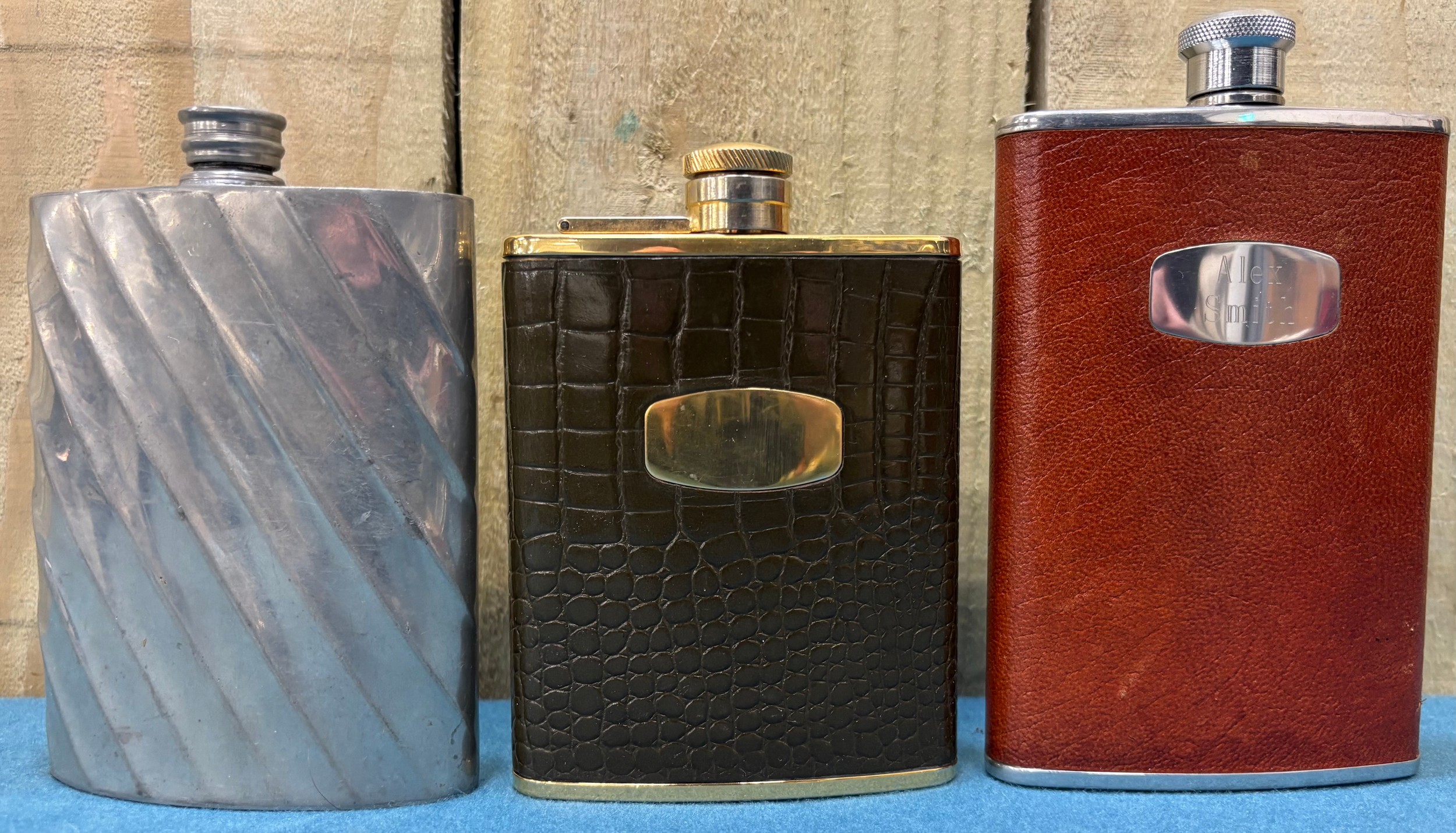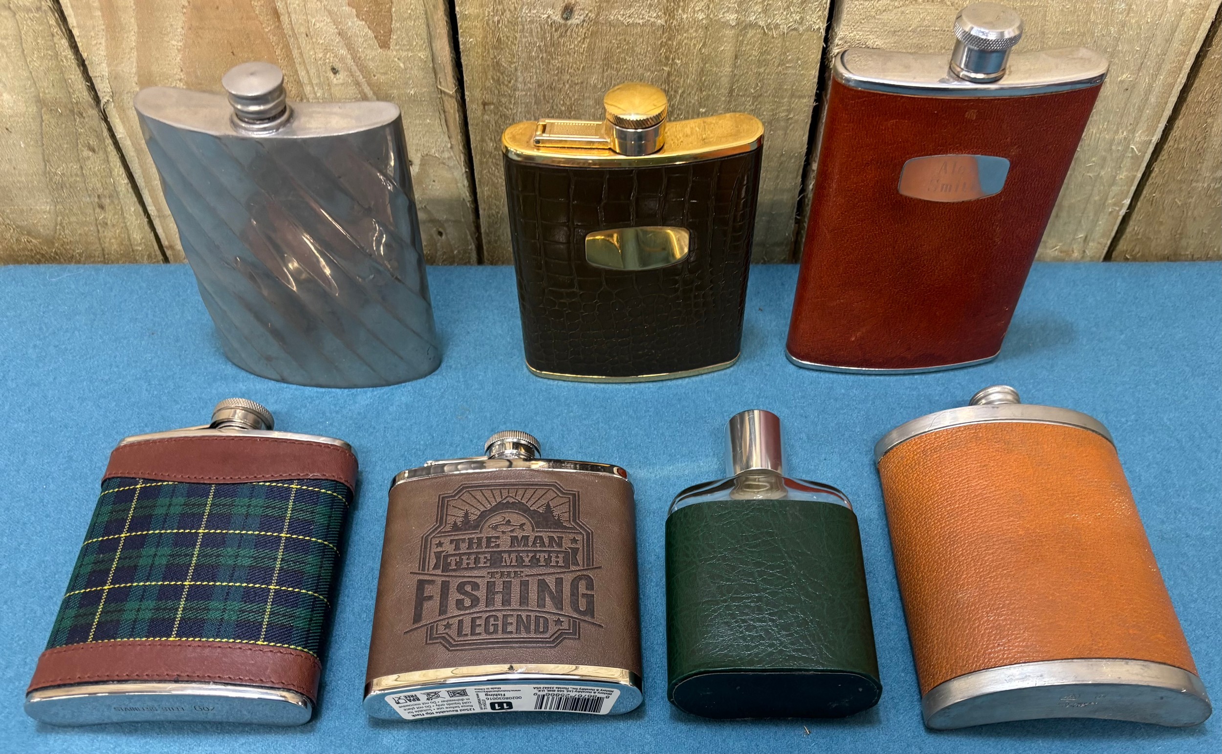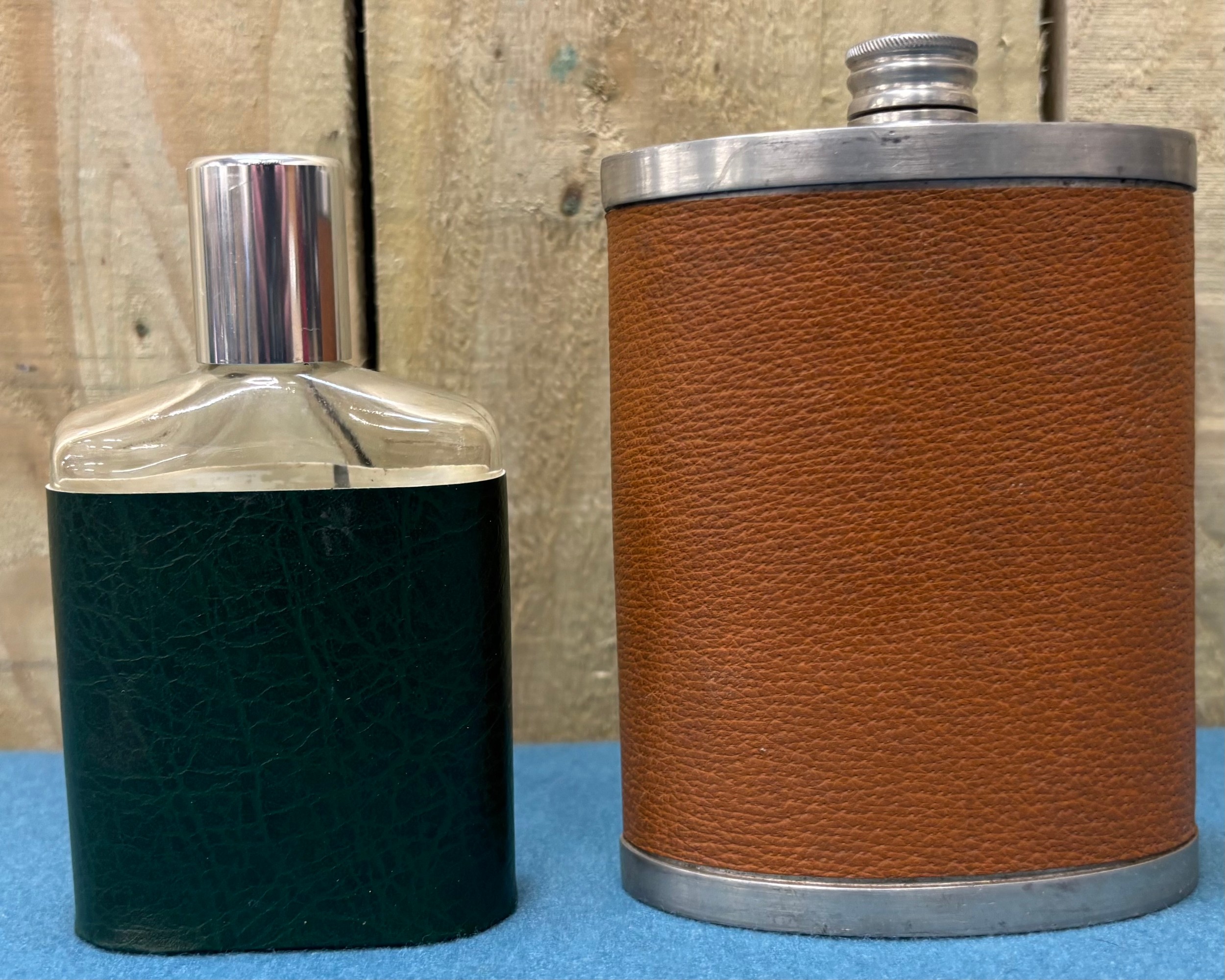 A Collection of vintage whisky flasks.