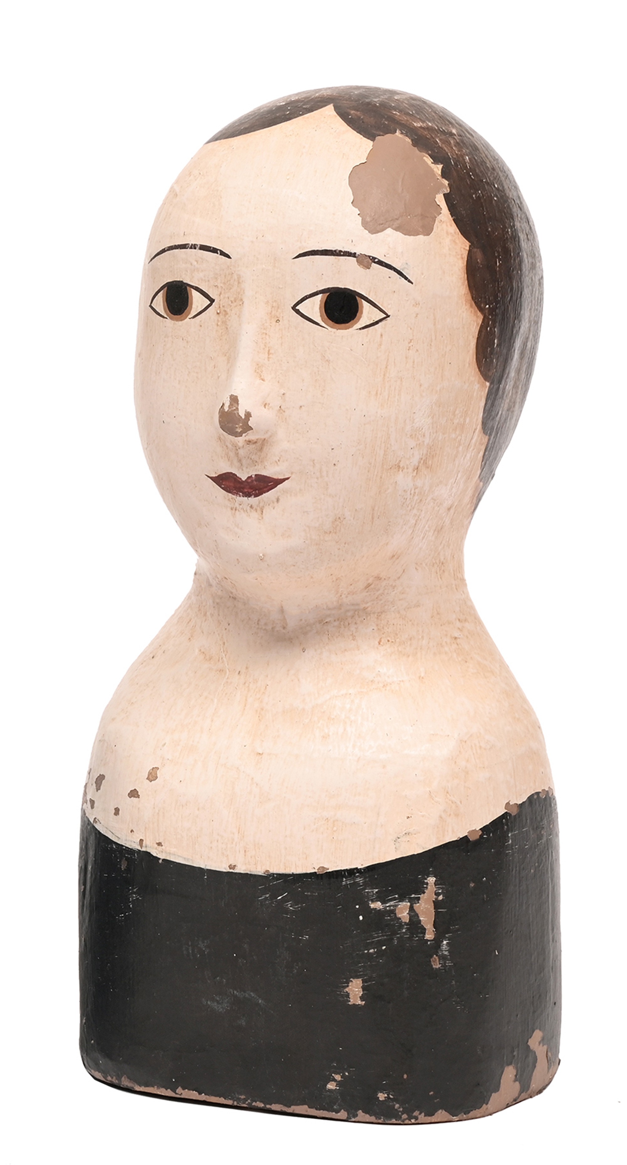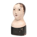 A French papier mache marotte, early 20th c, with painted features, 29cm h