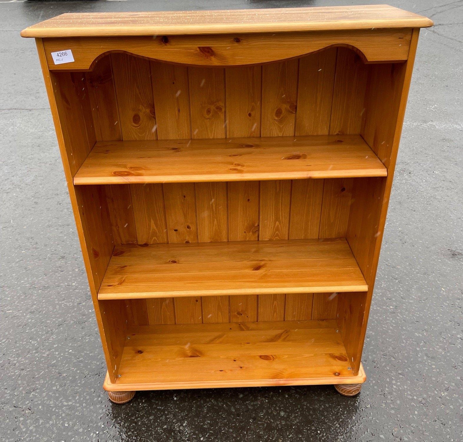 A three shelf pine bookcase - ideal for upcycling with chalk paint etc - dimensions 3.5ft height x 3ft width x 10" depth - ideal for upcycling!