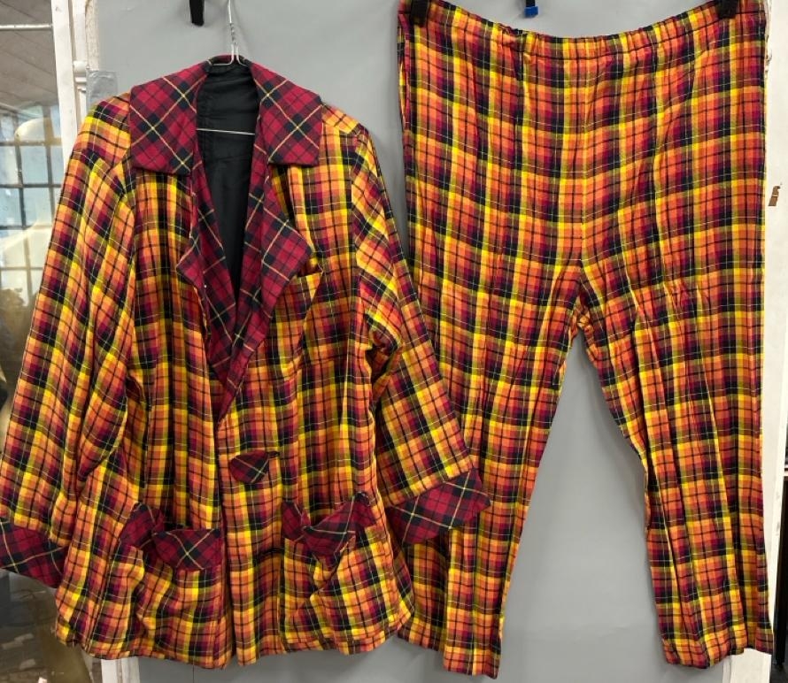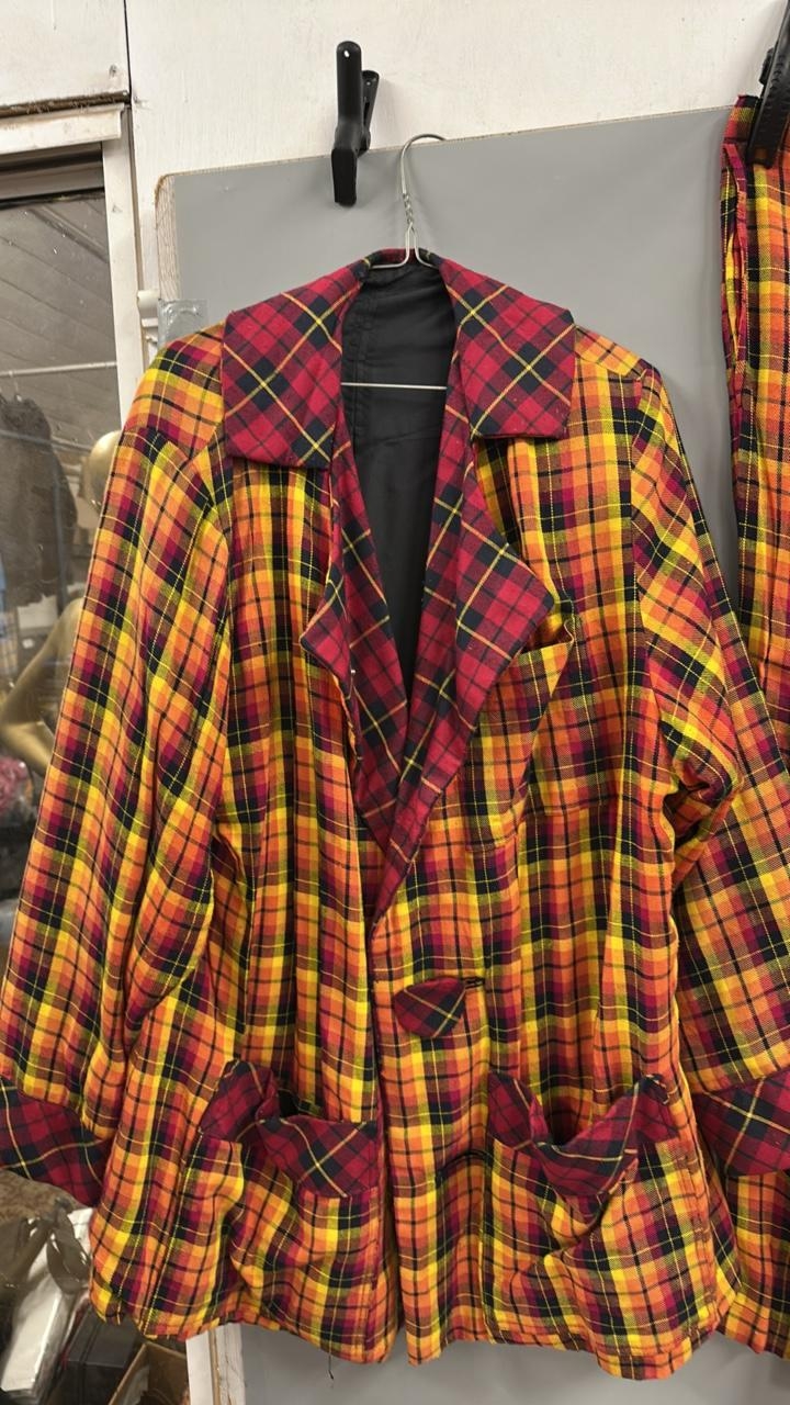 Stage worn checkered clown costume including jacket and trousers / Rail 4