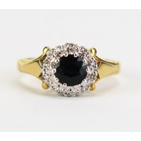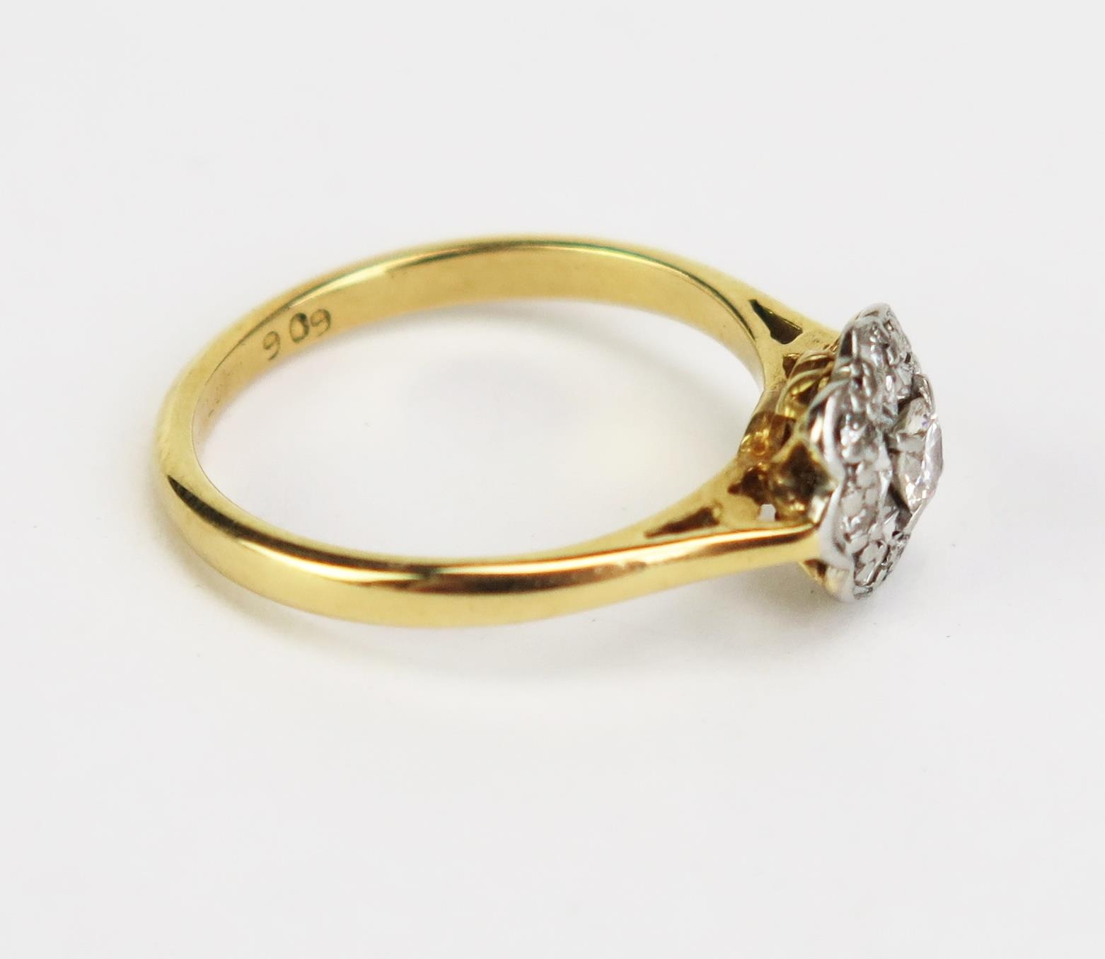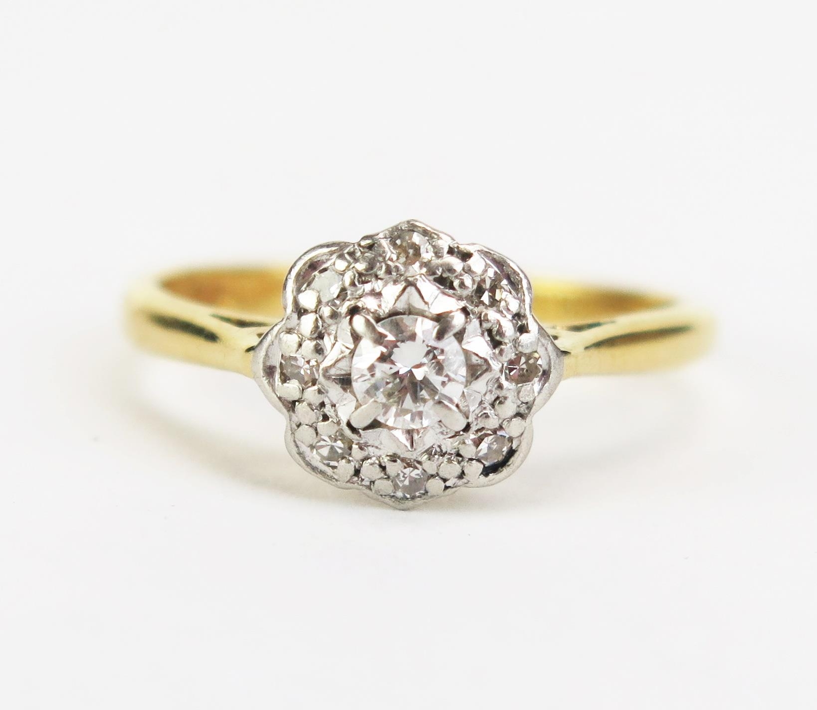 An 18ct Gold and Diamond Cluster Ring, 8.5mm platinum head, hallmarked, size K.5, 2.83g
