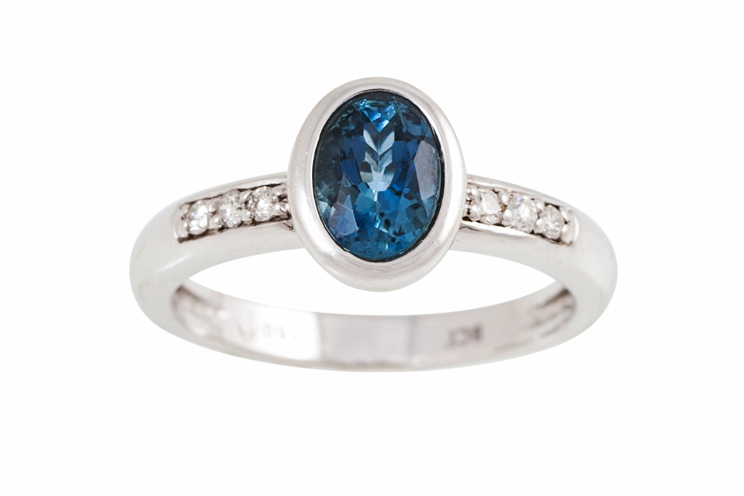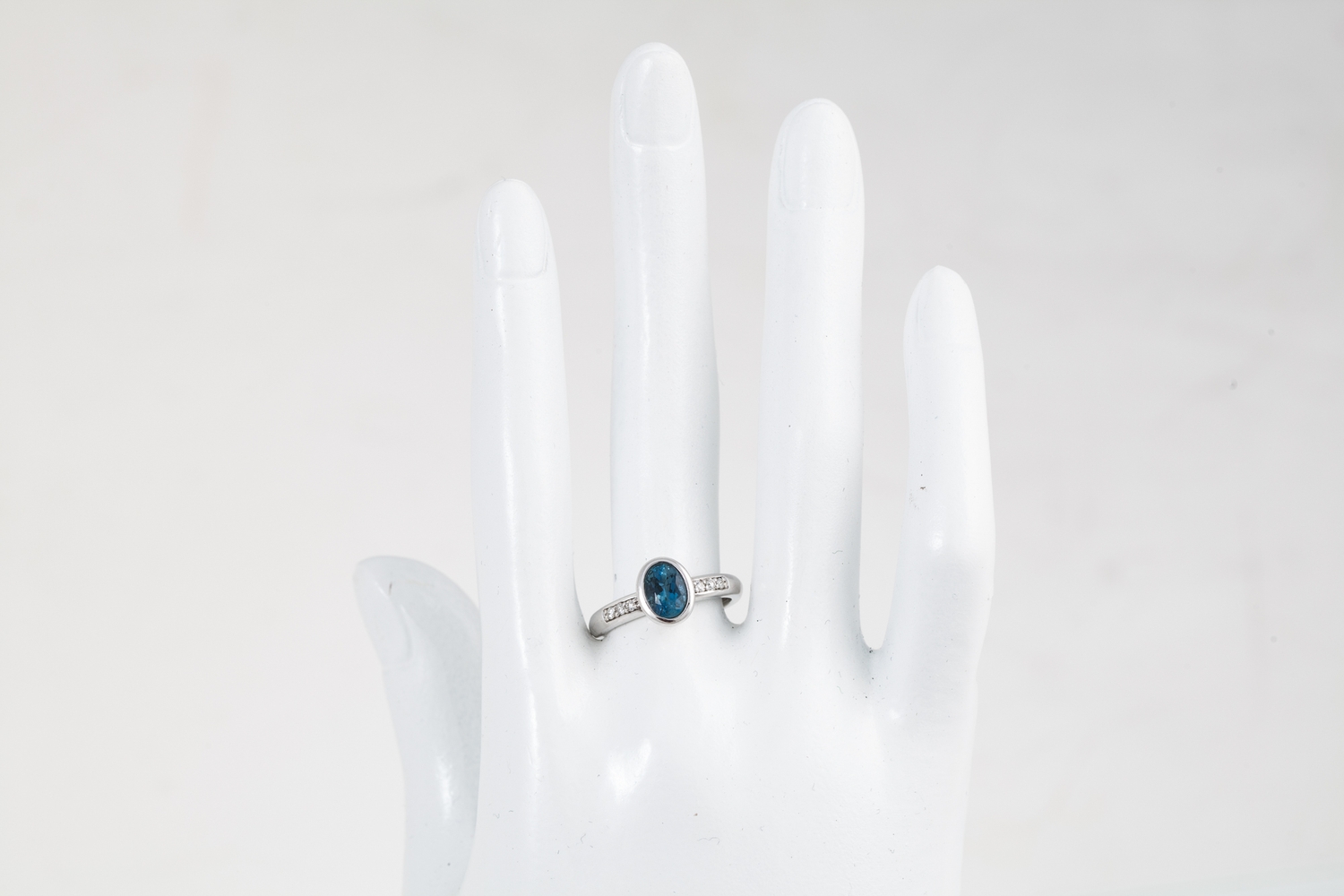 A DIAMOND AND GEM SET RING, mounted in 18ct white gold, size M