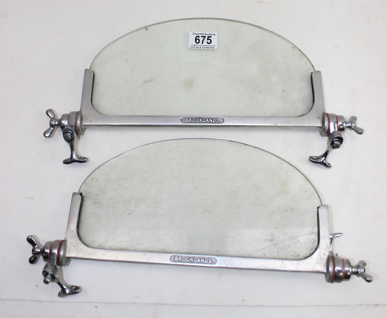 A pair of vintage Brooklands car windscreens