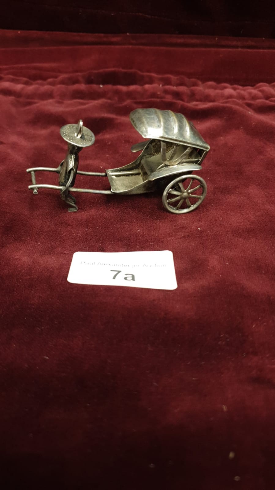 Contential white metal Oriental gentleman with rickshaw.