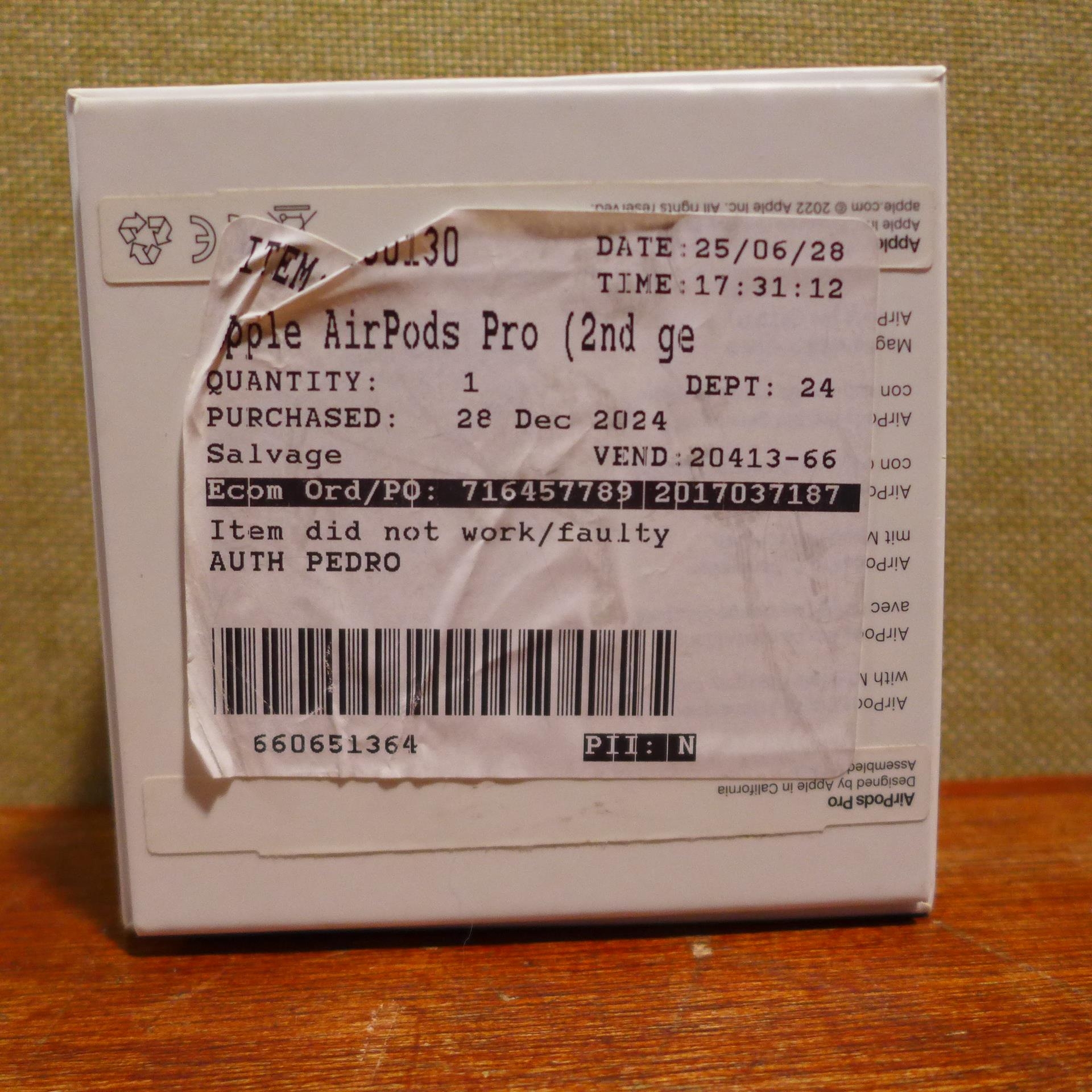 A pair of Apple Airpods Pro 2nd Generation - model no - MTJV3ZM/A USB-C, original RRP £179.99 + VAT (378-55) *This lot is subject to VAT