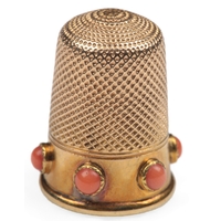 This pot was intended to hold gum Arabic, an adhesive used to attach postage stamps to letters, which could be applied with the garnet-topped brush. For a closely comparable design by Fabergé, see Christie's London, 8th June 2010, lot 147.