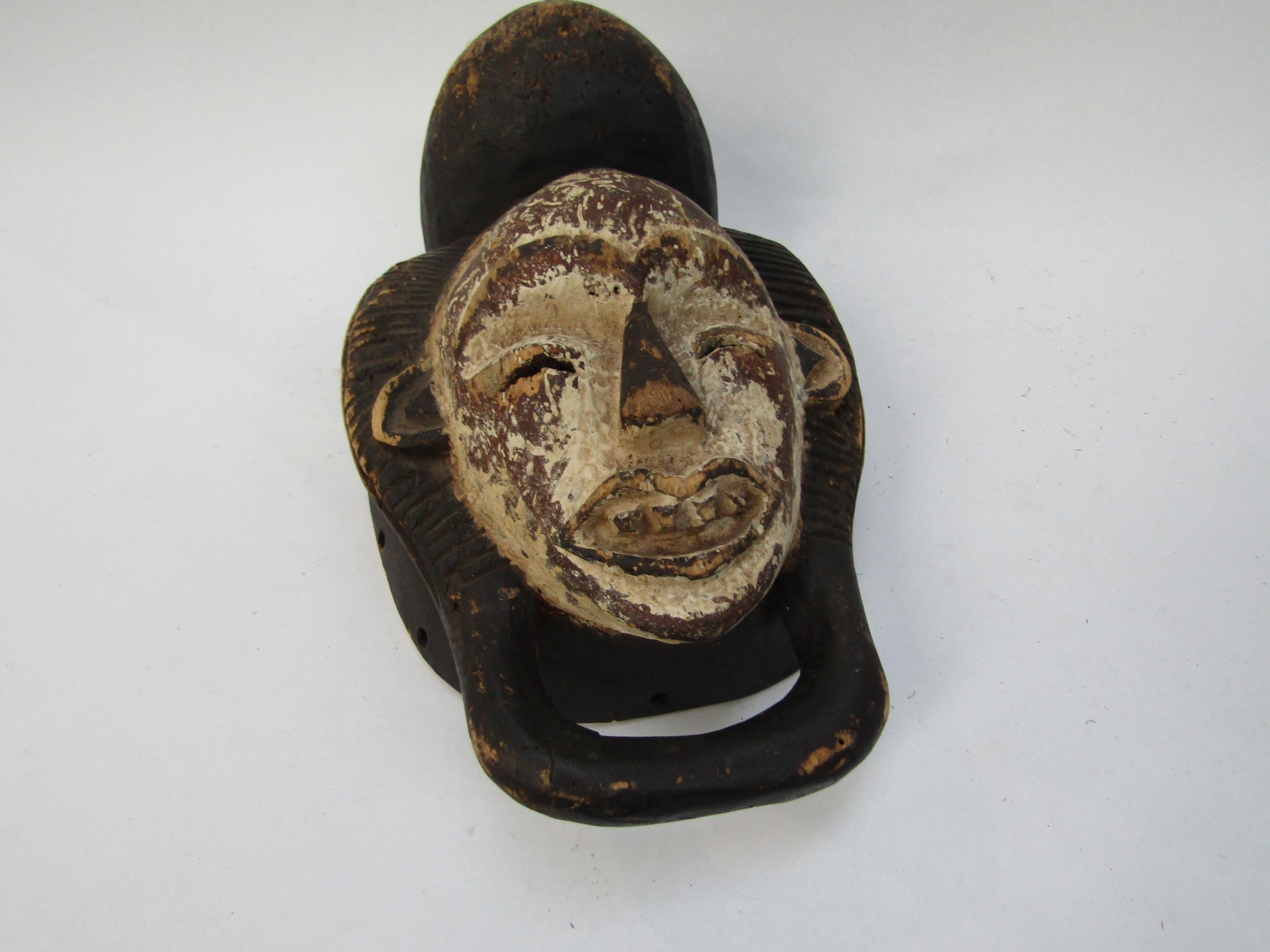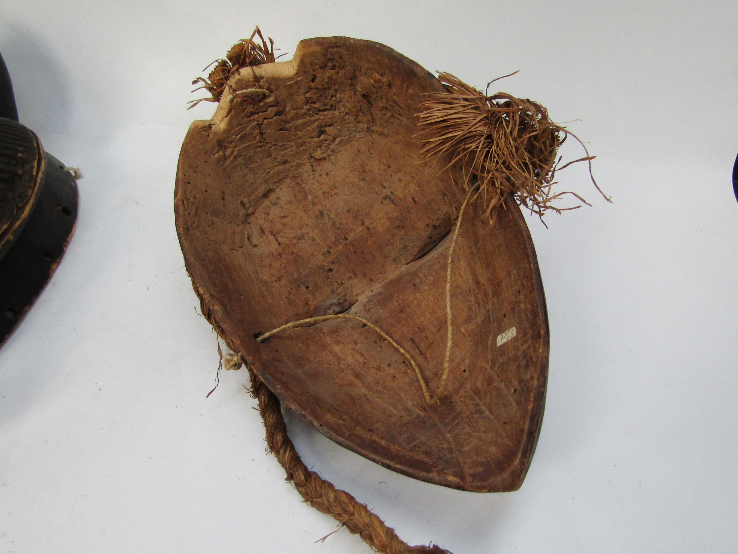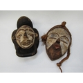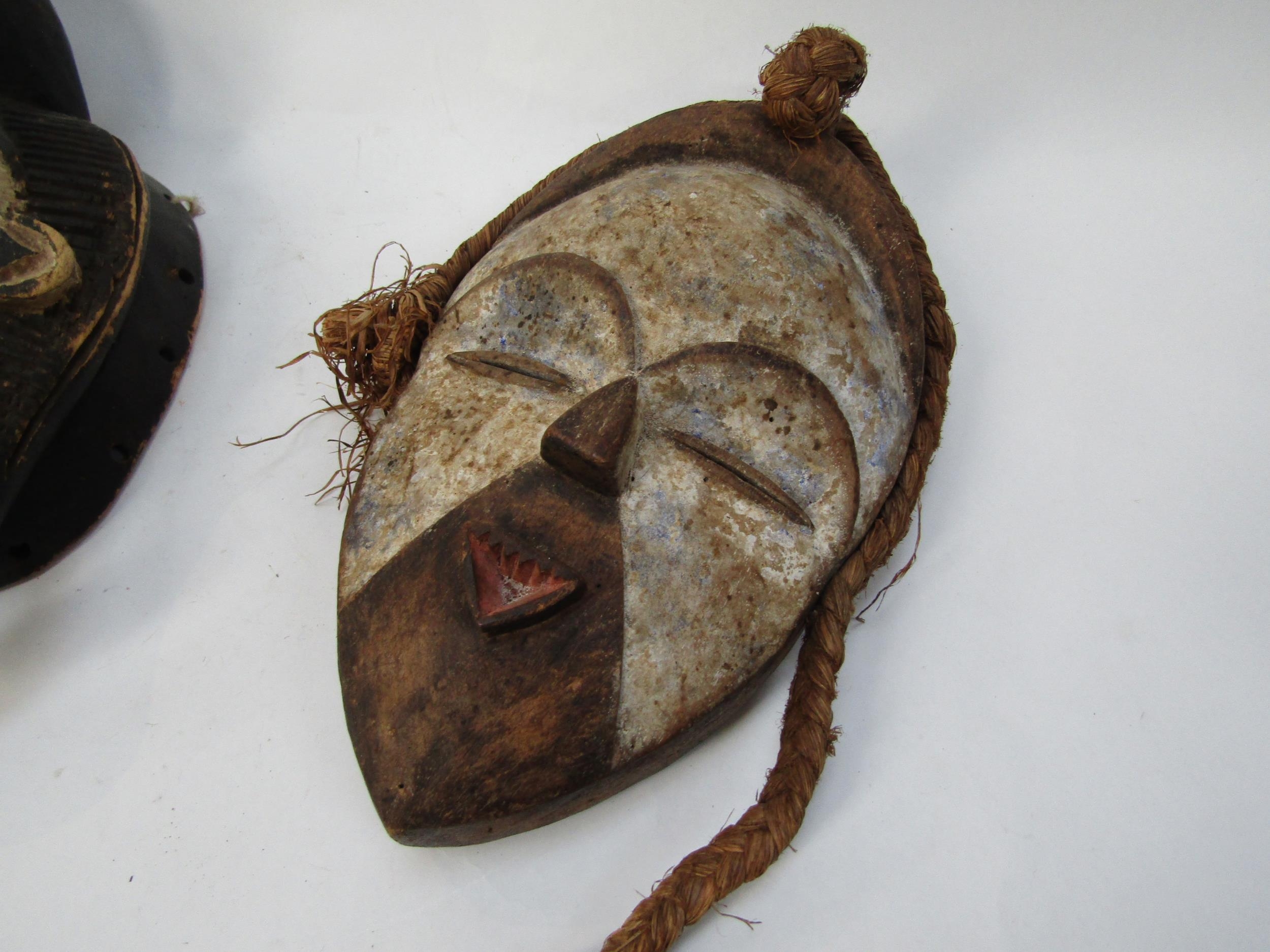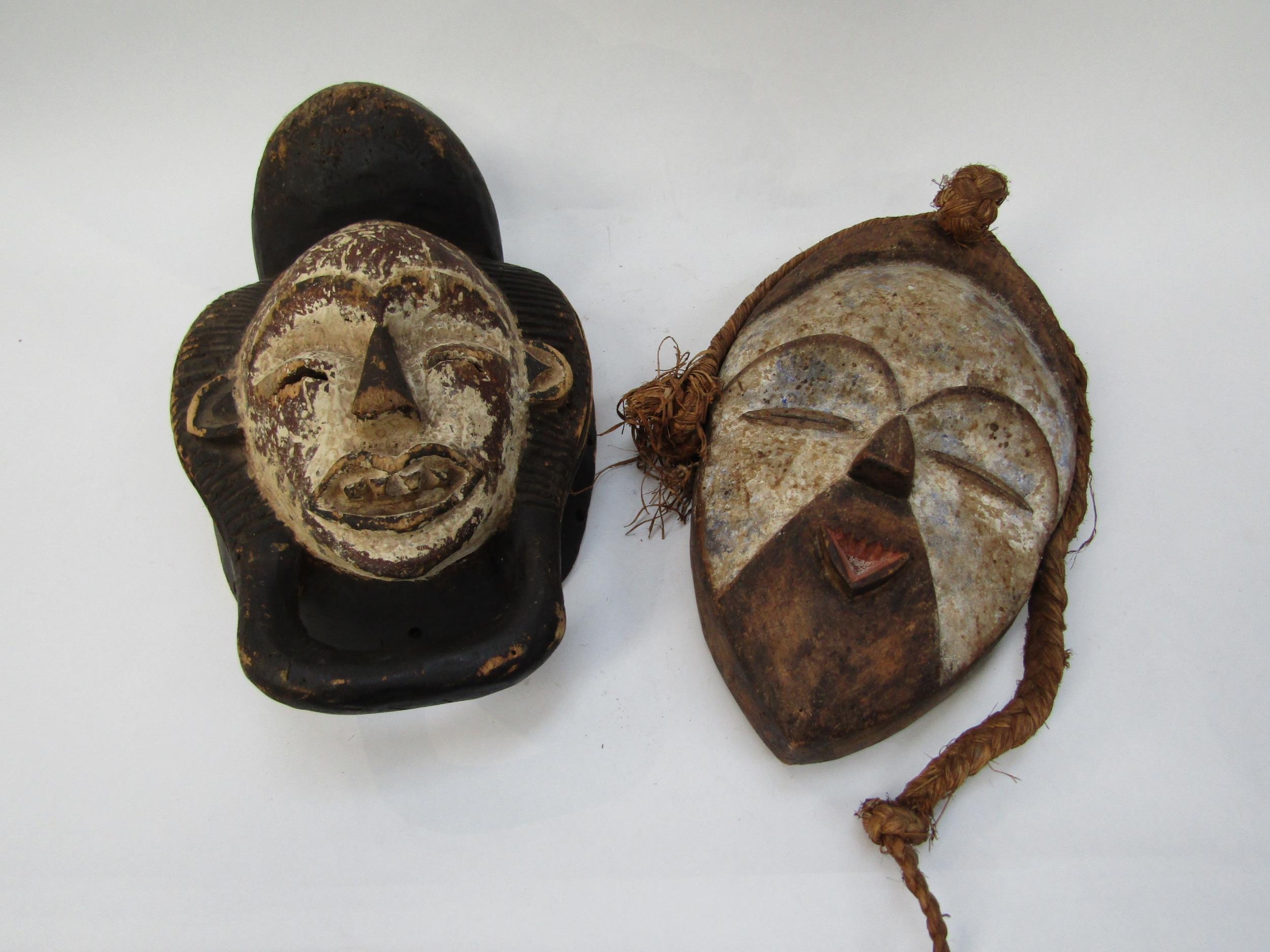 Two African masks with white painted faces, 33cm & 34cm tall