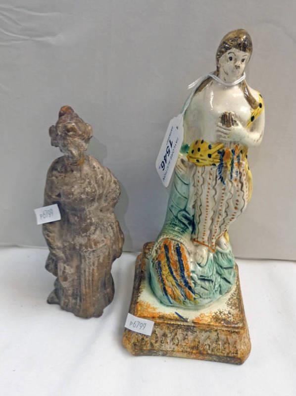 EARLY 19TH CENTURY CREAMWARE FIGURE HEIGHT - 22CM AND 1 OTHER