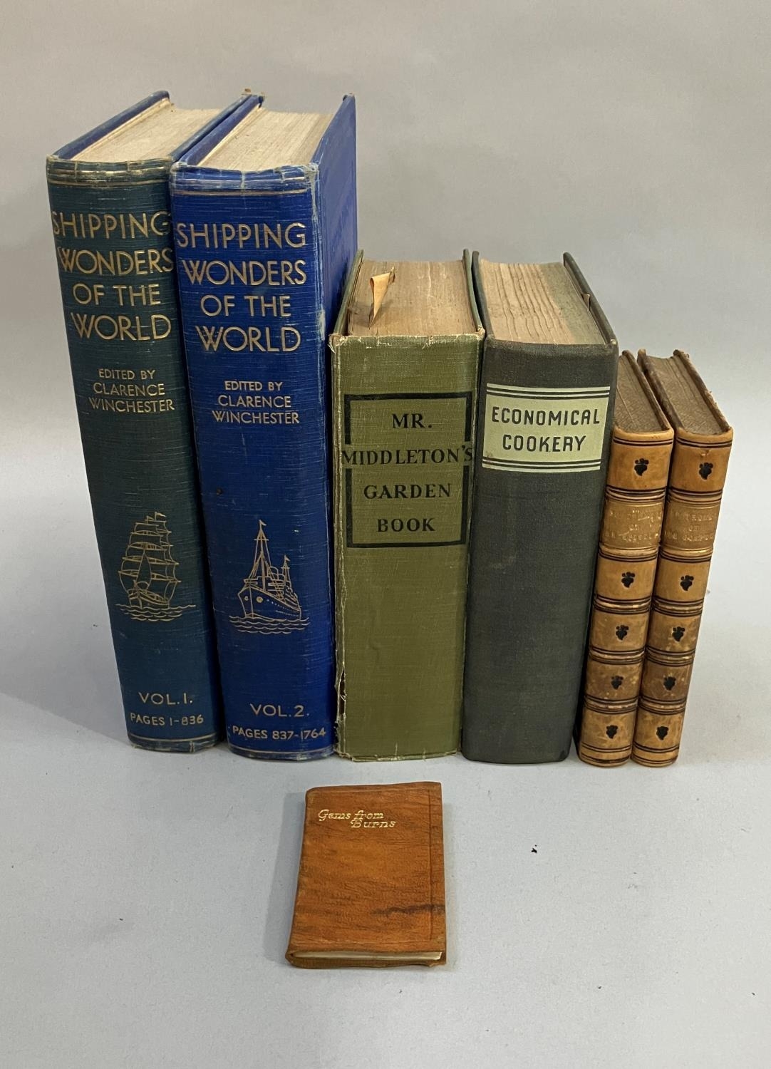 Shipping Wonders of the World in two volumes, Economical Cookery, Mr Middleton's Garden Book and two leather bound volumes, B P Trower On the Gospels and on the Epistles 1856