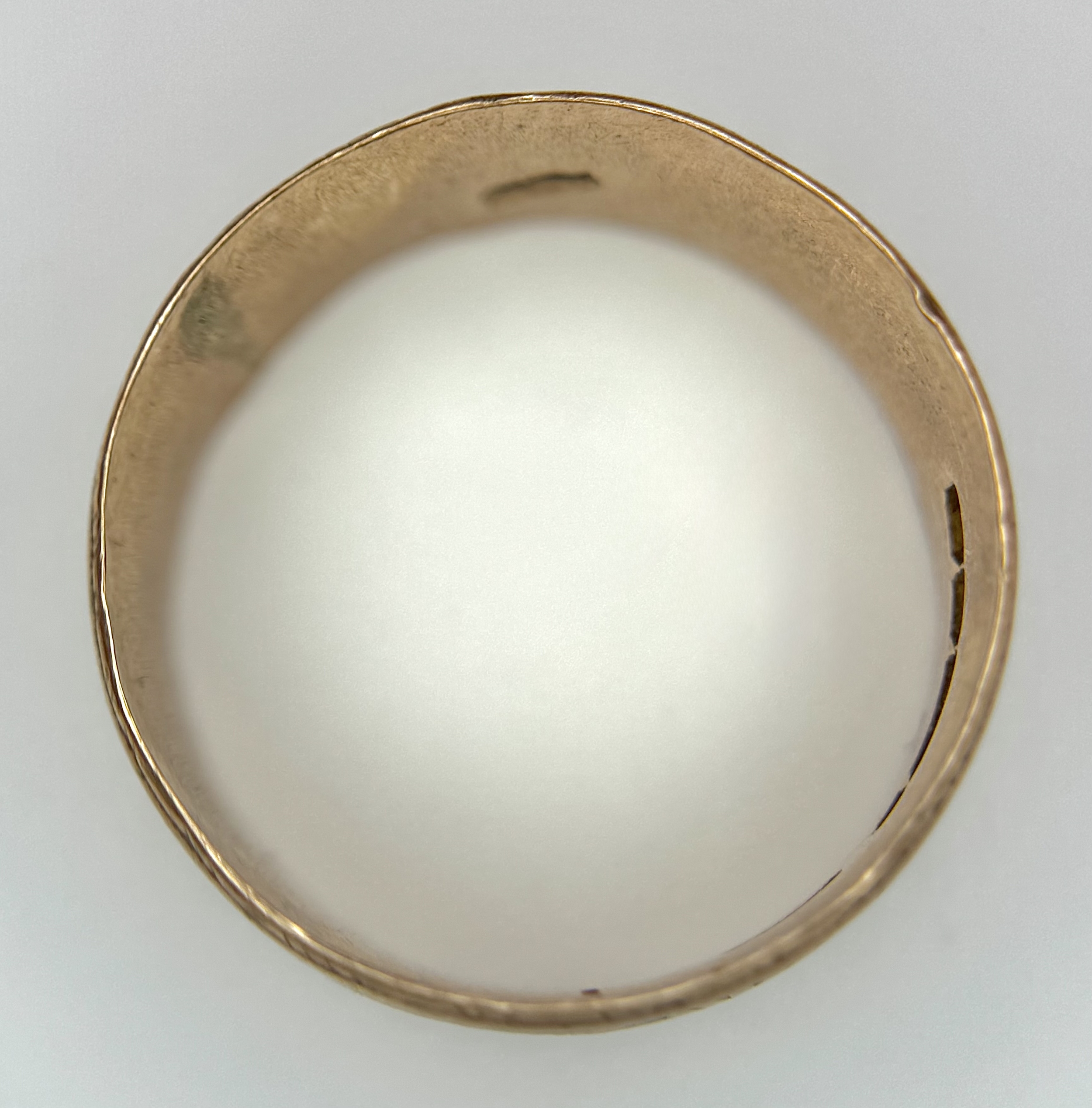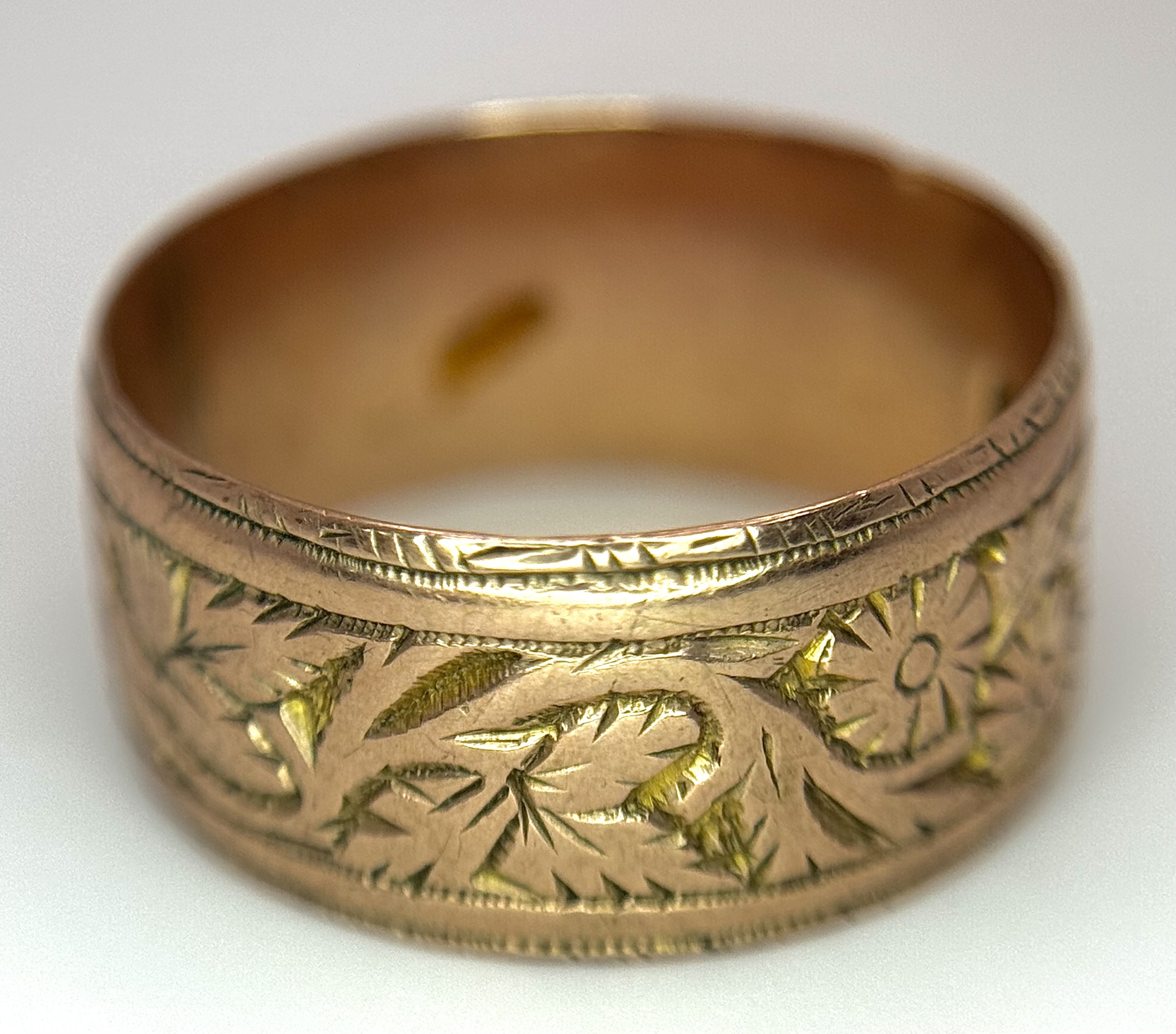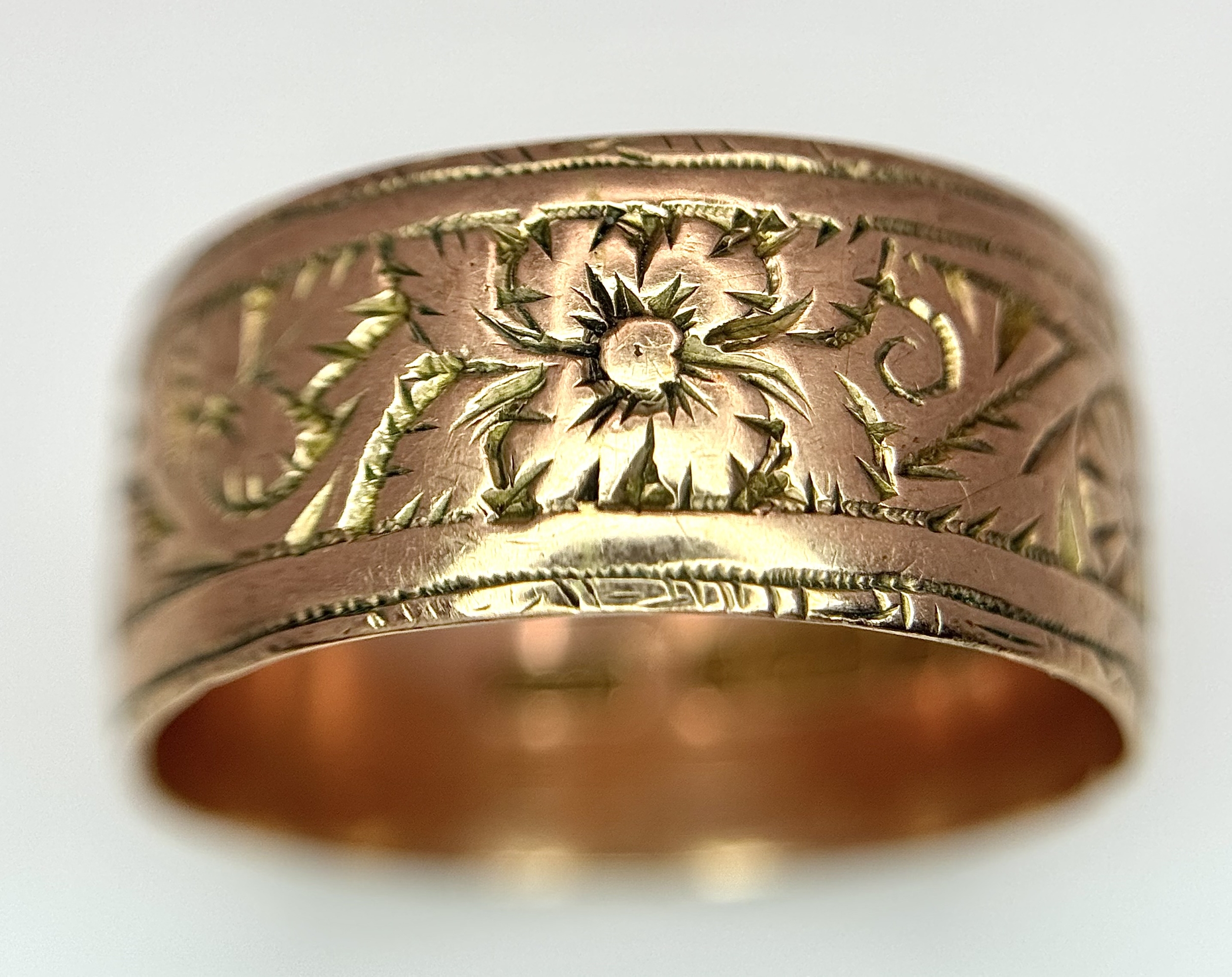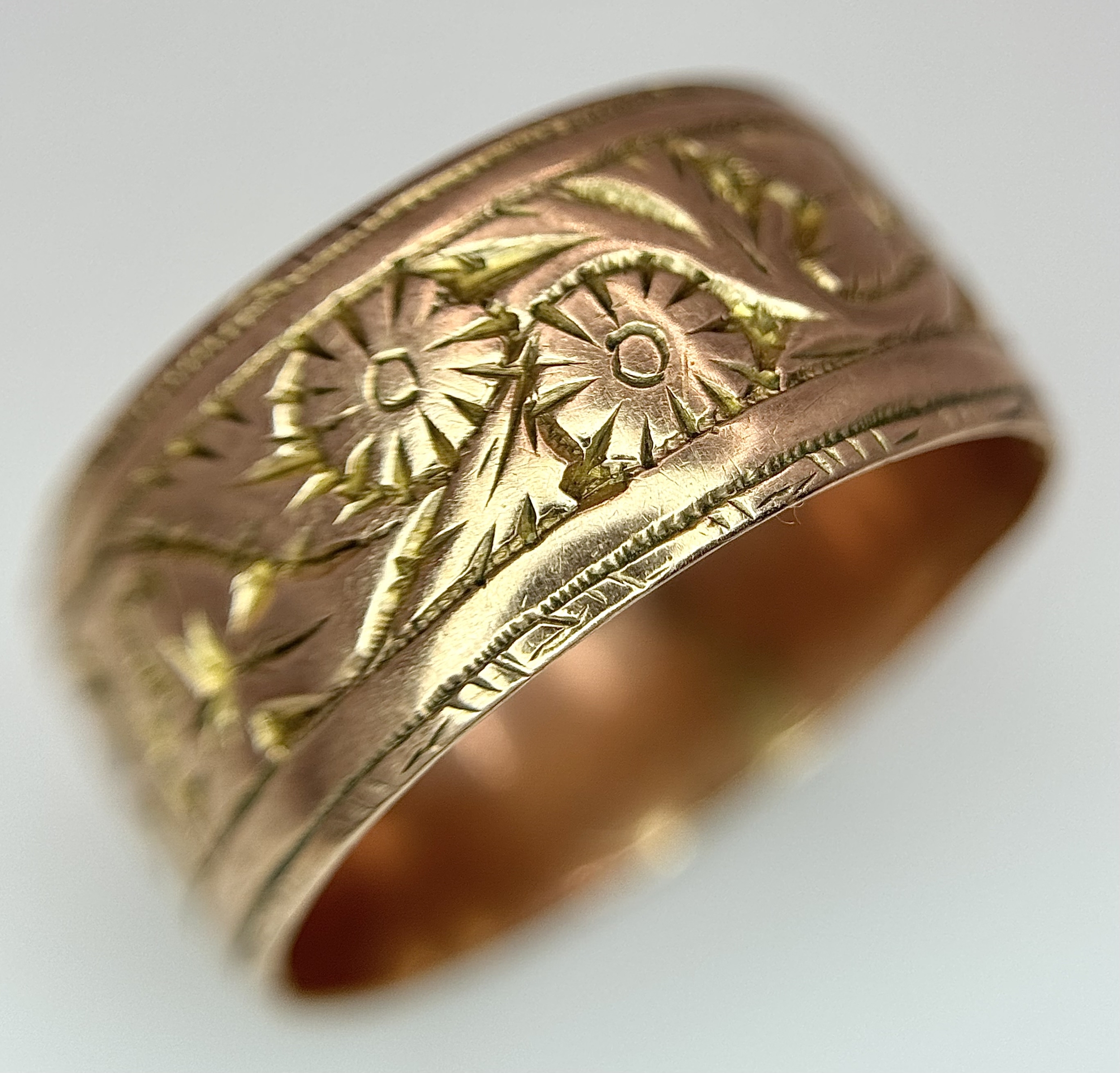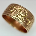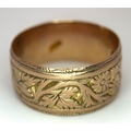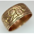 A 9K ROSE GOLD DECORATED BAND RING , 8mm WIDTH 4.4gmd size R