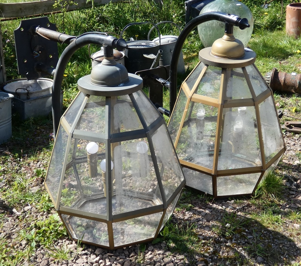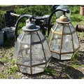 Pair of brass hanging lamps - Approx H: 76cm