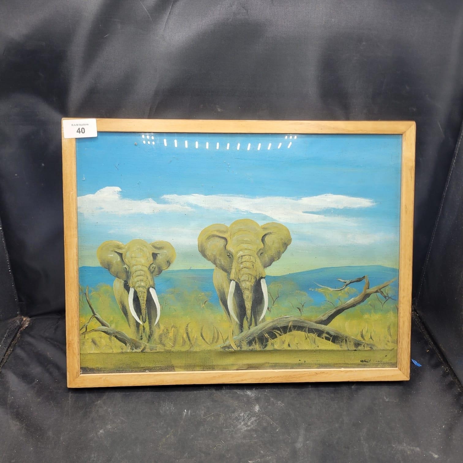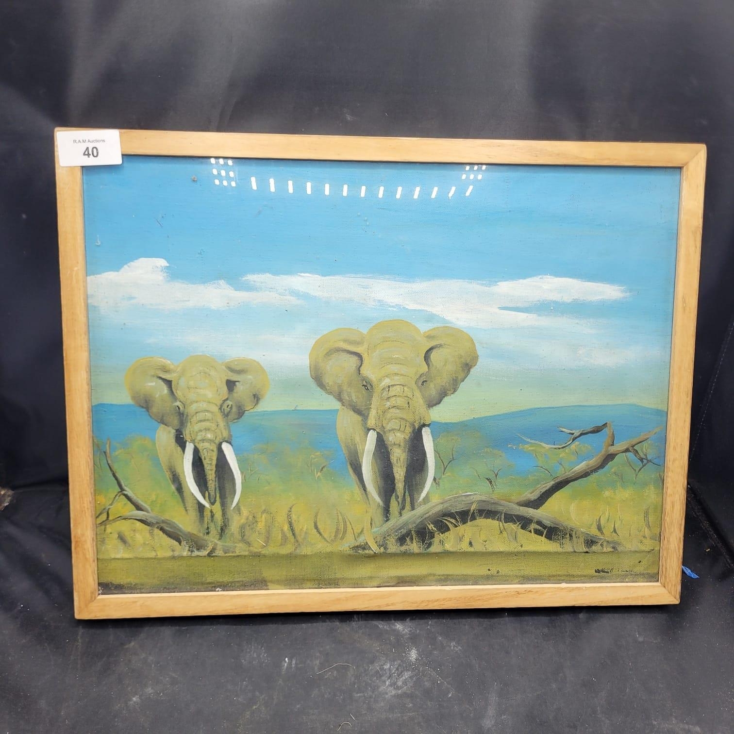 John Ladd, Framed Oil on Canvas Painting of African Elephants