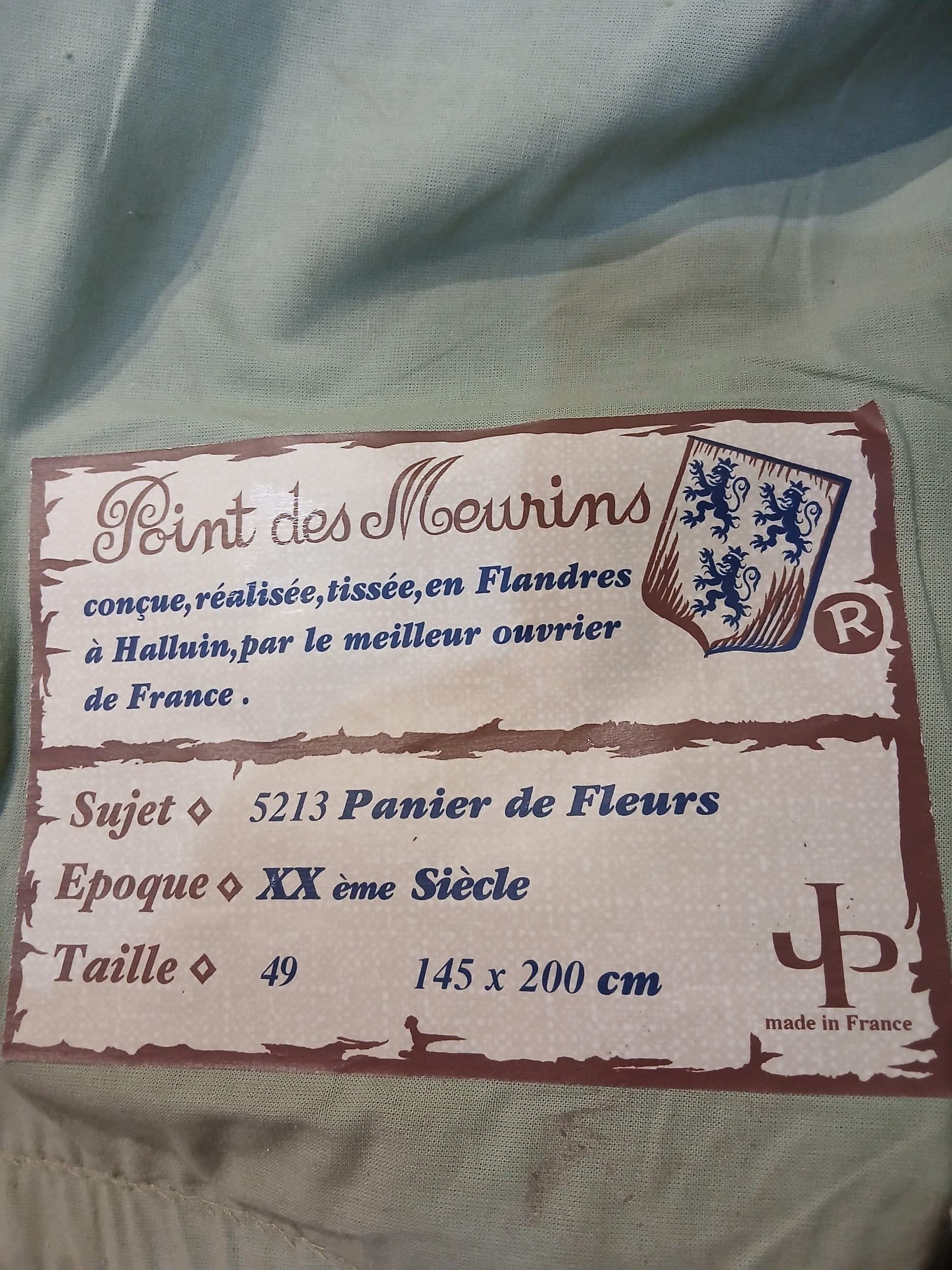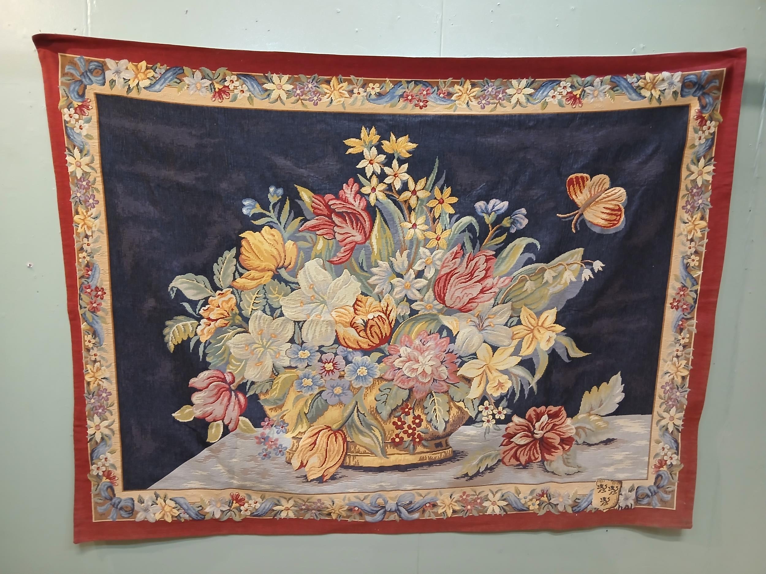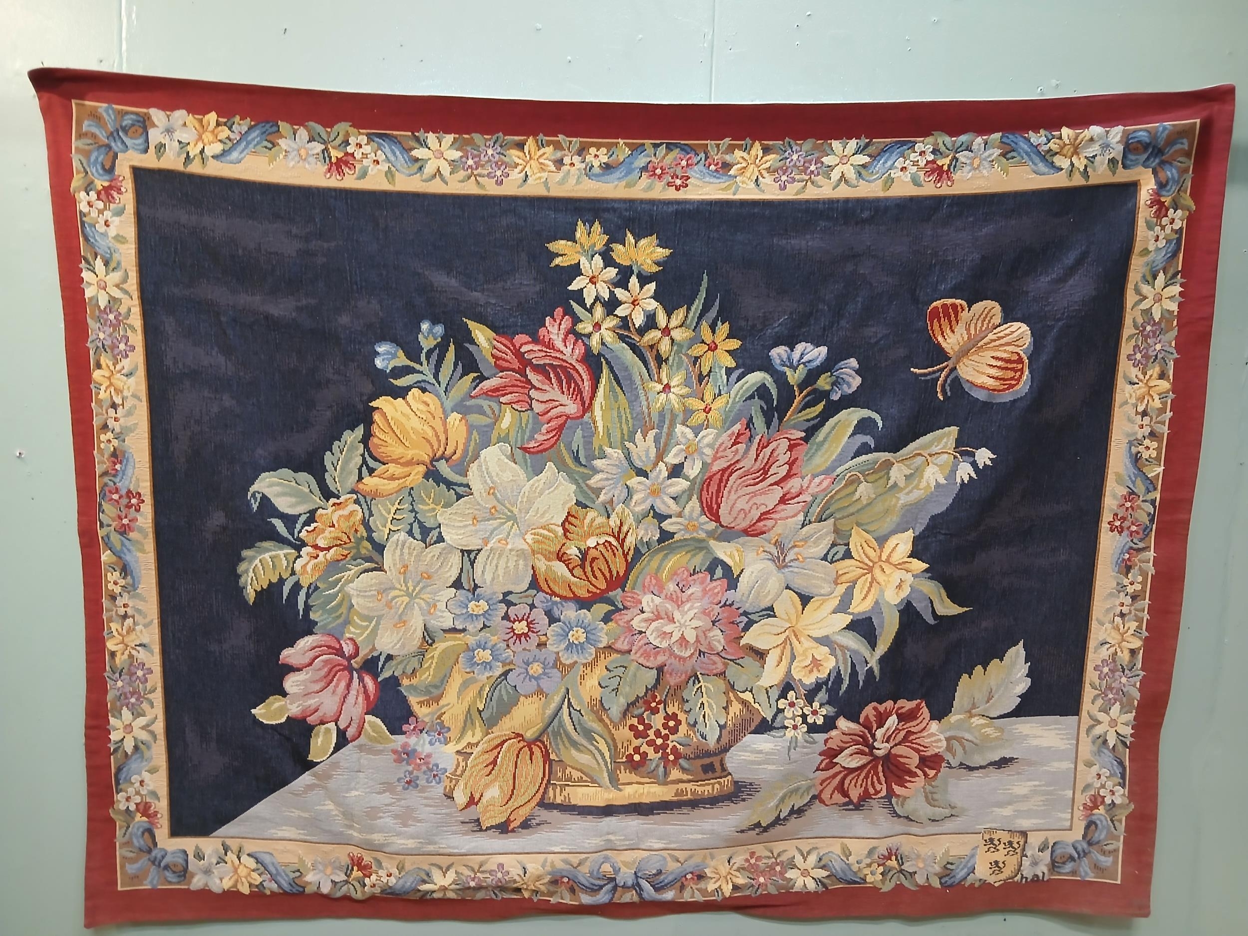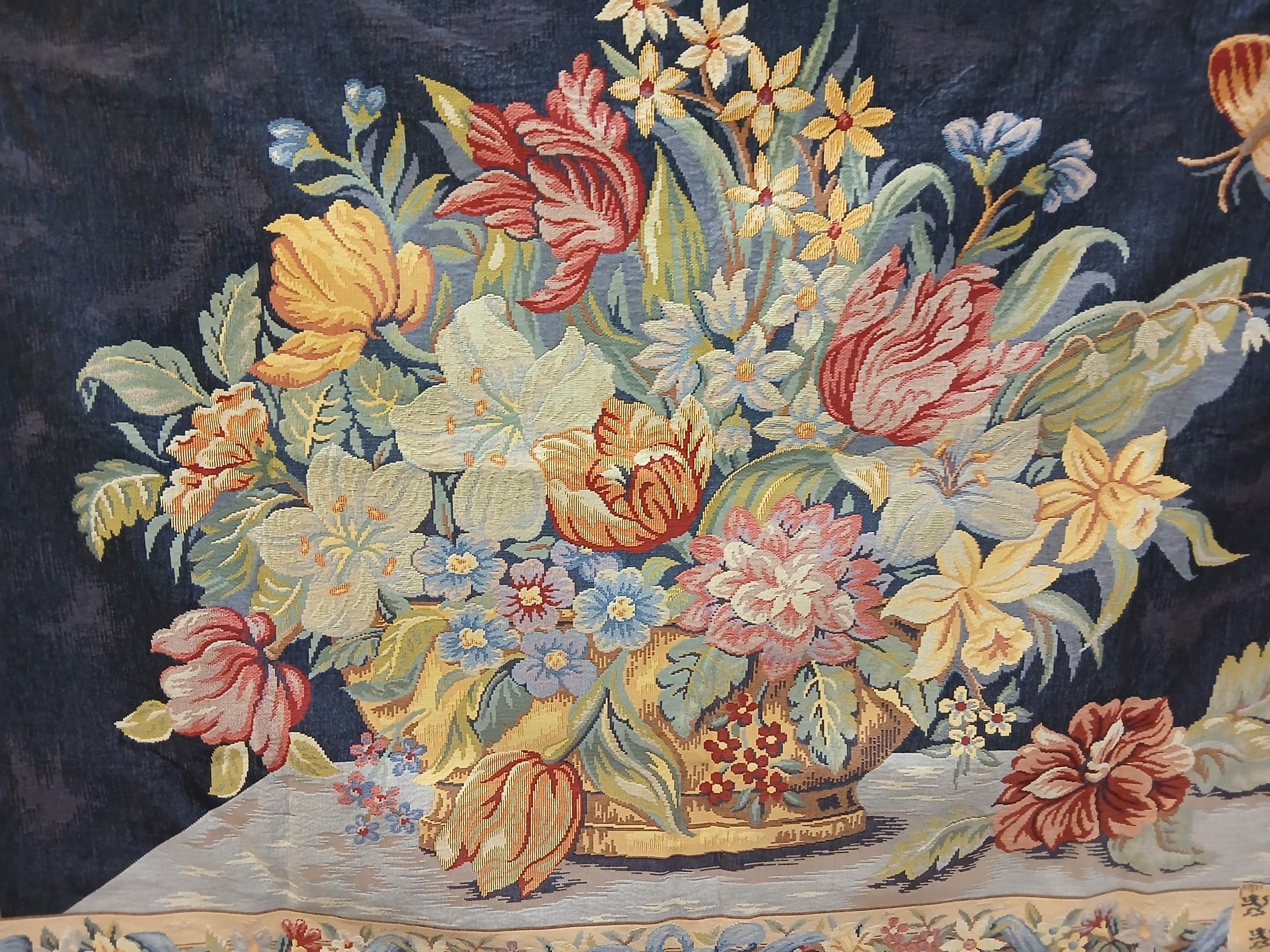 French Point Des Meurins tapestry { Basket of Flowers design}. {H 145cm x W 200cm }. NOT AVAILABLE TO VIEW IN PERSON.