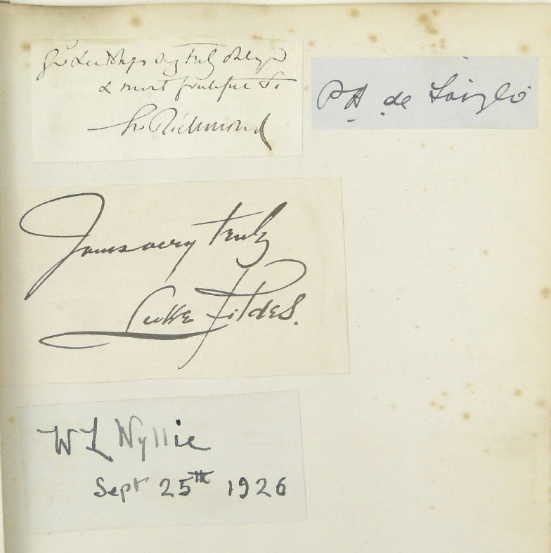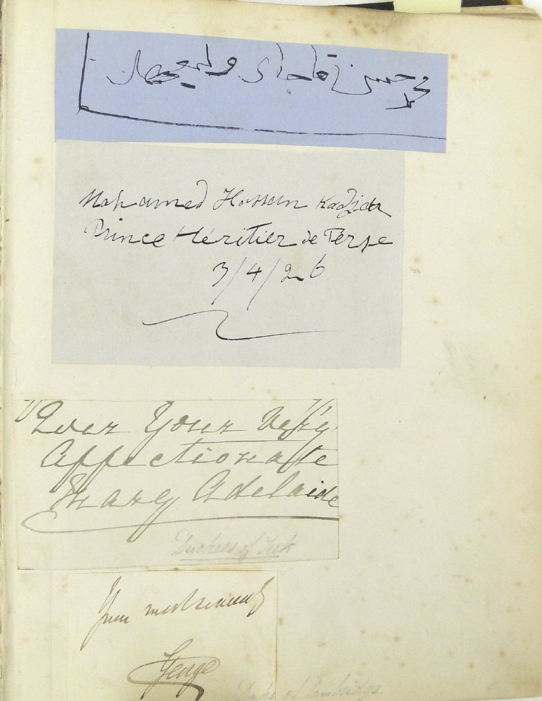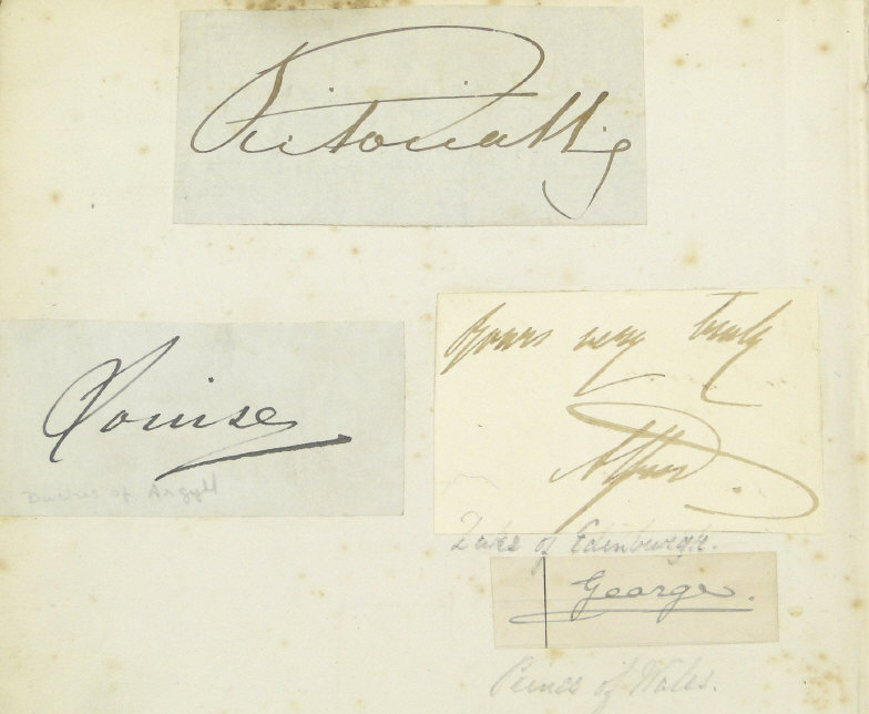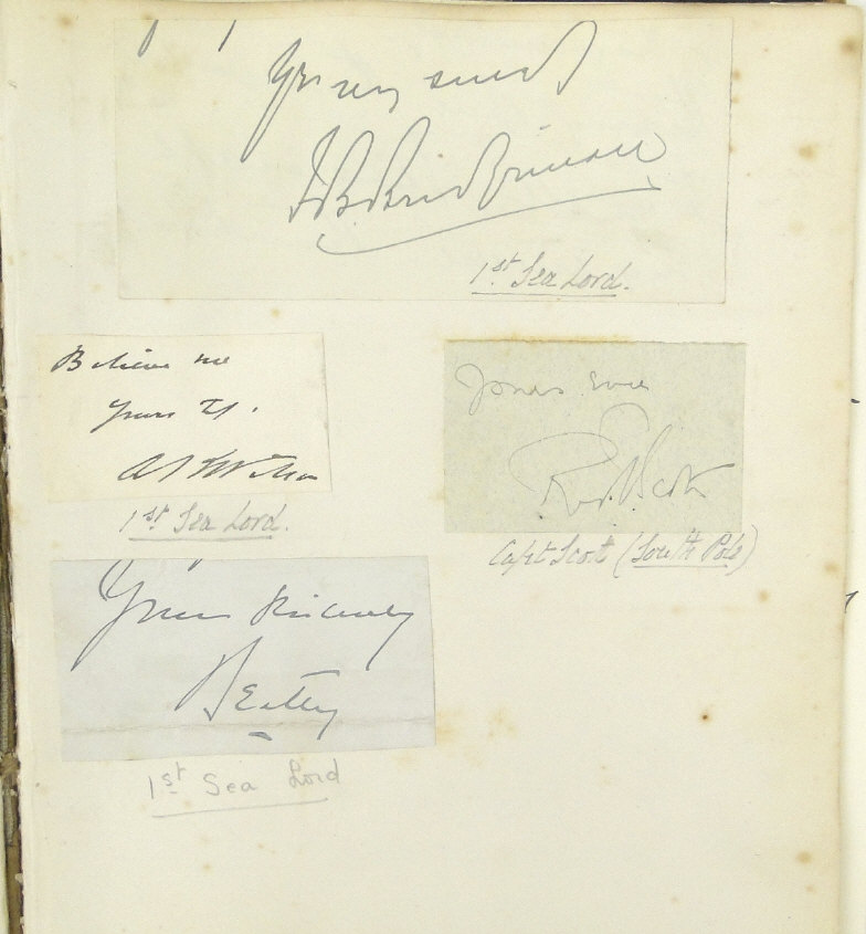 Edwardian autograph album collected by Mr T. Arthur Russell, the well known impresario, including British and foreign Royalty autographs, High Court of Justice, Arctic Exploration - Captain Scott, Baden Powell, Duke of Wellington, English cricketers, judges, etc, together with a scrap album including photographic Royalty, etc