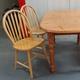 Oval Pine Extending Dining Table, D shaped ends with integral leaf on detachable turned supports with Set 4 Beech Splat Back Dining Chairs (5)