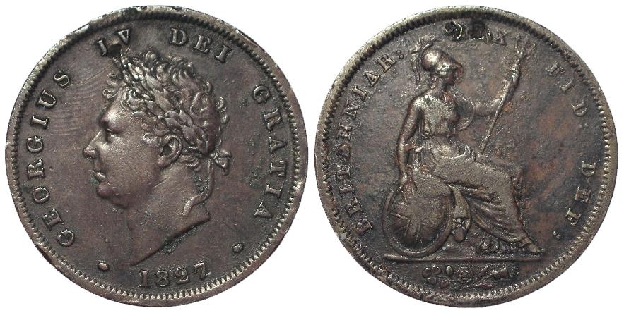 Penny 1827 (rare date), detail nVF but some surface marks and knocks.