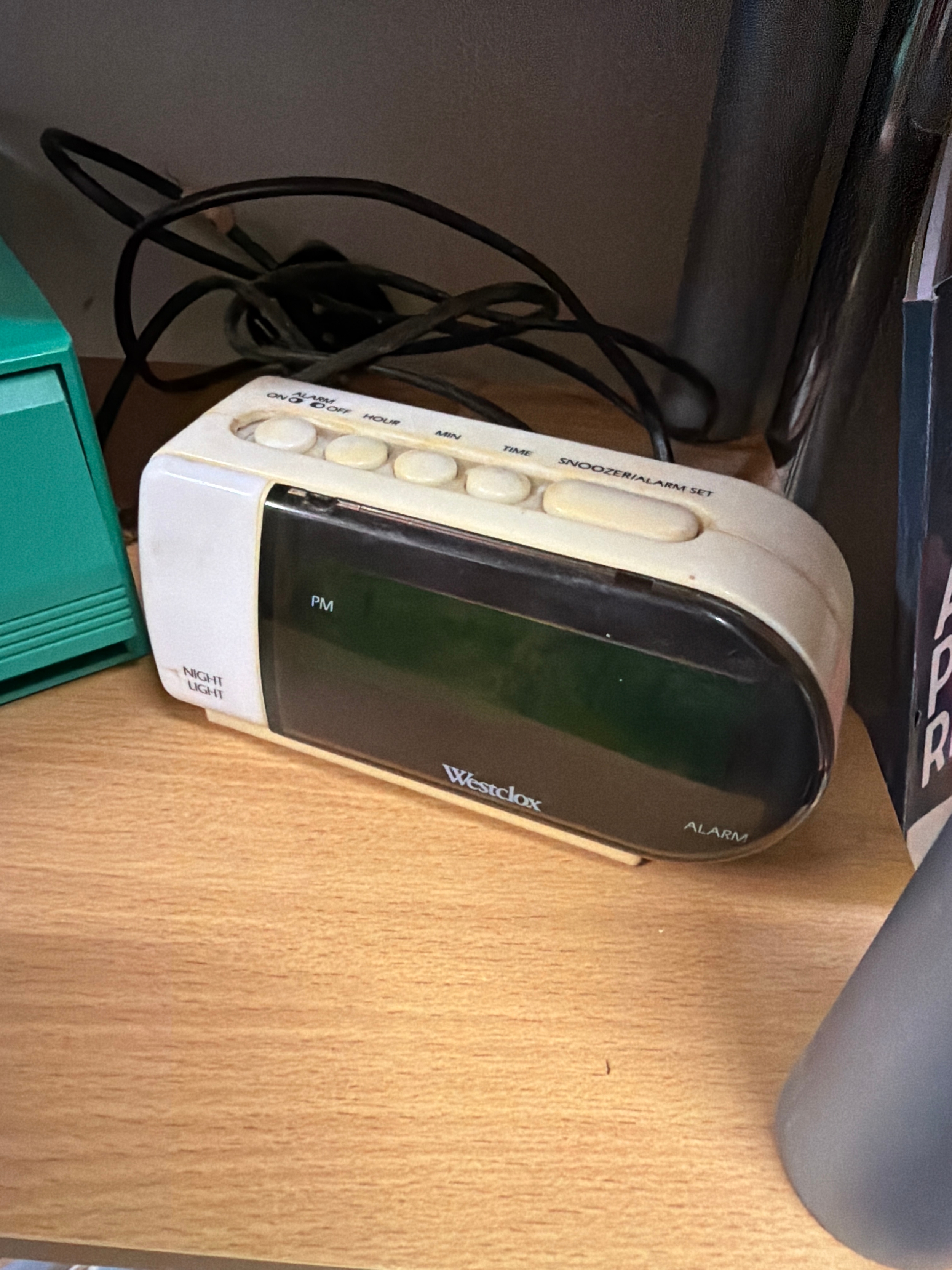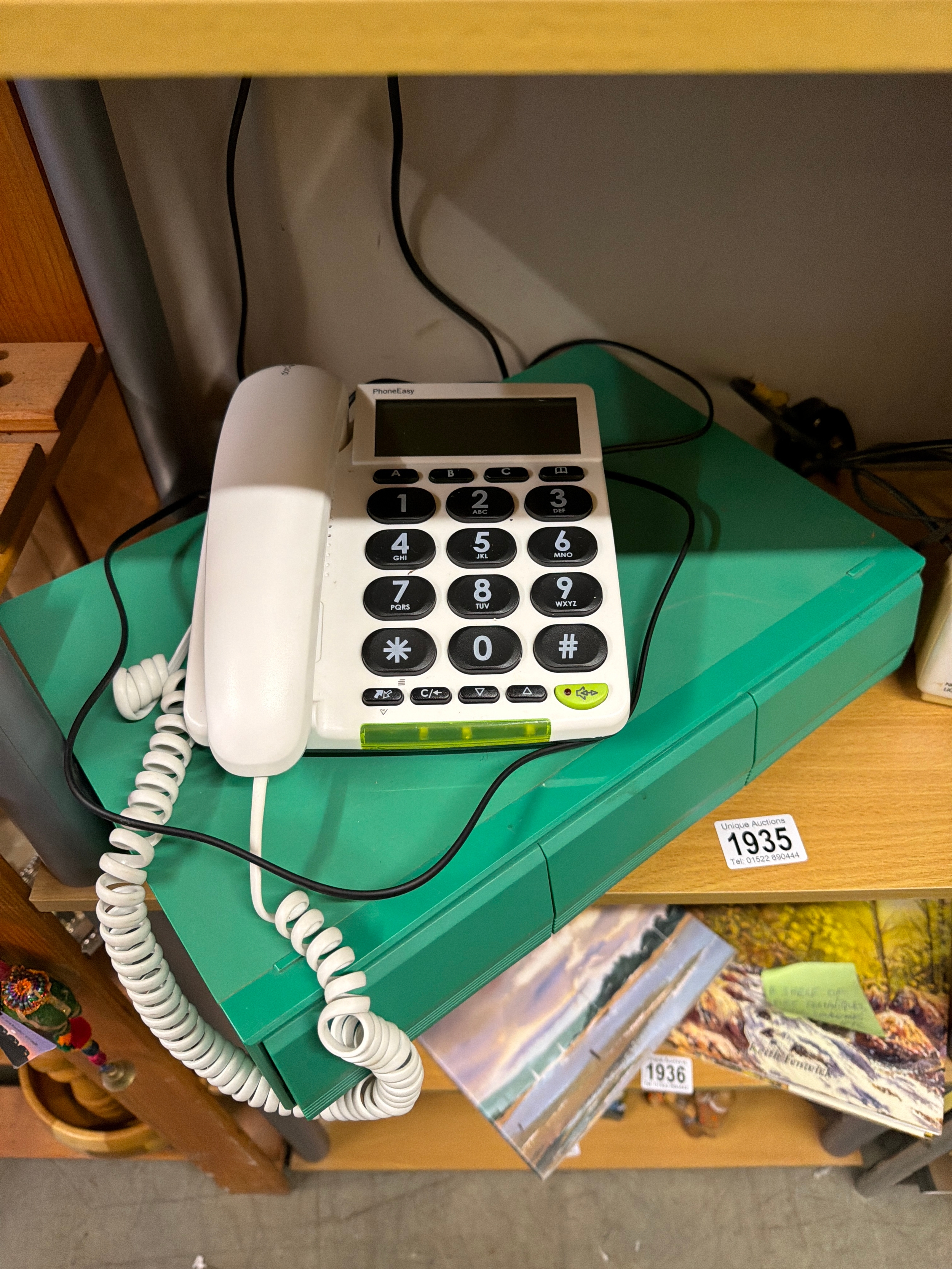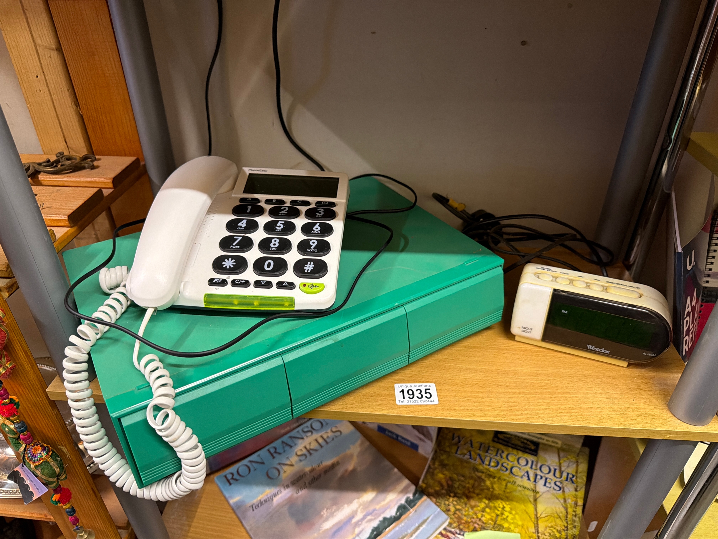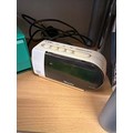A big number alarm clock a 1970’s cassette case & an as new doro phone
