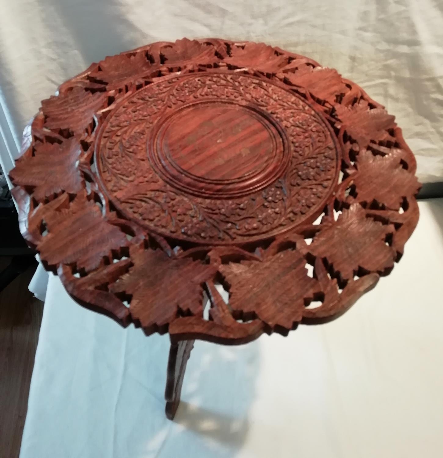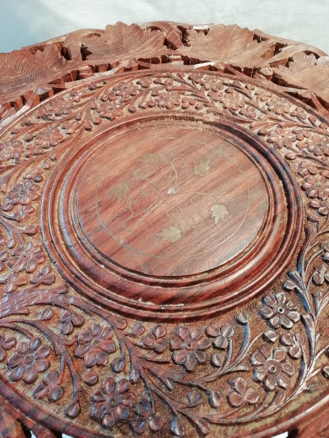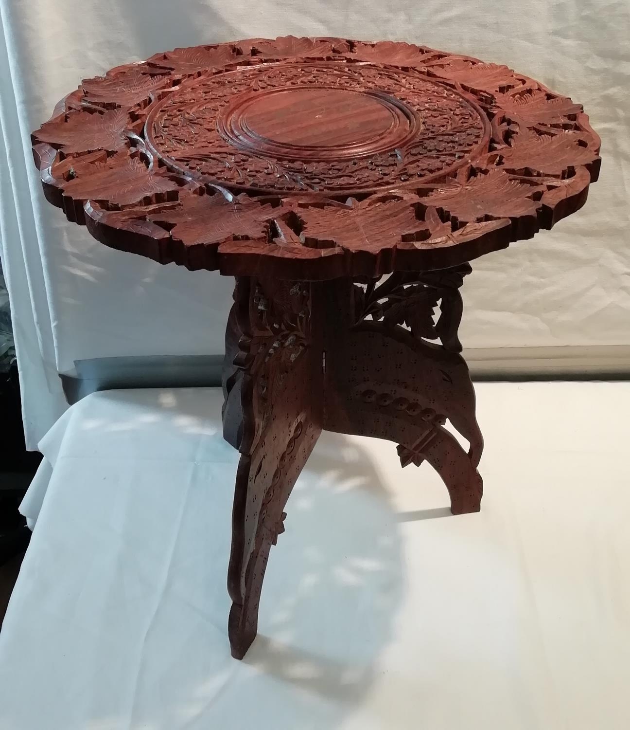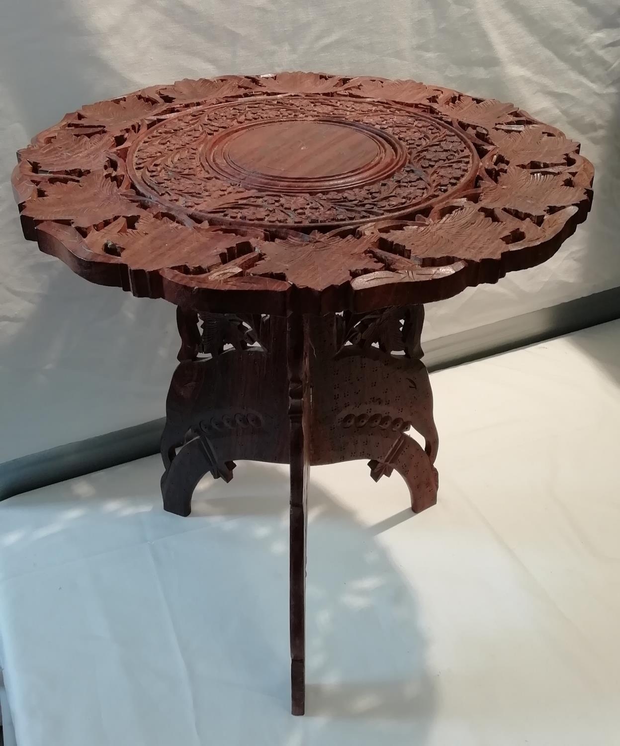 Carved Wooden Table. 45cm. This Lot is Collection Only.