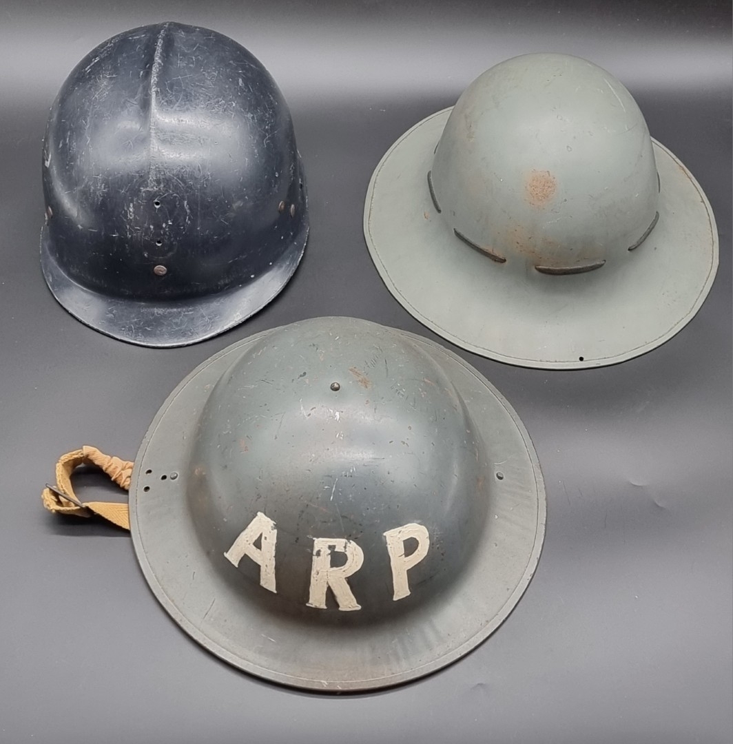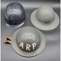 A WWII ARP steel helmet, by J S S, dated 1941; together with two other helmets. (3)