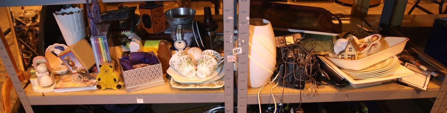 Two shelves of mixed ceramics, glass etc. Not available for in-house P&P, contact Paul O'Hea at Mailboxes on 01925 659133