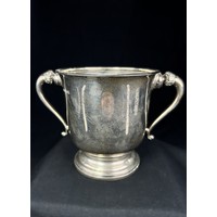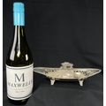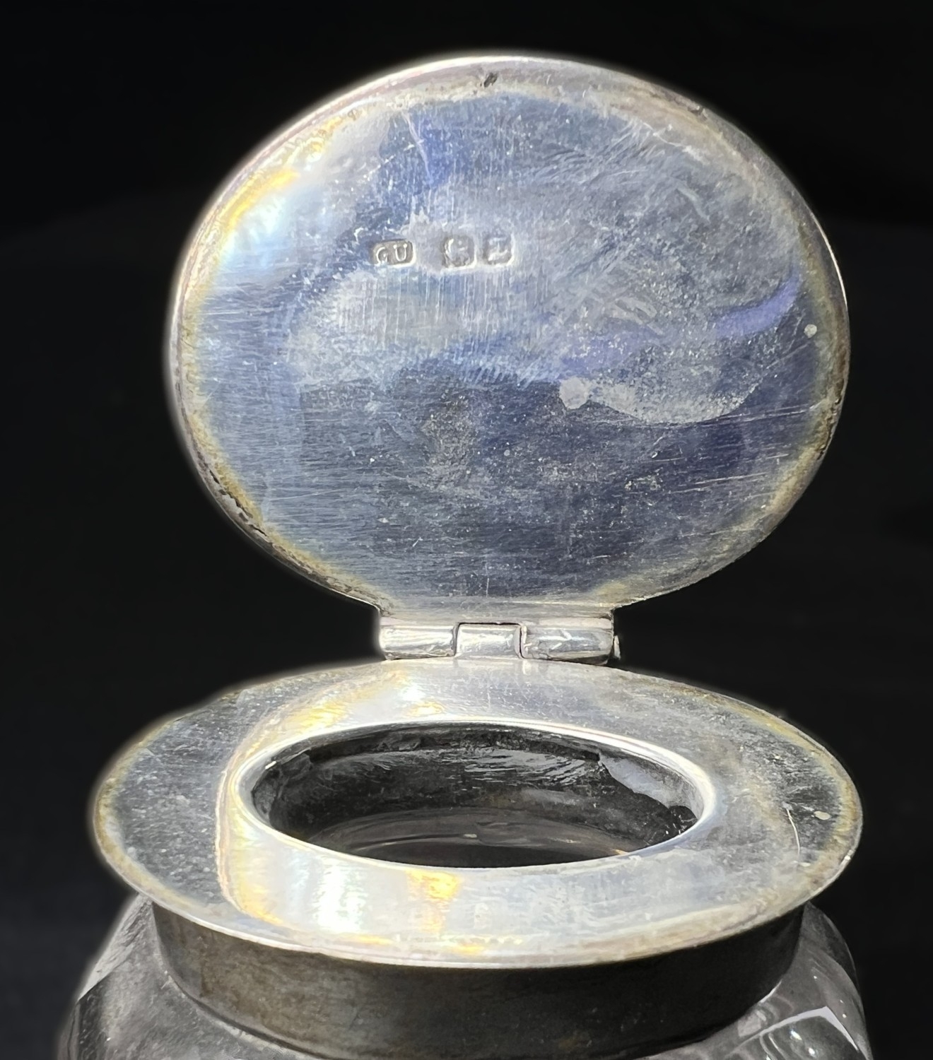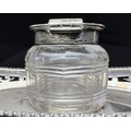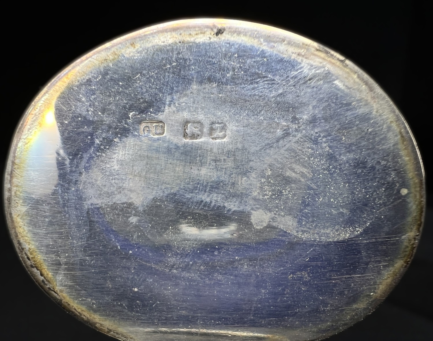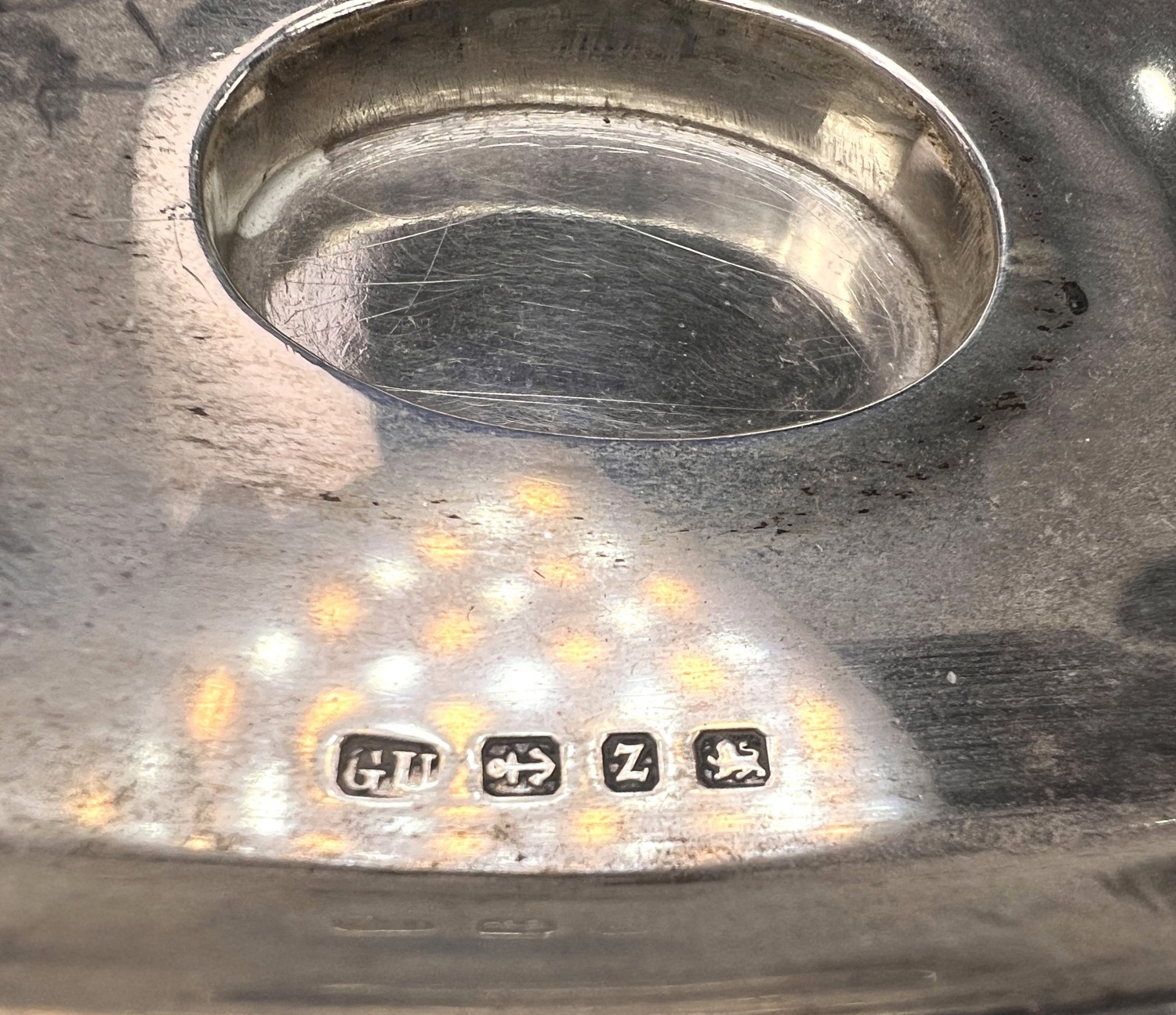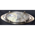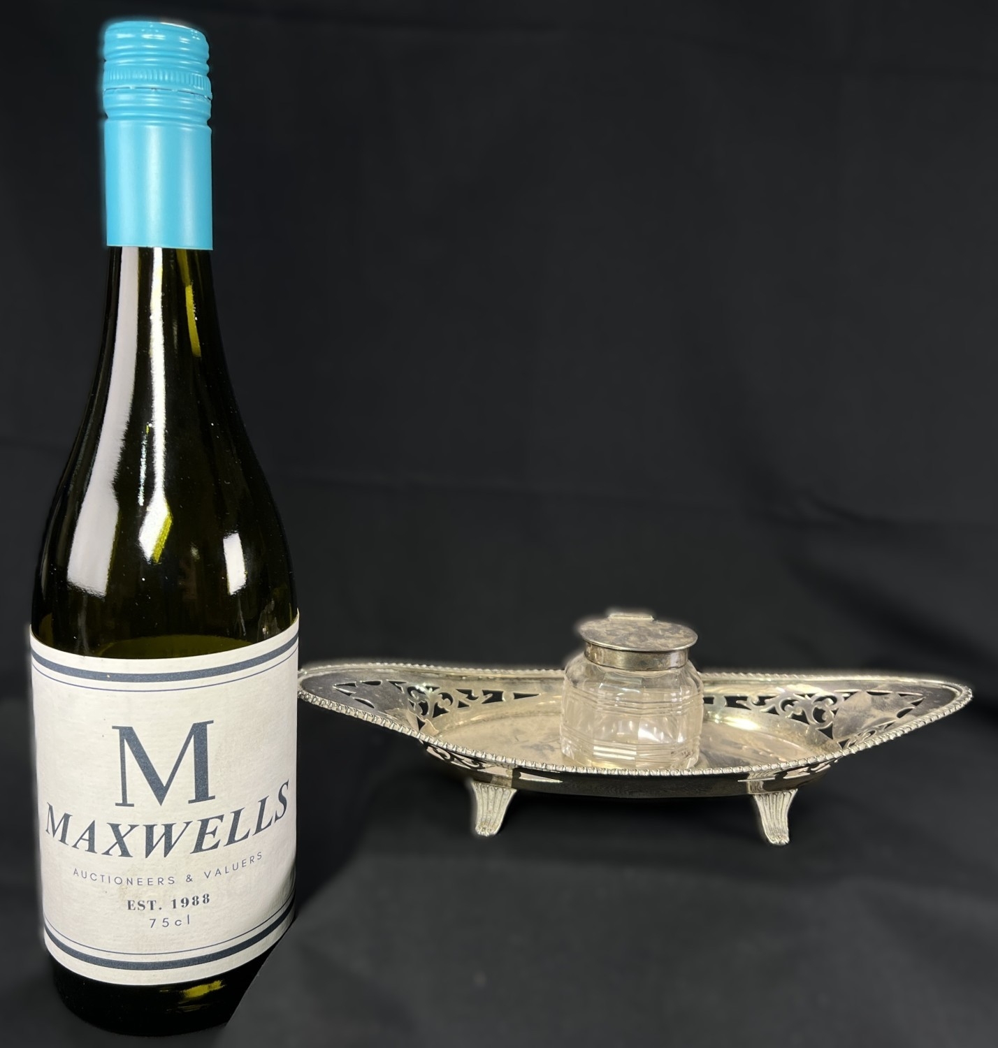 An oval hallmarked silver ink stand with pierced and gadrooned decoration, on 4 scroll feet, Birmngham 1899, 4.5ozt, length 24cm