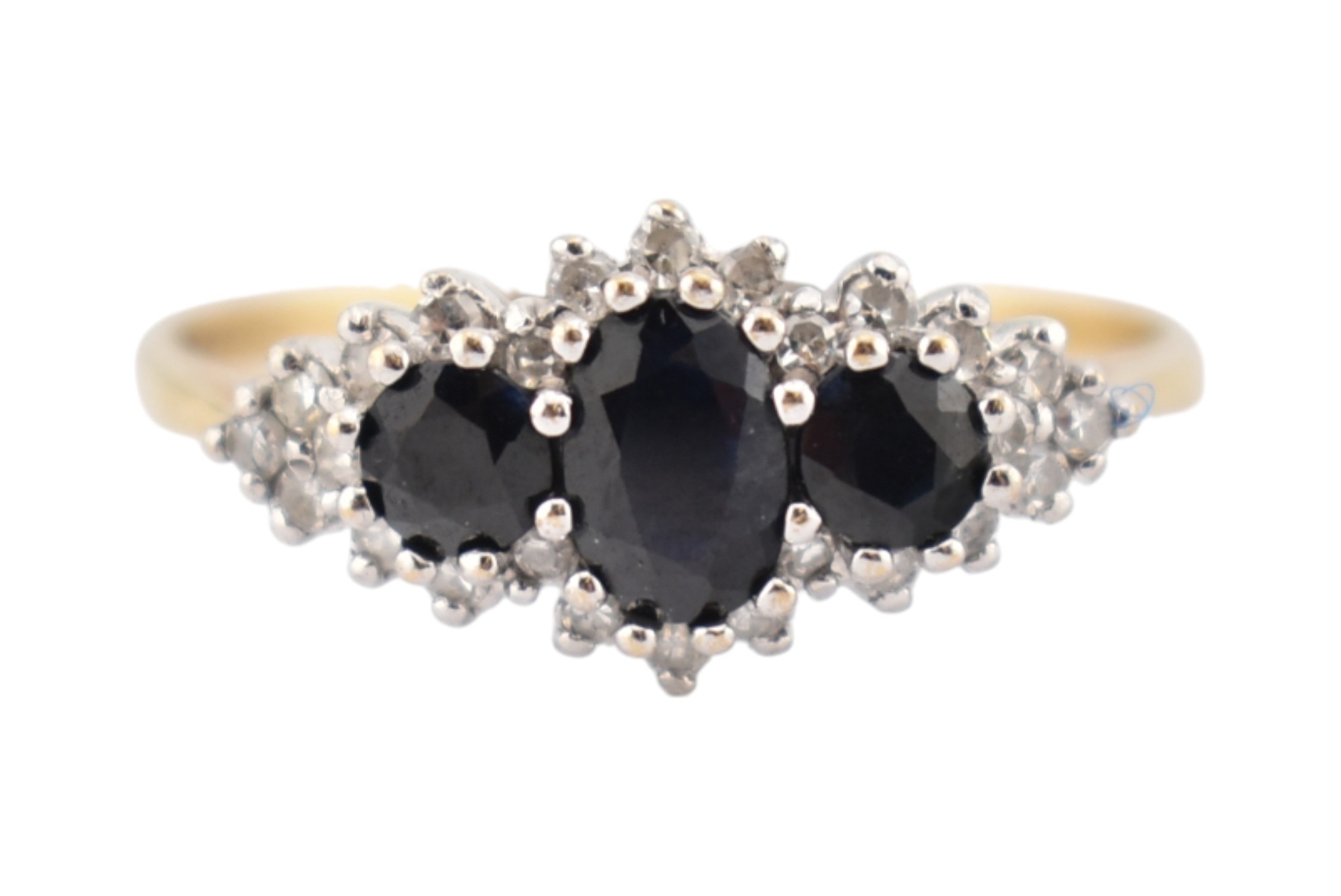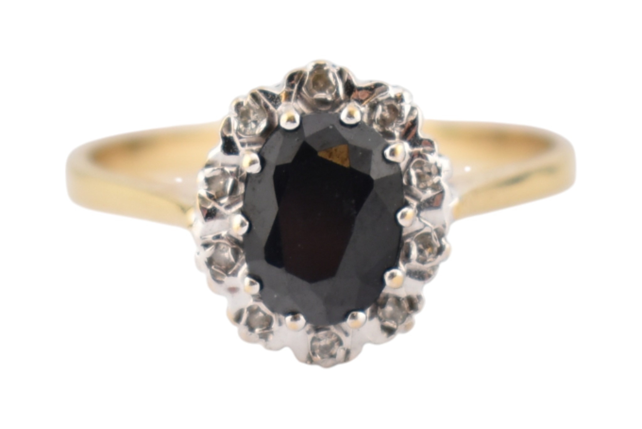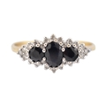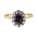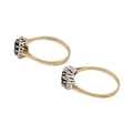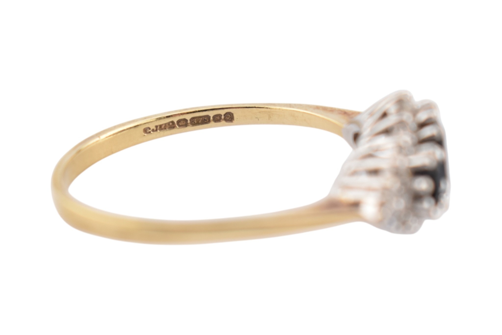 Two 9ct gold sapphire and diamond cluster rings. Weight 5.2g. Both size T.