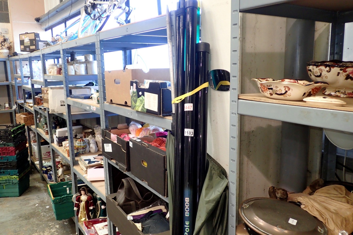 Mixed fishing items including poles and umbrella. Not available for in-house P&P