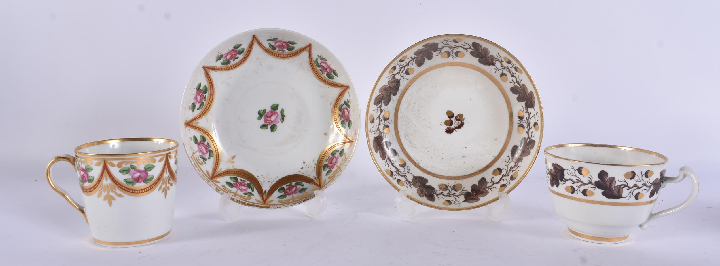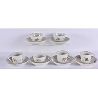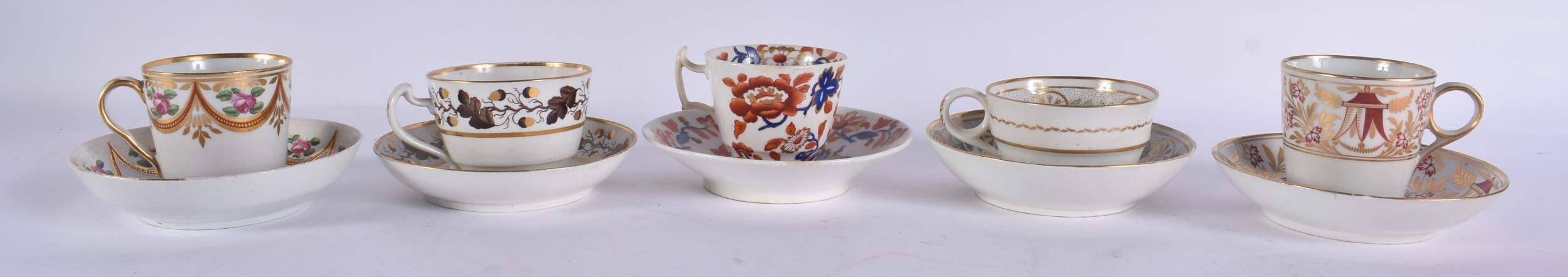FIVE EARLY 19TH CENTURY CHAMBERLAINS WORCESTER CUPS AND SAUCERS. (10)
