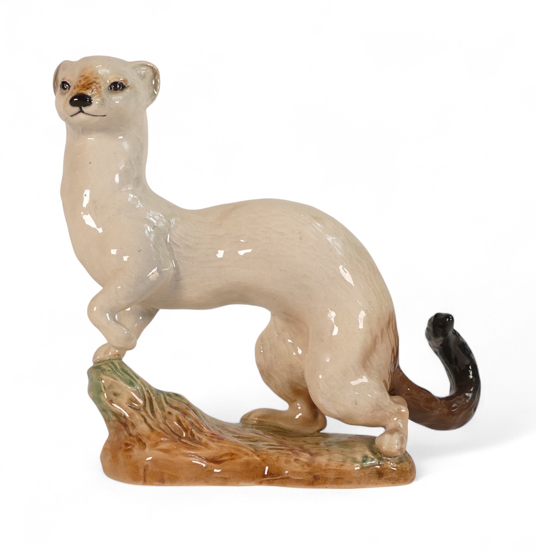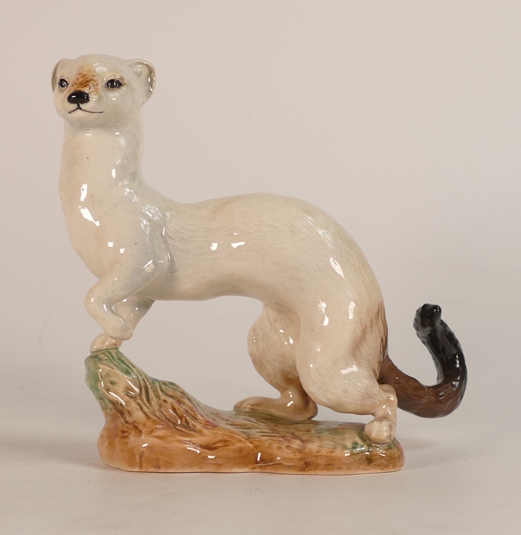 Beswick figure of a Stoat (In Winter Coat) model number 1021 designed by Arthur Gredington in white gloss finish, in production 1945-63, tail has been repaired.