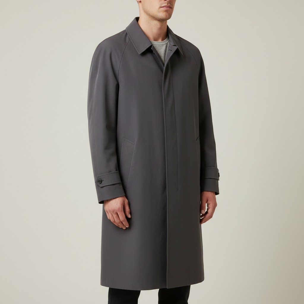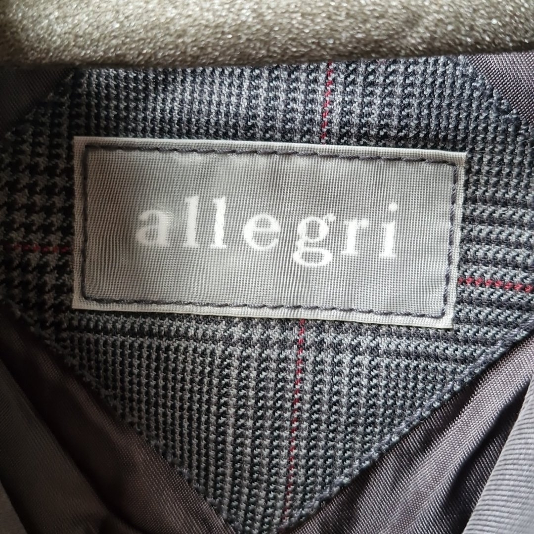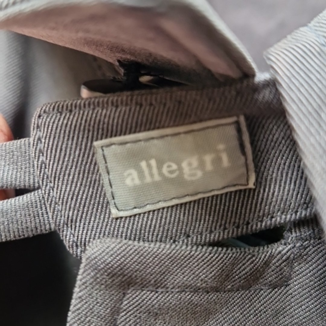 A grey Allegri single-breasted coat, with concealed front fastening, long sleeves and side pockets, the interior bearing maker’s label and ‘Made in Italy’ tag. Would have been very expensive. Size - 12 -14. Please note, the image of the modelled item was created by a new imaging/ staging software called showiton.ai. Upload a simple image of a piece of jewellery and the software stages it on a model for you. Paste the URL (showiton.ai) into your browser and try it for free. It’s a very simple, user-friendly platform.